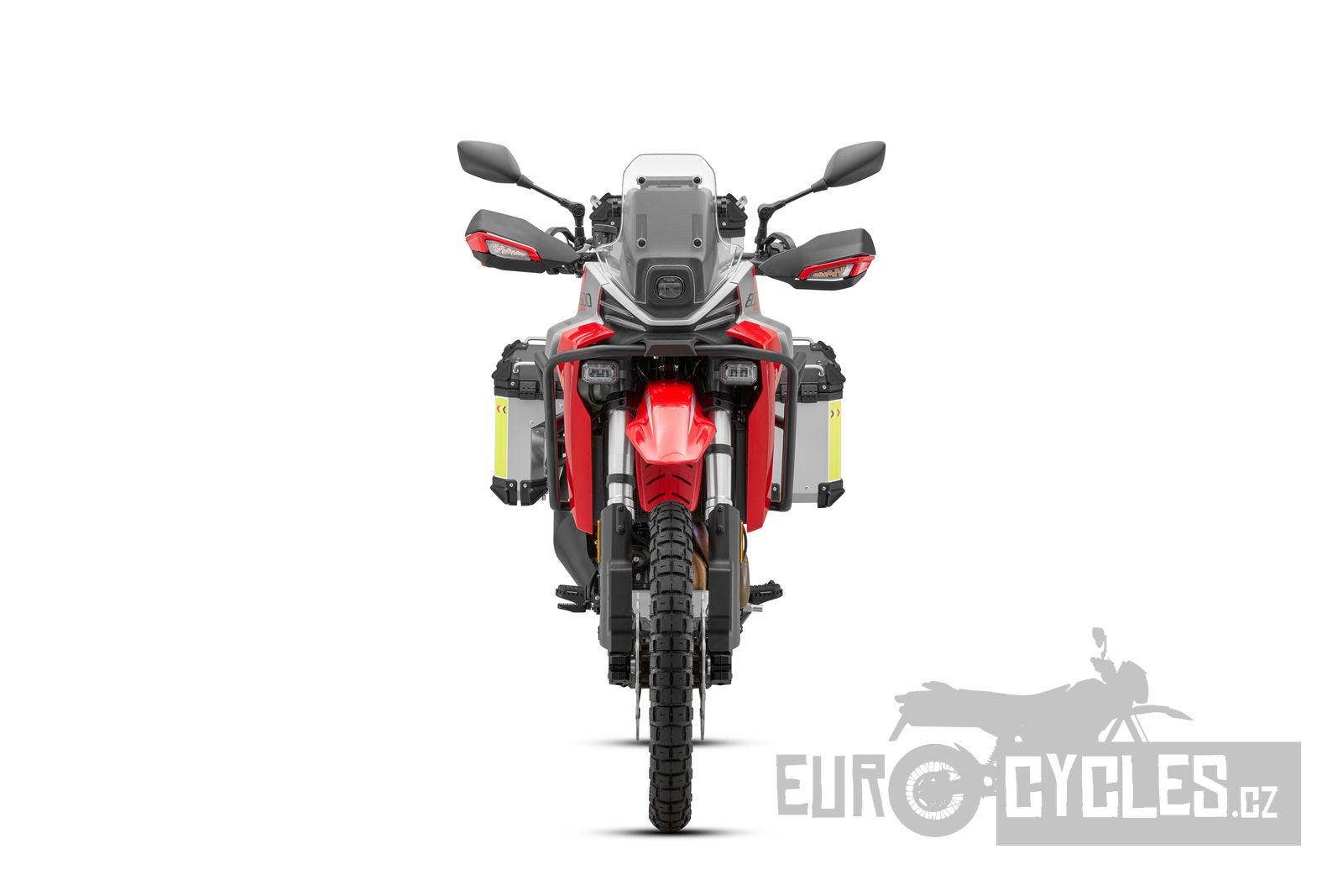 Nejen v mlze, ale i za snížené viditelnosti a v noci v terénu je jízda výrazně bezpečnější s těmito LED přídavnými adventure světly, které jsou speciálně navrženy a tvarovány tak, aby se vešly pod přední masku, což je jejich ideální umístění kvůli správnému nasvícení vozovky a zvýraznění obrysů stroje pro Vaši bezpečnost. Toto umístění eliminuje i možnost jejich poškození a dodává nové SRT 800 RX výrazný osobitý vzhled.