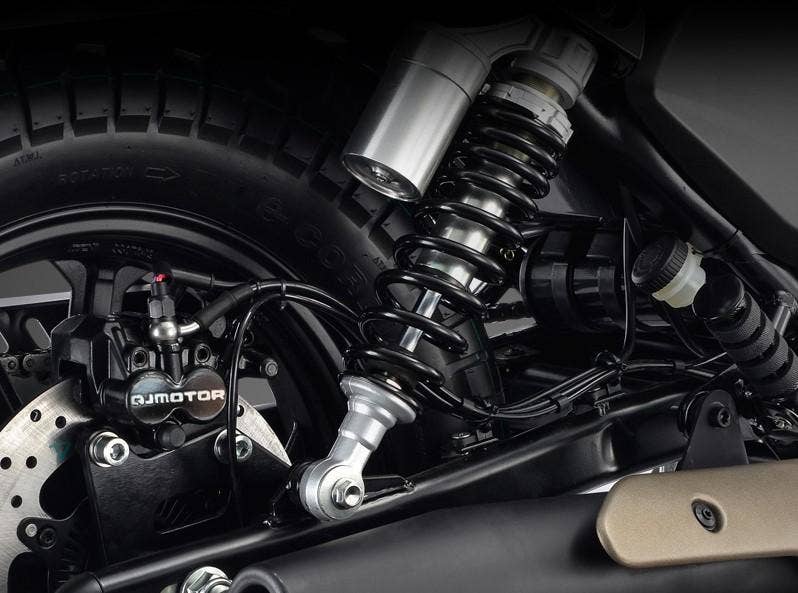 Dva zadní tlumiče o průměru 33 mm nabízejí rovnováhu mezi bezpečností, pohodlím a ovladatelností, přičemž mají nastavitelné předpětí progresivně vinutých pružin.
