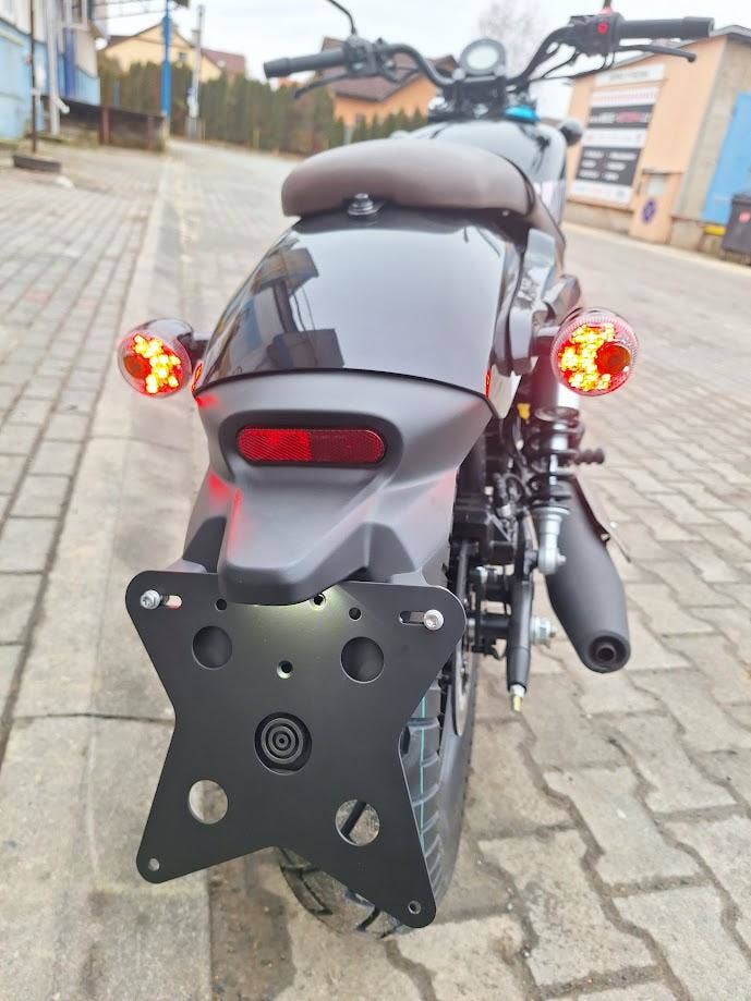 Autentický styl cruiseru s velkou nádrží ve tvaru kapky, kulatým chromovaným světlometem, zalomenými řídítky a uvolněným nízkým sedadlem dodávají modelu SRV 125 jeho krásný a jedinečný design.