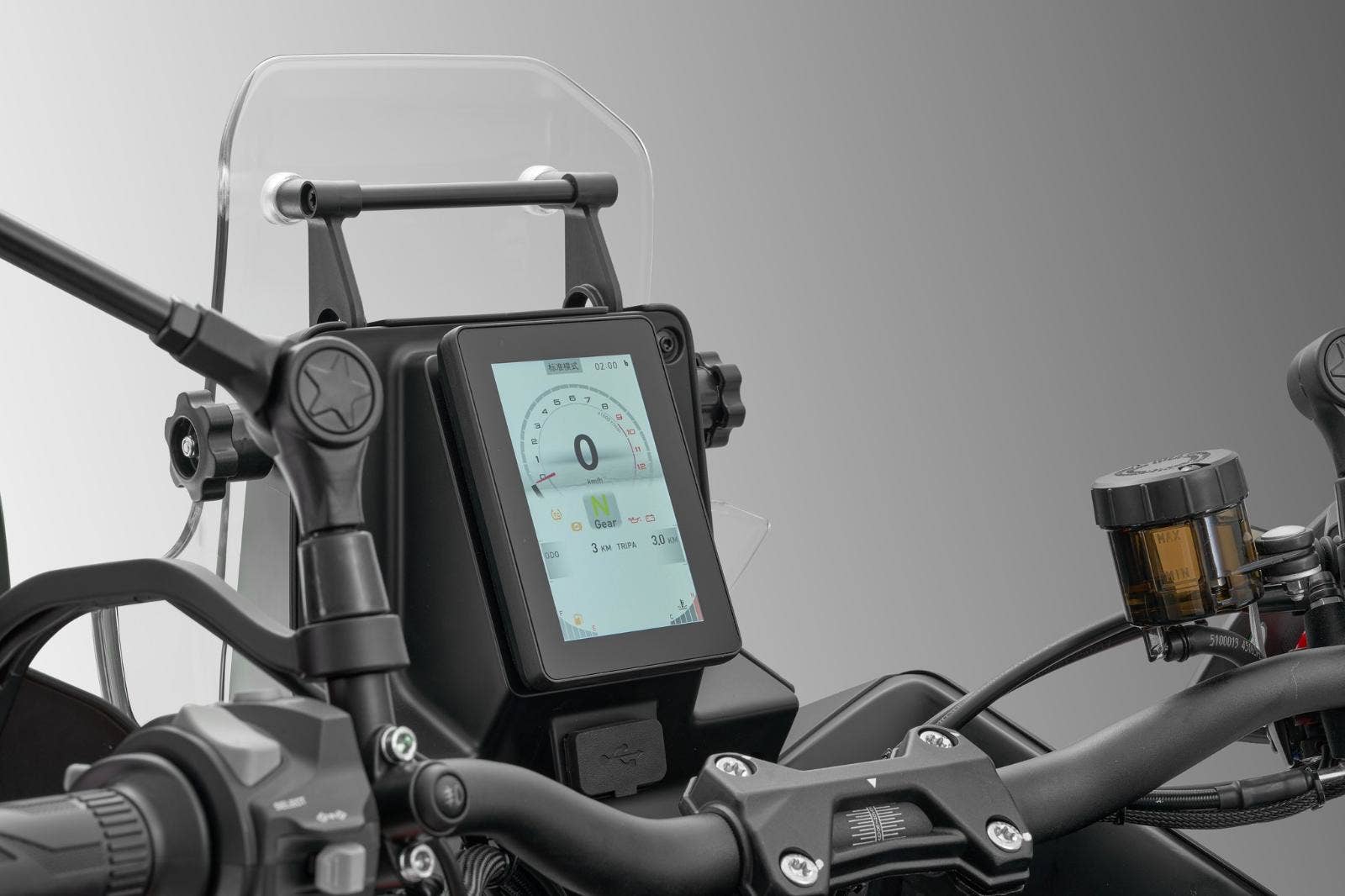 Velký barevný TFT displej zobrazuje velké množství informací, a nově navíc také tlak a teplotu v pneumatikách díky senzorům, které má tento motocykl v kolech. TFT panel je skvěle čitelný za jakéhokoliv počasí, protože je vybaven automatickým nastavením jasu a má též denní a noční režim. Kromě toho má schopnost propojit se s mobilním telefonem jezdce, s možností zobrazení navigace, která zobrazuje i aktuální provoz, nebo také umožňuje zrcadlit obrazovku Vašeho mobilního telefonu. Dále přístrojový panelu umožňuje spravovat a prohlížet si příchozí hovory. Pod panelem je také USB-C port pro nabíjení Vašich elektronických zařízení.