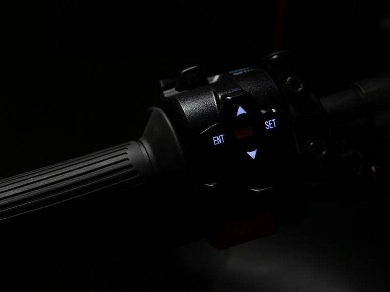 SRT 800SX má na rozdíl od konkurence i praktické podsvícené ovladače, což je dobré pro motocyklové začátečníky, ale též praktické pro zkušené jezdce. Ergonomické a funkční ovladače jsou diskrétně modře podsvícené, což usnadňuje jejich použití při jízdě v noci a zároveň dodává vzhledu motocyklu pěkný styling. Těmito ovladači snadno volíte funkce TFT panelu, takže za jekékoliv situace nemusíte sundávat ruce z řídítek. Máte tak plnou kontrolu nad svým motocyklem ve dne, ale i při jízdě v temné noci.
