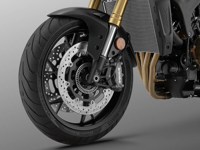 SRK 800 je standardně z výroby obutá na kvalitních pneumatikách Pirelli Angel GT. Tyto pneumatiky oceňují jezdci po celém světě ohledně jejich skvělých vlastností. Tyto sportovně cestovní pneumatiky nabízejí skvělý výkon po celou svou životnost a to jak na suché, tak i mokré vozovce. Špičková koncepce pro sportovní jízdu s DNA značky Pirelli.