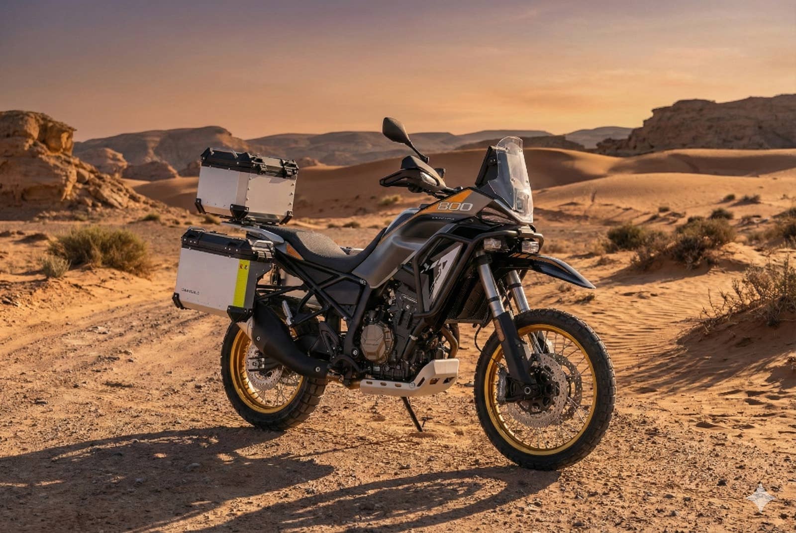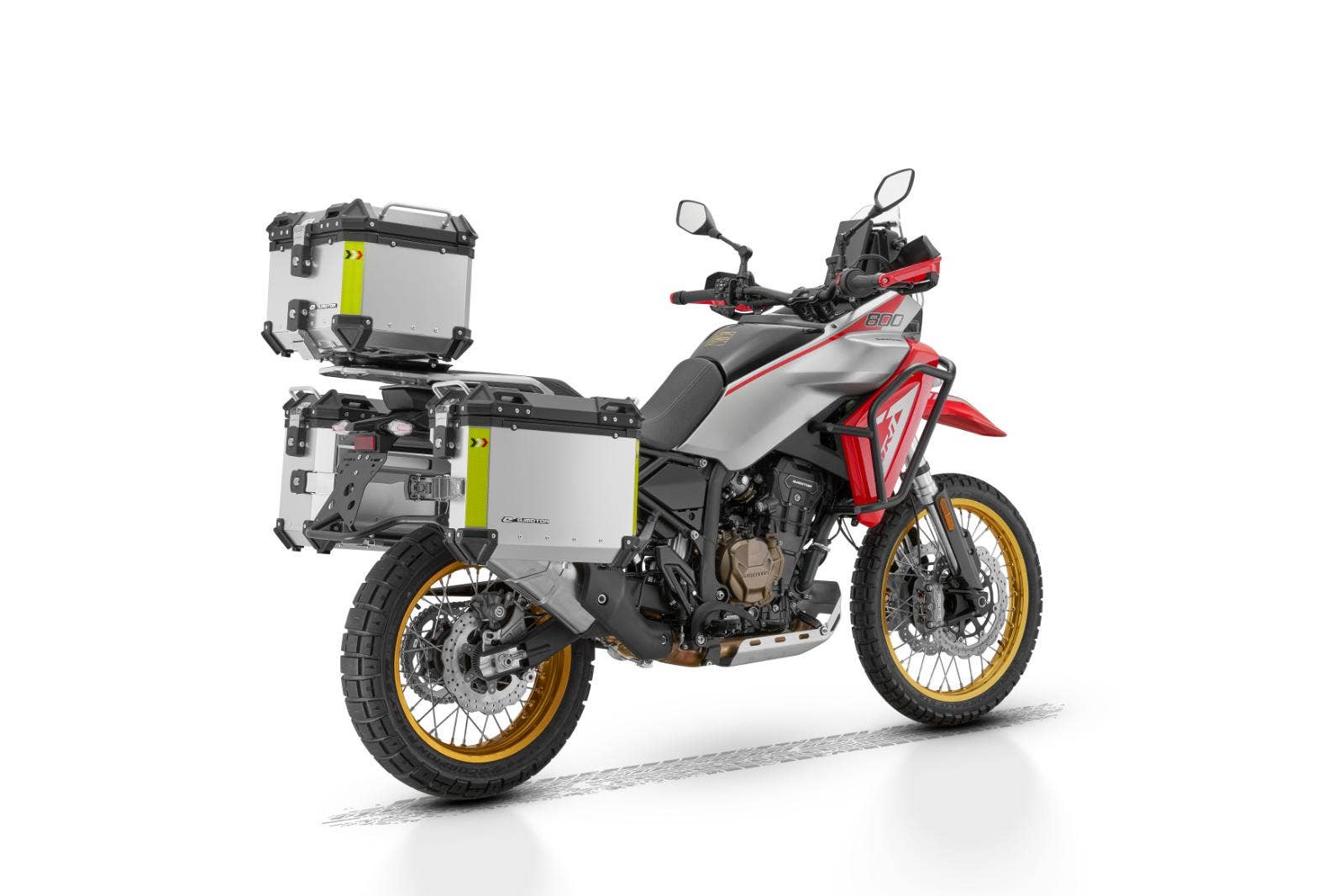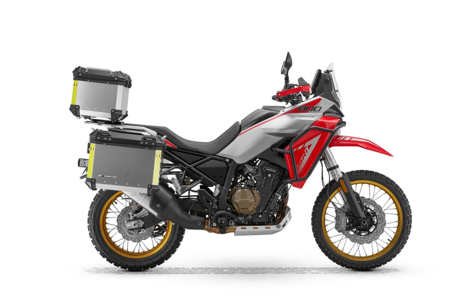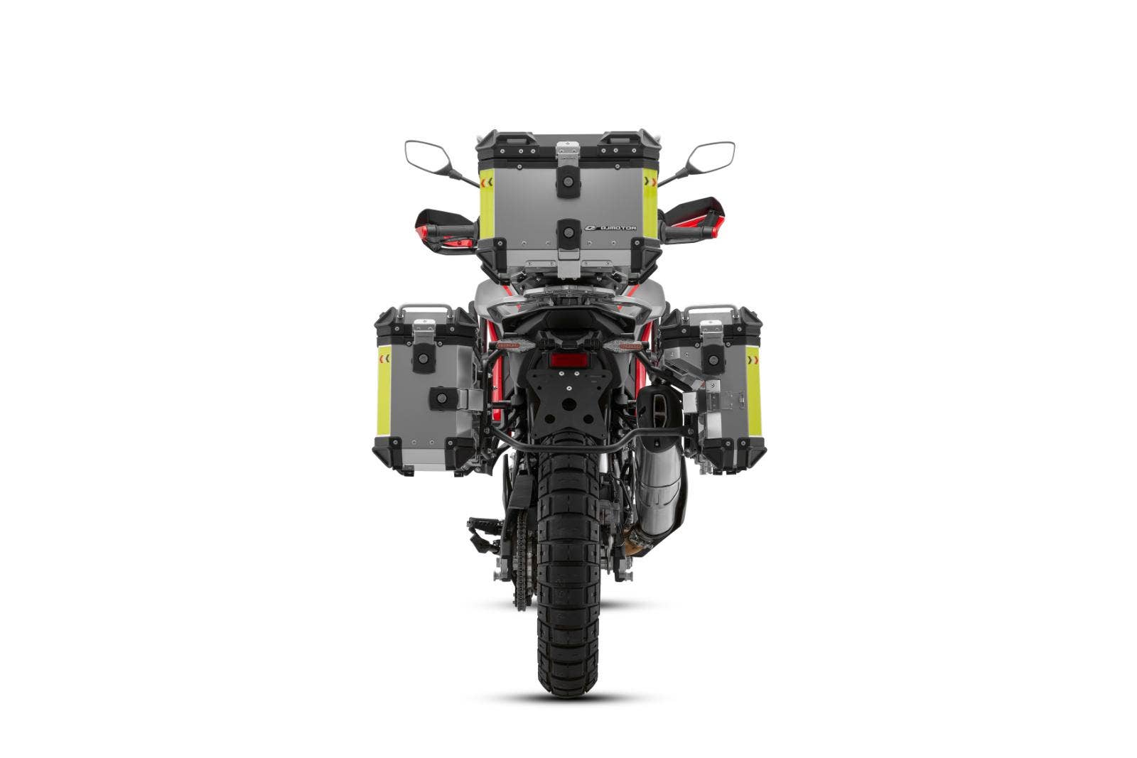 K SRT 800 RX dostanete zdarma též kvalitní originální sadu uzamykatelných hliníkových kufrů QJMOTOR. Horní kufr a boční kufry lze sejmout v několika jednoduchých krocích a nabízí velký úložný prostor pro každé dobrodružství. Horní kufr s úložným prostorem 45 litrů a dva boční kufry o objemu 37 a 30 litrů nabízejí dostatek místa pro Vaše cestovní vybavení. Kufry jsou uvnitř polstrované a mají praktické vniřní kapsy. Cena celé sady 3 kusů kufrů je 24 990 Kč! Při koupi nového motocyklu získáte tyty originální kufry zcela zdarma!