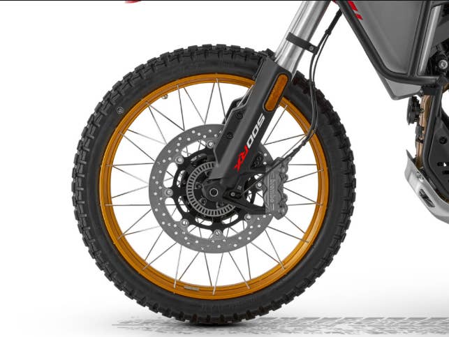 Výkonné třmeny Brembo vpředu i vzadu poskytují velmi silné brzdění a umožňují vám sebevědomě zpomalovat i při vysokých rychlostech. Dvoukanálový ABS ovládá ovládání kol na různých površích – snižuje riziko uvíznutí v blátě nebo uklouznutí na písku, což usnadňuje udržení stabilní kolejnice v náročných podmínkách.