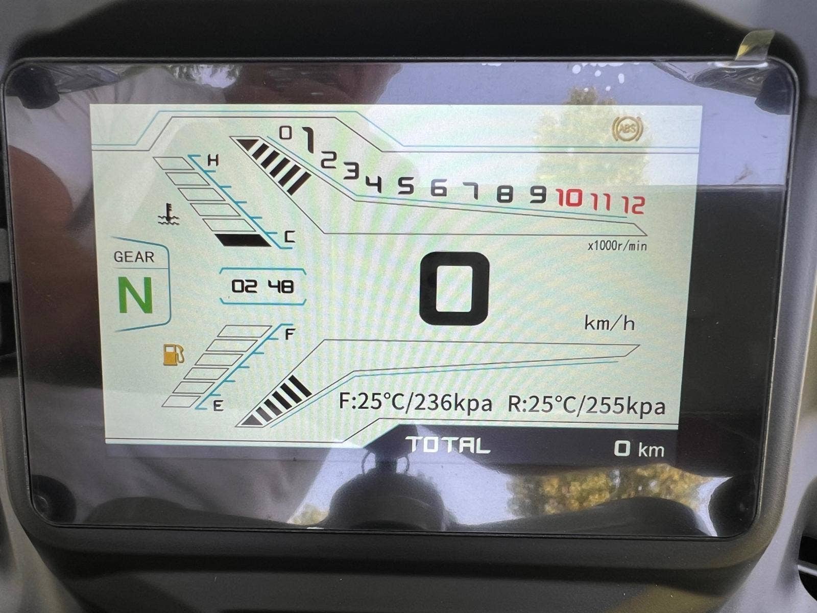 - Barevný 5″ TFT panel se senzory tlaku a teploty v pneu a navigací