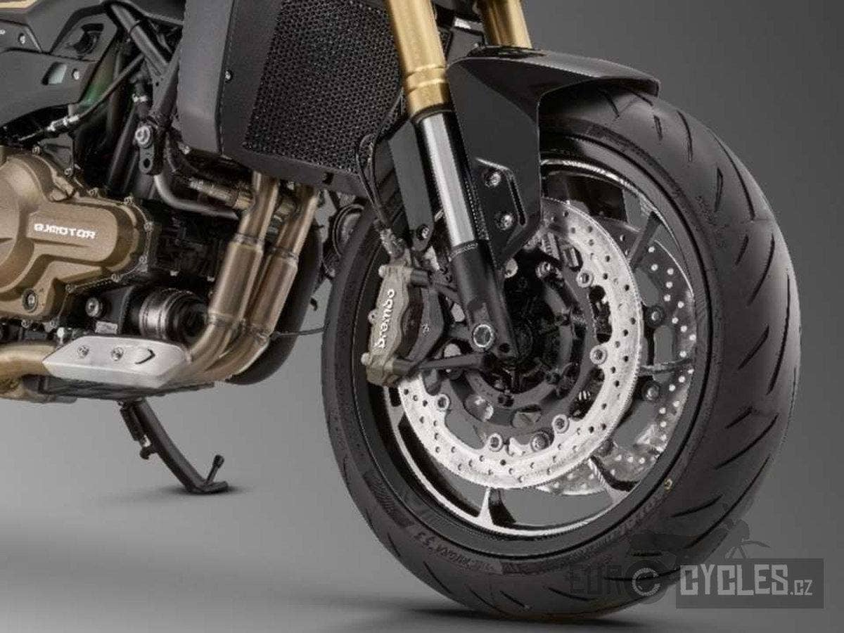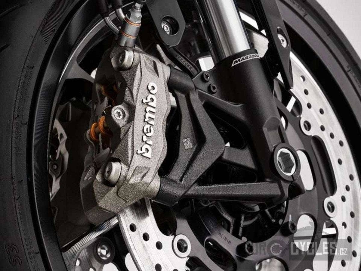 O bezpečné zastavení se starají radiální brzdy Brembo s kotouči na obou kolech a systémem ABS. Motocykl je dále vybaven kontrolou trakce a moderním digitálním displejem s přehledným zobrazením všech důležitých údajů.
