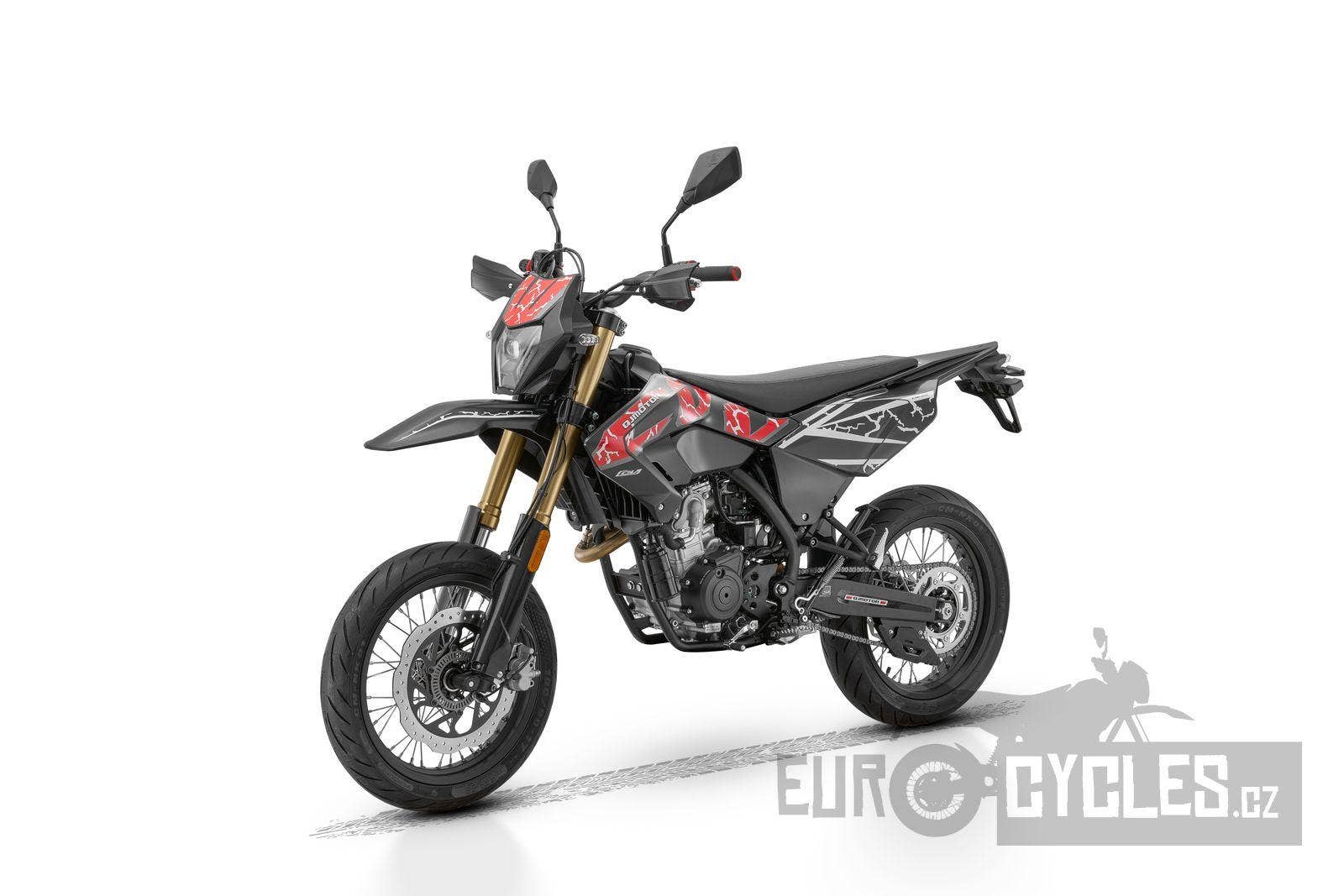 COV 125 má stejně jako všechny naše modely příjemný moderní a neokoukaný design. Design motardů (supermoto) se vyznačuje lehkostí, hbitostí a sportovním, minimalistickým vzhledem odvozeným z terénních motocyklů, ale přizpůsobeným pro silniční provoz a zábavnou jízdu, což je znát na každém detailu COV 125 na první pohled. Co Vás mile překvapí je hezké zpracování a krásné detaily, které dělají z COV 125 opravdu hodnotný stroj, na který budete hrdí. Jmenujme například krásný hluboký červený lak, parádní ergonomické prošívané ploché sedadlo c červeným potahem. Ladně působí též výfuk, který skvěle doplňuje sportovní charakter tohoto motardu. Nakonec zmíníme krásnou, ostře řezanou masku s LED světlometem a blinkry, a nebo propracované koncové LED světlo - to vše je sériový COV 125!