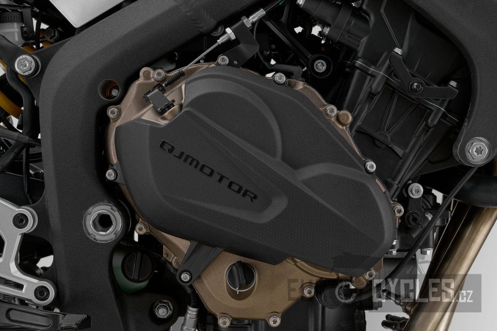Každý sportovní naked definuje především jeho motor. SRK 800 pohání řadový čtyřválec převzatý od supersportu SRK 800 RR s rozvody DOHC se 16 ventily o objemu 778 ccm, generující výkon 95 koní a maximální točivý moment 75 Nm. Pro modelový rok 2026 je motor stejně jako u supersportu zásadně upraven. Nyní má mnohem silnější střední pásmo, na přidání plynu reaguje motor velmi silně a bez jakéhokoliv cukání. Výkon lineárně roste téměř až k omezovači. Nová řídící jednotka od Magneti Marelli zajišťuje dokonalé dávkování paliva a umožňuje spolu s elektronickým plynem použít oboustranný quickshifter. Tento sériový motor Vám tak nabídne úžasné zrychlení, které tento sportovní supernaked z naší rodiny QJMOTOR nabízí.