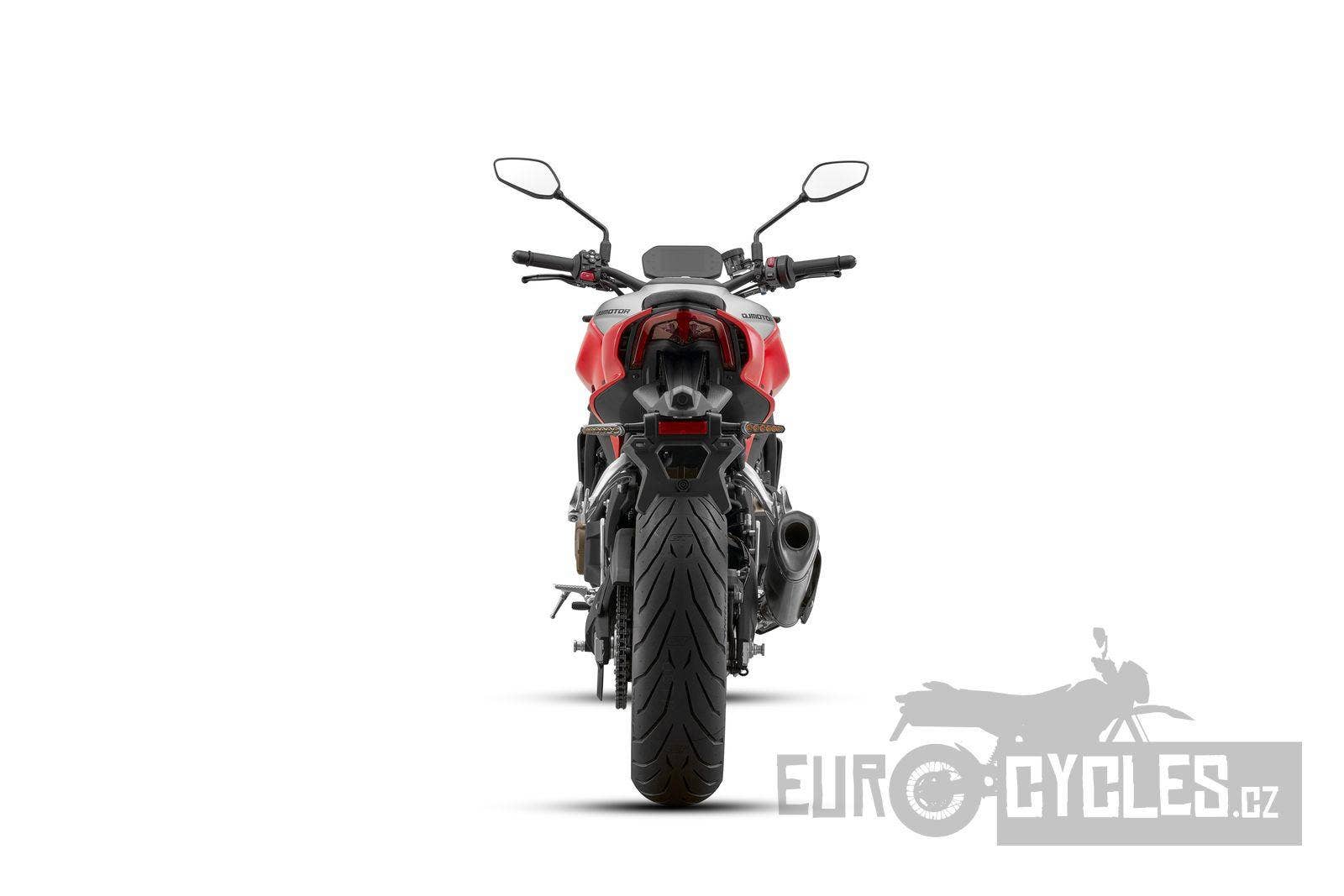 Speciálně navržené zadní LED osvětlení navazuje na estetiku přední části a vytváří jedinečnou identitu supersportovních motocyklů od QJMOTOR. Kromě předního a koncového světla jsou samozřejmě i blinkry a další osvětlení Full LED. Design celé zadní části je též originální a neokoukaný. Tenká, minimalistická podsedlovka s výraznými liniemi a aerodynamickými průduchy dává vyniknout ladným tvarům SRK 800 a poukazuje na silný charakter tohoto supernakedu.