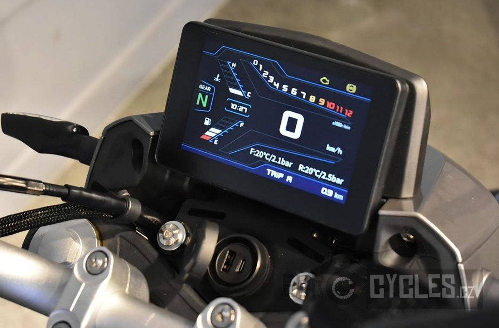 5" barevný TFT displej zobrazuje velké množství informací, a nově navíc také tlak a teplotu v pneumatikách díky senzorům, které má tento motocykl v kolech. TFT panel je skvěle čitelný za jakéhokoliv počasí, protože je vybaven automatickým nastavením jasu a má též denní a noční režim. Kromě toho má schopnost propojit se s mobilním telefonem jezdce, s možností zobrazení navigace, která zobrazuje i aktuální provoz. Vedle TFT panelu je také dvojitý USB port pro nabíjení Vašich elektronických zařízení.