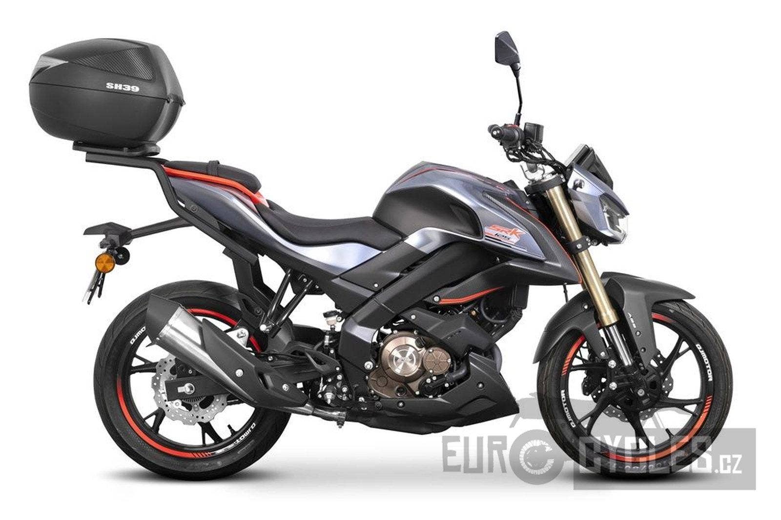 Při koupi SRK 125 S si můžete tento motocykl dále vylepšit o praktický horní kufr, který Vám umožní využít tento motocykl na maximum, jak při každodenním dojíždění, tak i na delších výletech. Můžete si zvolit i objem kufru, pro SRK 125 S jsou k dispozici kufry o objemu od 26 do 37 litrů, které pasují na univerzální plotnu dodávanou pro tento motocykl. Více informací Vám sdělí Váš autorizovaný prodejce QJMOTOR.