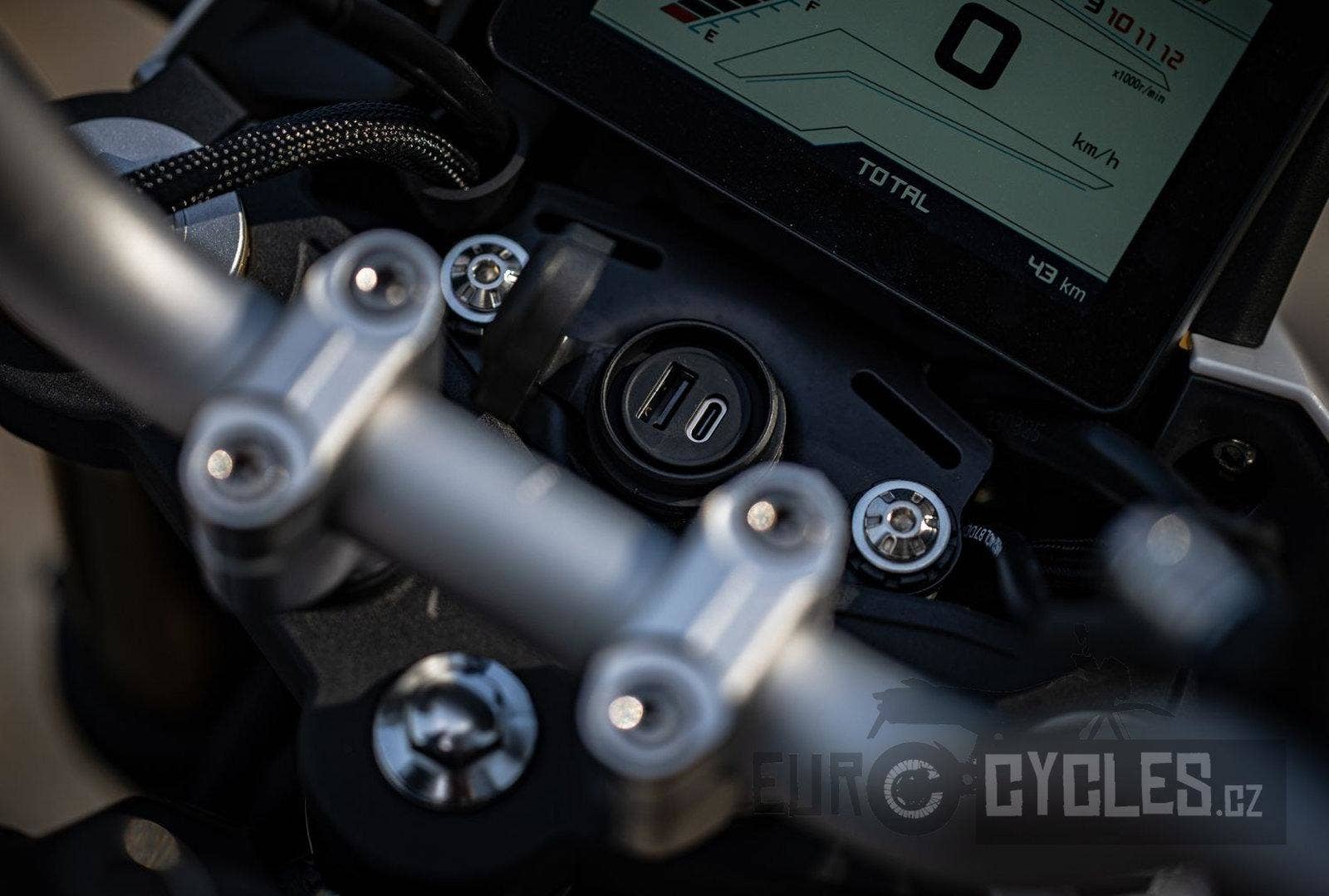 V kokpitu je vedle LCD panelu integrována i zásuvka USB-A a USB-C! Můžete skrz ně nabíjet například mobilní telefon, nebo zapojit navigaci. USB zásuvky mají samozřejmě voděodolnolu gumovou krytku.