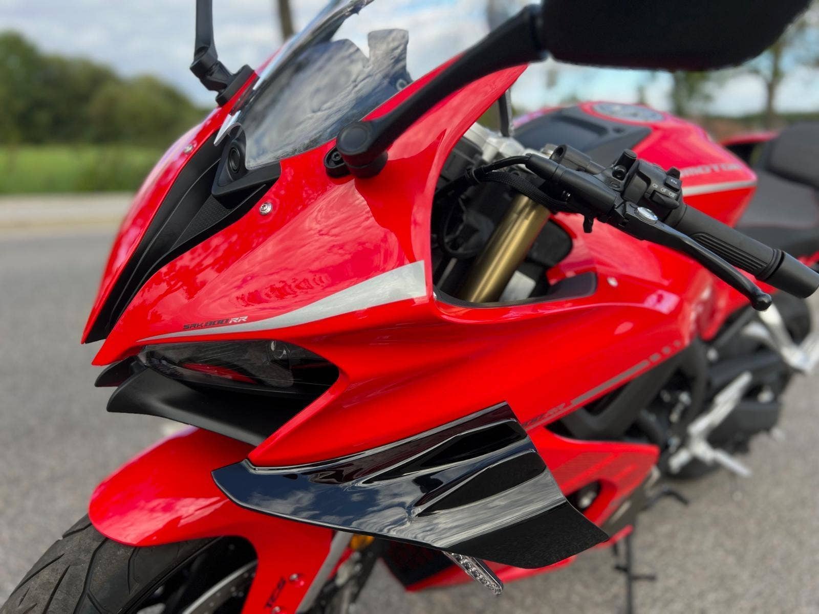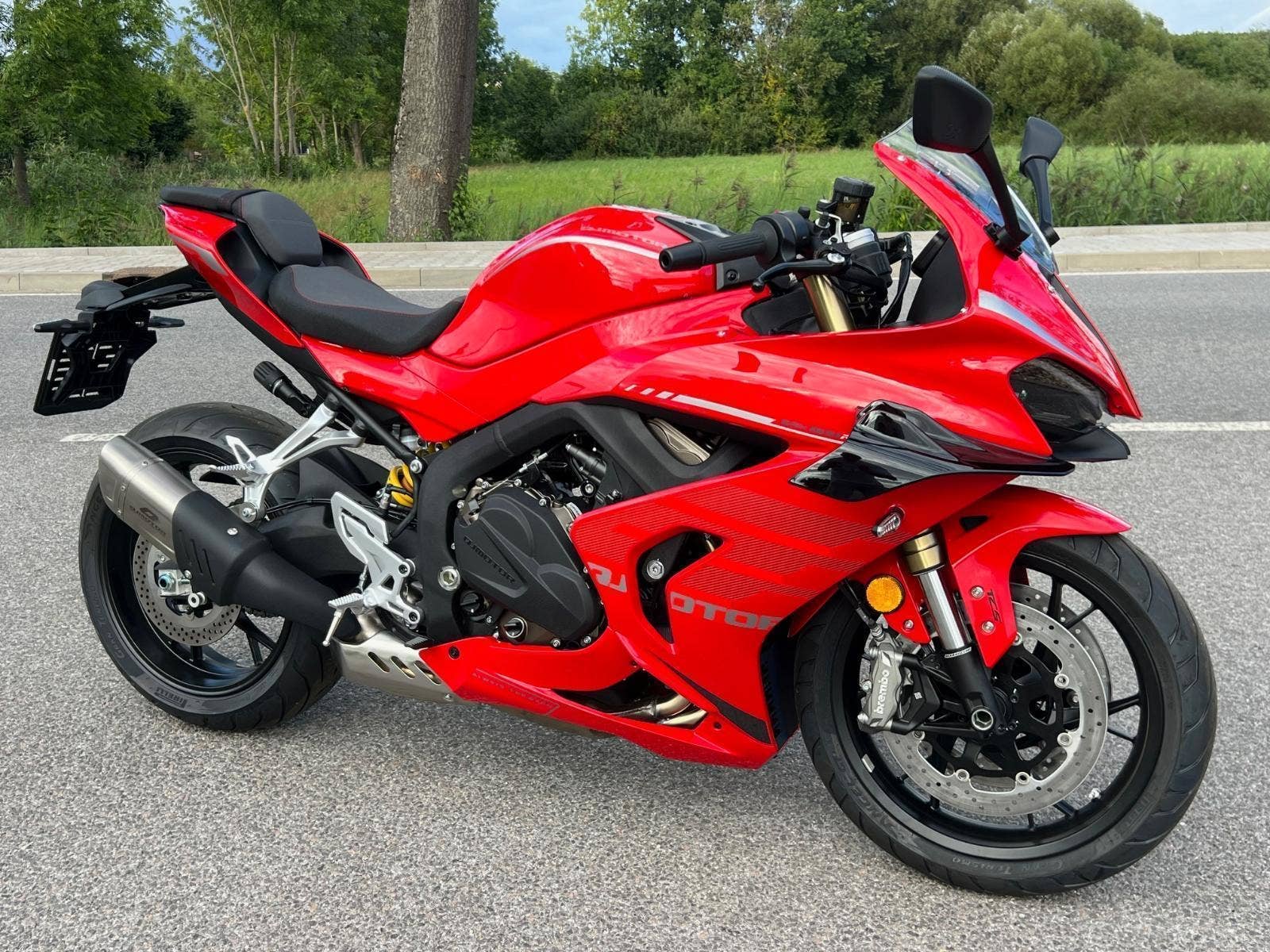 SRK 800 RR je zbrusu nový sportovní motocykl od společnosti QJMOTOR. Tento model vychází ze závodního motocyklu, který od sezóny 2024 soutěží v šampionátu WSBK Supersport s týmem QJMOTOR RACING TEAM. Dynamická a agresivní silueta byla navržena italskými designéry a je podřízena aerodynamice a funkčnosti. Styl zároveň ukazuje vášeň, originální styl a smysl pro detail. QJ SRK 800 RR je vybaven pokročilým řadovým čtyřválcovým motorem o objemu 778 ccm s výkonem 102 koní a systémem Ram Air. Silný výkon a sportovní výkon můžete ovládat díky použití dvou radiálních předních brzd Brembo, které jsou vybaveny dvojicí kotoučů o průměru 320 mm! Hliníkový rám motocyklu je vyroben technologií Delta Box a vybaven pokročilým odpružením Marzocchi. Přední křídla vytvářejí dodatečný tlak při vysokých rychlostech a také zlepšují stabilitu stroje při brzdění. Sportovní QJ SRK 800 RR má neuvěřitelně konkurenceschopnou cenu vzhledem k použití moderních a pokročilých technologií…