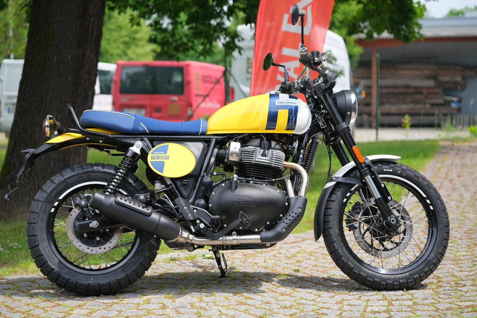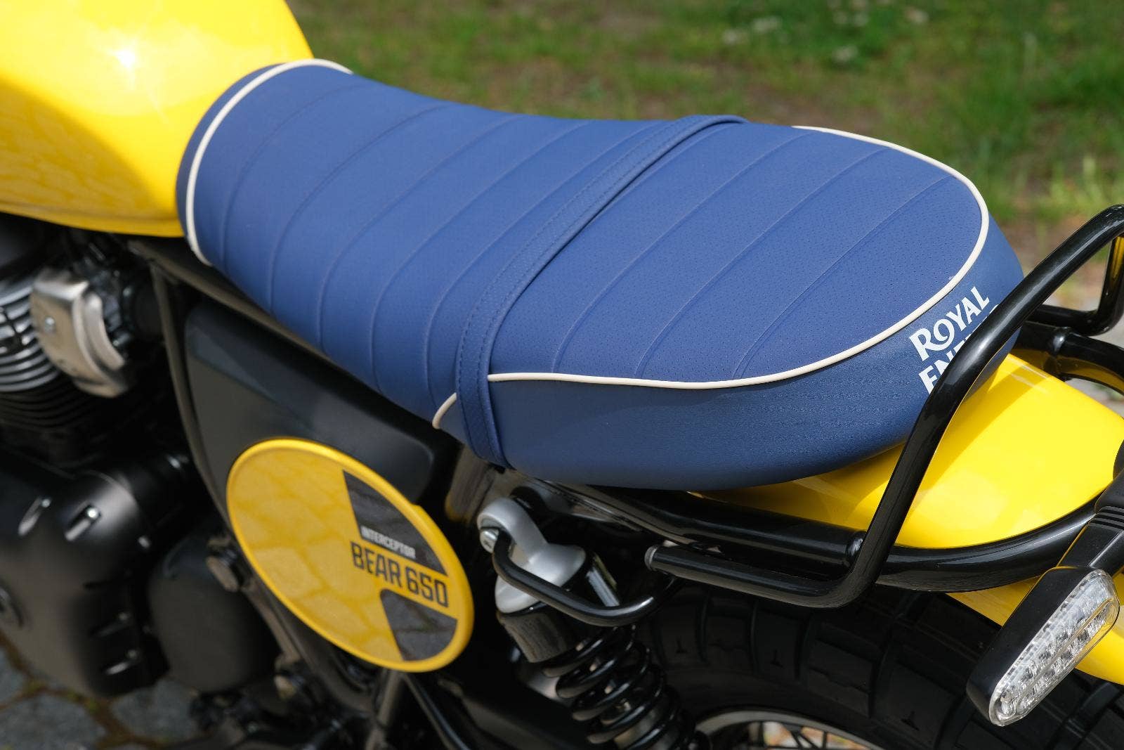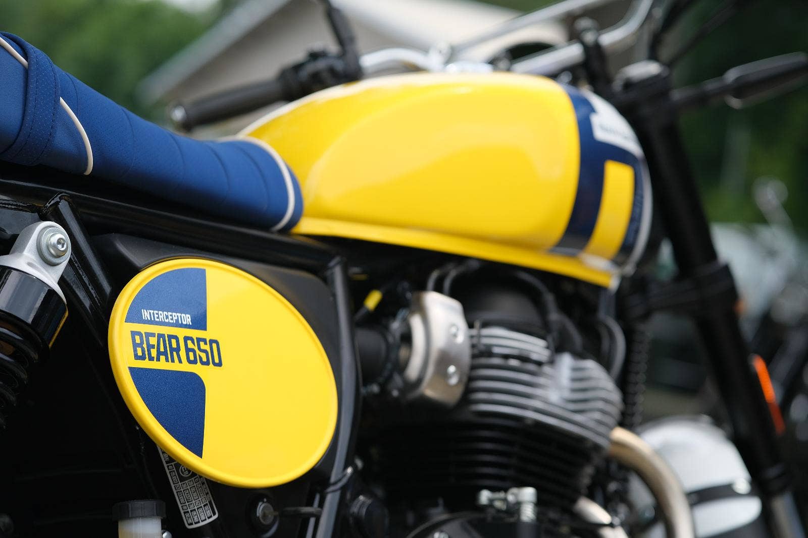 Stylový scrambler s duší 60. let založený na Interceptoru 650 a inspirovaný historickým vítězstvím Eddieho Muldera na Big Bear Run v roce 1960. Poháněný citem a sílou opěvovaným650cc paralelním dvouválcem Royal Enfield. Bear 650 kombinuje autentický styl scrambleru s drsným a nekompromisním duchem. Kombinace předního a zadního kola19”/17” s robustními pneumatikami pro nezpevněné povrchy, sedadlo ve stylu scrambleru, zvednutý podsedlový rám a 184mm světlá výška z něj dělají dokonalého společníka pro jezdce, kteří hledají styl a oldschool pohled na věc.