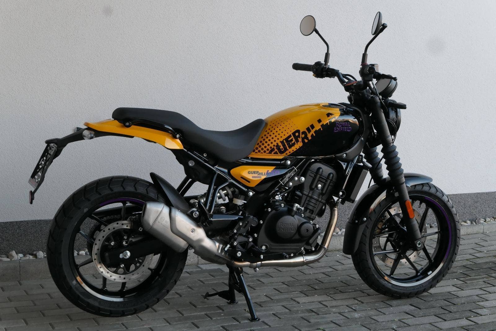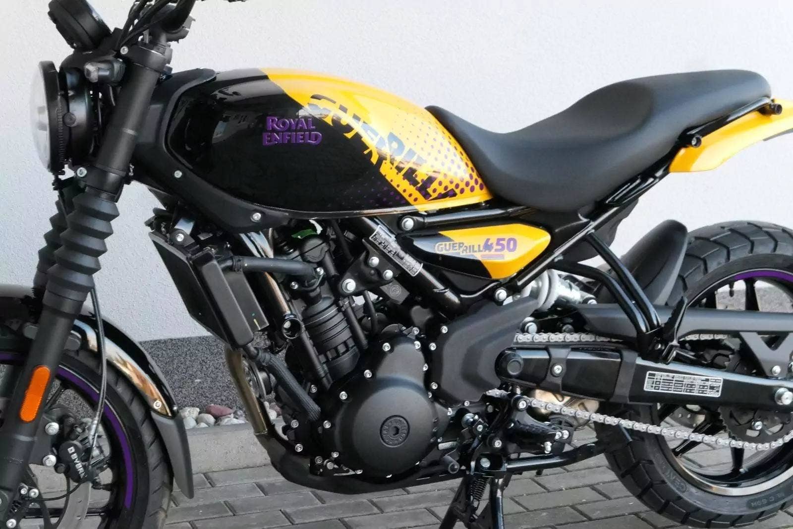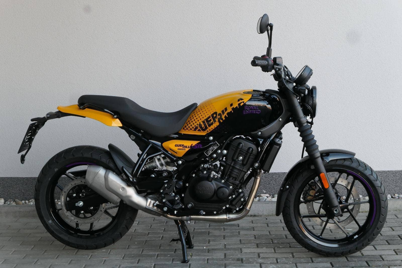 Royal Enfield Guerrilla 450 sdílí motor a technický základ s cestovním endurem Himalayan 450, stojí ale na malých silničních kolech a místo cestování míří na každodenní dojíždění, i na radovánky okolo komína.