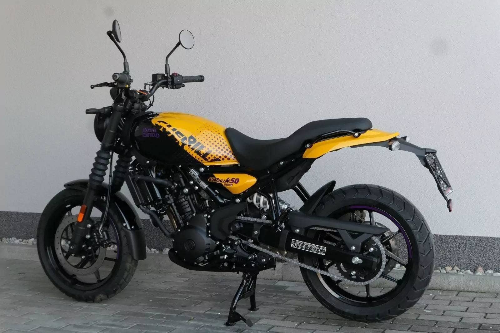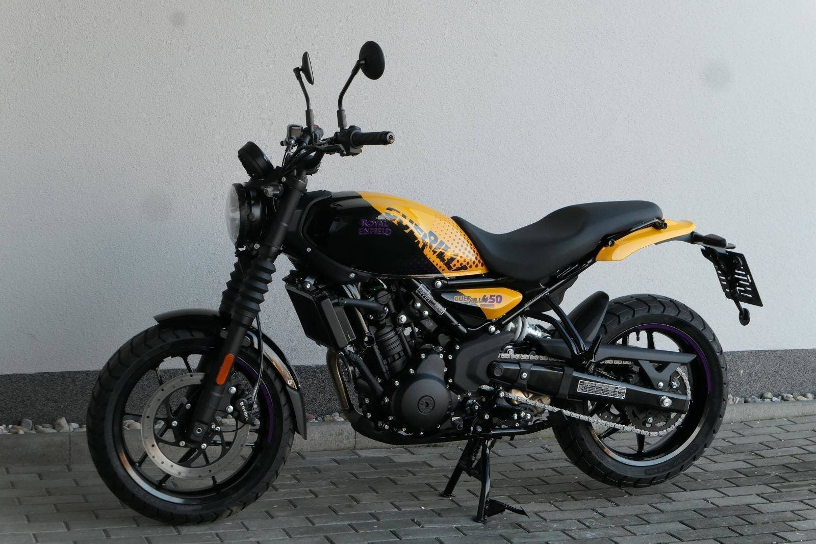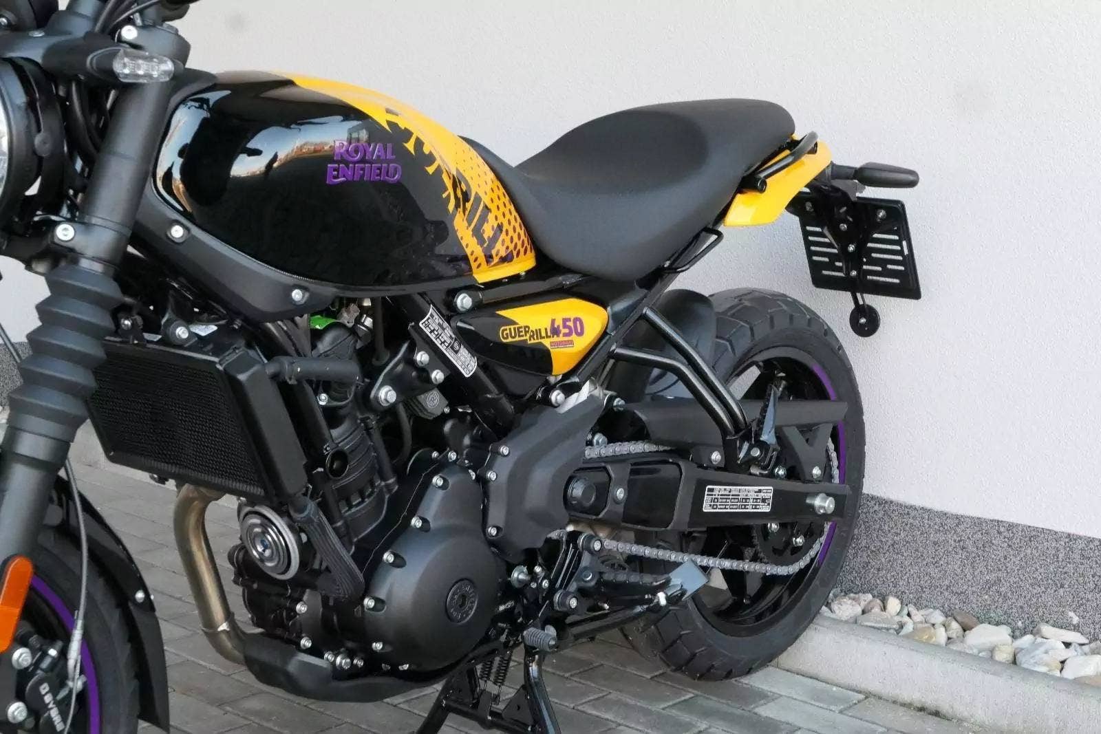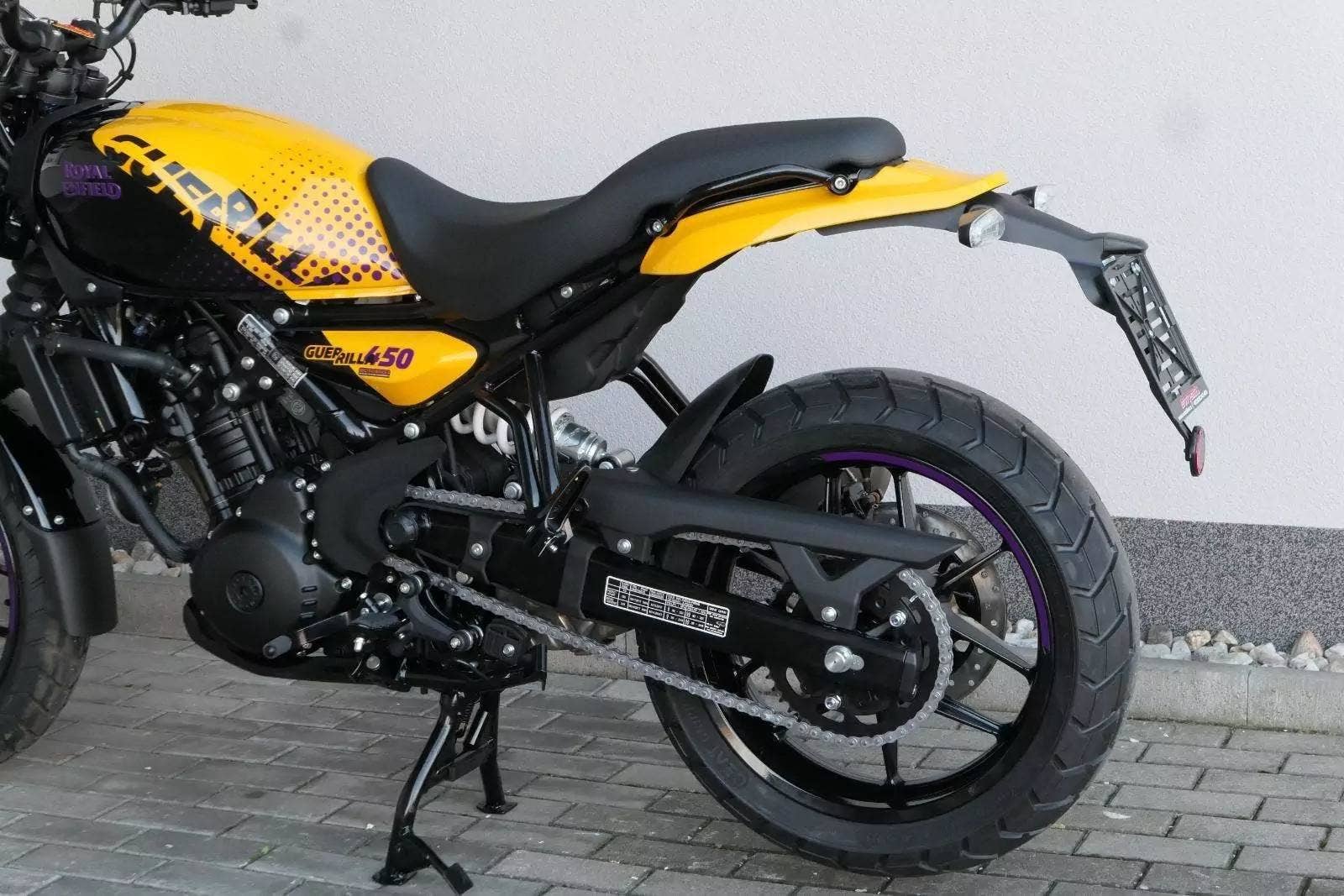 Royal Enfield Guerrilla 450 sdílí motor a technický základ s cestovním endurem Himalayan 450, stojí ale na malých silničních kolech a místo cestování míří na každodenní dojíždění, i na radovánky okolo komína.