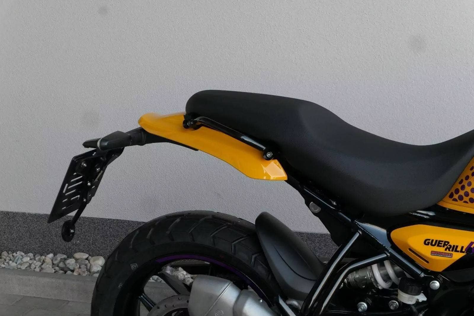 Kola jsou sedmnáctipalcová a Guerilla se chlubí přístupnou výškou sedla 780 milimetrů, stejně jako příjemnou pohotovostní hmotností 184 kilogramů. S ohledem na výkon a hmotnost jsou celkem dostačující i brzdy – vpředu jeden kotouč 310 milimetrů s dvoupístkovým brzdičem, vzadu 270 milimetrů s jednopístem. Do nádrže se vejde jenom skromných 11 litrů, na druhou stranu výrobce uvádí i skromnou tabulkovou spotřebu 3,39 litru na 100 kilometrů.