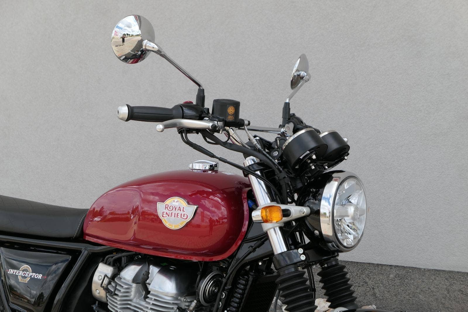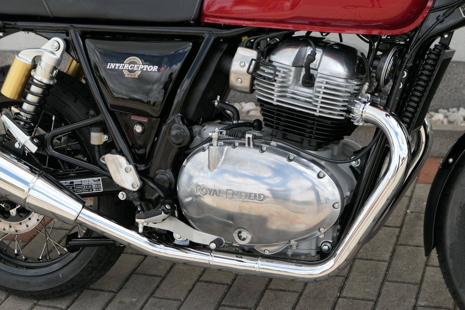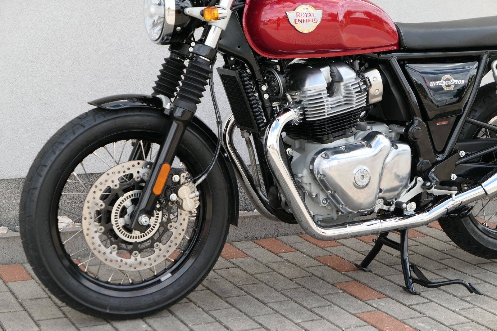 Typický moderní klasický roadster - se kterým je radost jezdit na klikatých silnicích, dálnicích, nebo v městské džungli, se stejnou lehkostí a grácií jak pro začátečníky tak pro zkušené jezdce. Easy come, easy GO Rám, vyvinutý ve spojení s legendárním Harris Performance, důkladně testován na odolnost, nabízí vynikající rovnováhu a ovladatelnost. Spolu s jemně vyladěným odpružením s dvojitými tlumiči naplněnými plynem pro dosažení optimální kombinace pohodlí a cítění podvozku zajišťuje, že s GT 650 je jízda dynamická a živá jako nikdy předtím. Srdce všeho Vzduchem / olejem chlazená paralelní dvojitá konfigurace, která byla vybrána pro své nezahlcené linie. Motor 648 cm3 vytvořen pro jízdu v reálném světě, s dostatečnou silou pro lehkou jízdu v městské dopravě nebo bez námahy na otevřené cestě. Dvojité těleso škrticí klapky spárované s vysoce přesným systémem vstřikování paliva Bosch vede k vynikající odezvě škrtící klapky v celém rozsahu otáček. Smooth operator Klasická estetika 18 "kola, jejichž konstrukce a složení byly speciálně vyvinuty pro Royal Enfield pro doplnění podvozku a odpružení ve všech jízdních podmínkách. Kombinace dvojitého pístu odvozeného od Brembo, plovoucí přední disk a dvoukanálový systém ABS Bosch zajišťují spolehlivé brzdění s progresivní zpětnou vazbou. Paralela bez paralel Se širokým opěrným řídítkem má Interceptor komfortní vzpřímenou řídící jízdní polohu. Ergonomický trojúhelník, který je tvořen řídítky, má nízké sedadlo a stopu, je nastaven pro pohodlí s jemným sportovním zaujetím, který pomáhá jezdci co nejvíce využít agilního podvozku a intuitivně se s ním propojit. Stará škola nově Zatímco nádherně tvarované linie lesklého, ručně leštěného hliníkového motoru pokrývají zlatou éru motocyklů, to, co nutí otáčet hlavy, je hluboký zvuk výfuku - vytvářející buď opojný rytmické bublání, nebo mohutné dunění. Dokonalost v detailech Royal Enfield poprvé používá šestistupňovou převodovku, vyvinutou speciálně pro 650 Twin - prošla náročným testováním, s pečlivě vybranými převodovými poměry, které dodávají nejlepší poměr pro všechny jízdní podmínky. Výsledek je patrný z optimálního řazení a ideálního záběru. Převodovka je doplněna o spojku, která má asistovanou funkci pro lehký stisk páky.