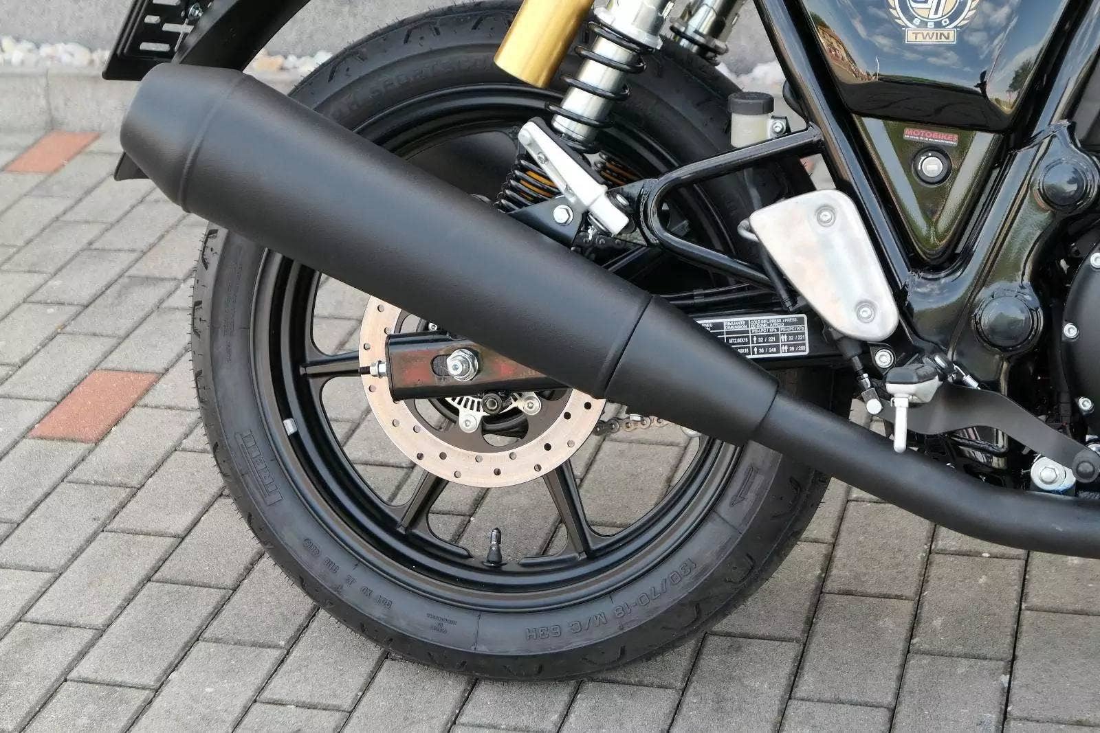 zcela černá varianta Continental GT 650 dodává retro café raceru jemnou, stylovou estetiku. Zatemněný motor a výfuk plynule splývají s podvozkem stroje a přitahují pohled k nádrži – tento vzhled zaručeně rozbuší srdce. Nový Continental GT 650 Twin, inspirovaný kulturou café racer 50. a 60. let, oživuje ducha našeho Continentalu GT 250. Se svou zakřivenou nádrží, dynamickým charismatem a přikrčenou jízdní pozicí nese všechny znaky tradičního café raceru, takže je ideální pro jízdu na venkově nebo spoustu zábavy ve městě.