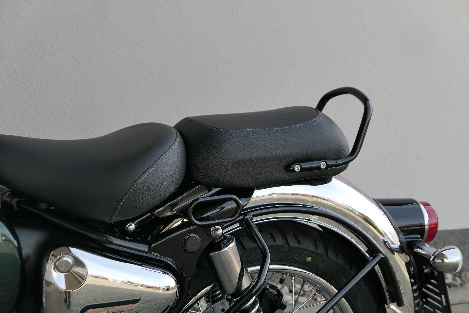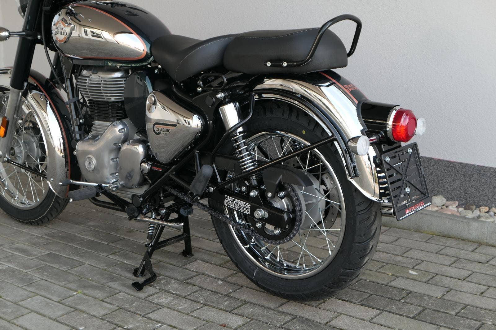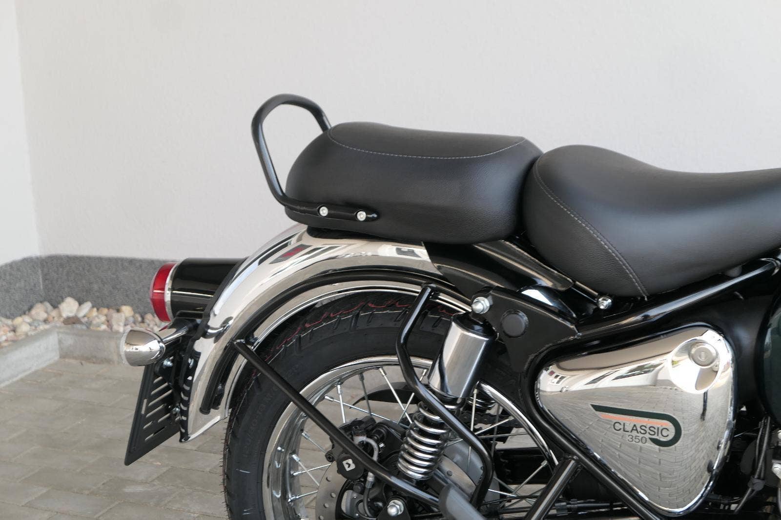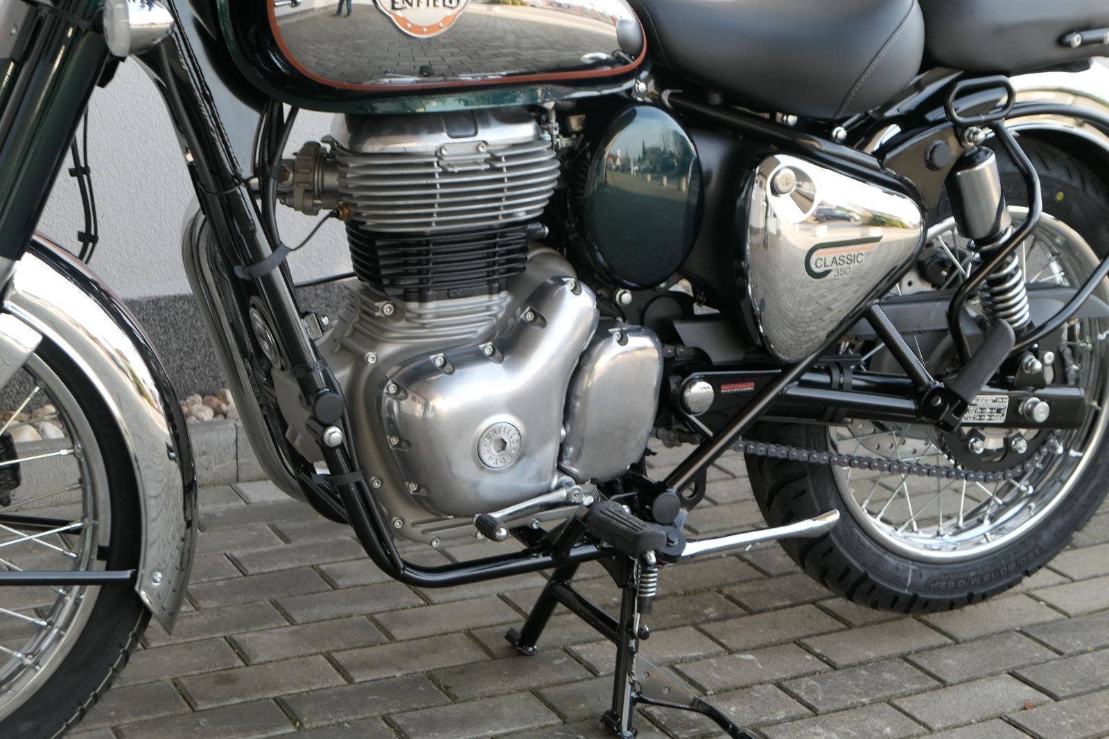 Ústředním prvkem nového Classic 350 je zcela nové srdce, které bije do jedinečného rytmu Royal Enfield. Ve spojení s novým rámem se dvěma spodními trubkami, který jezdí pevně a věrně, solidní a spolehlivou kvalitou konstrukce, je Classic vaším spojencem, ať už je váš cíl kdekoliv. Vzpřímená jízdní poloha dává jezdci Classicu vynikající vzhled na silnici, zatímco brzdy s větším průměrem zvyšují jeho brzdnou sílu. Ale silnější neznamená jen schopný a odolný, Classic je obdařen také pohodlím, s vylepšeným širším sedlem, které zpříjemňuje jízdu.