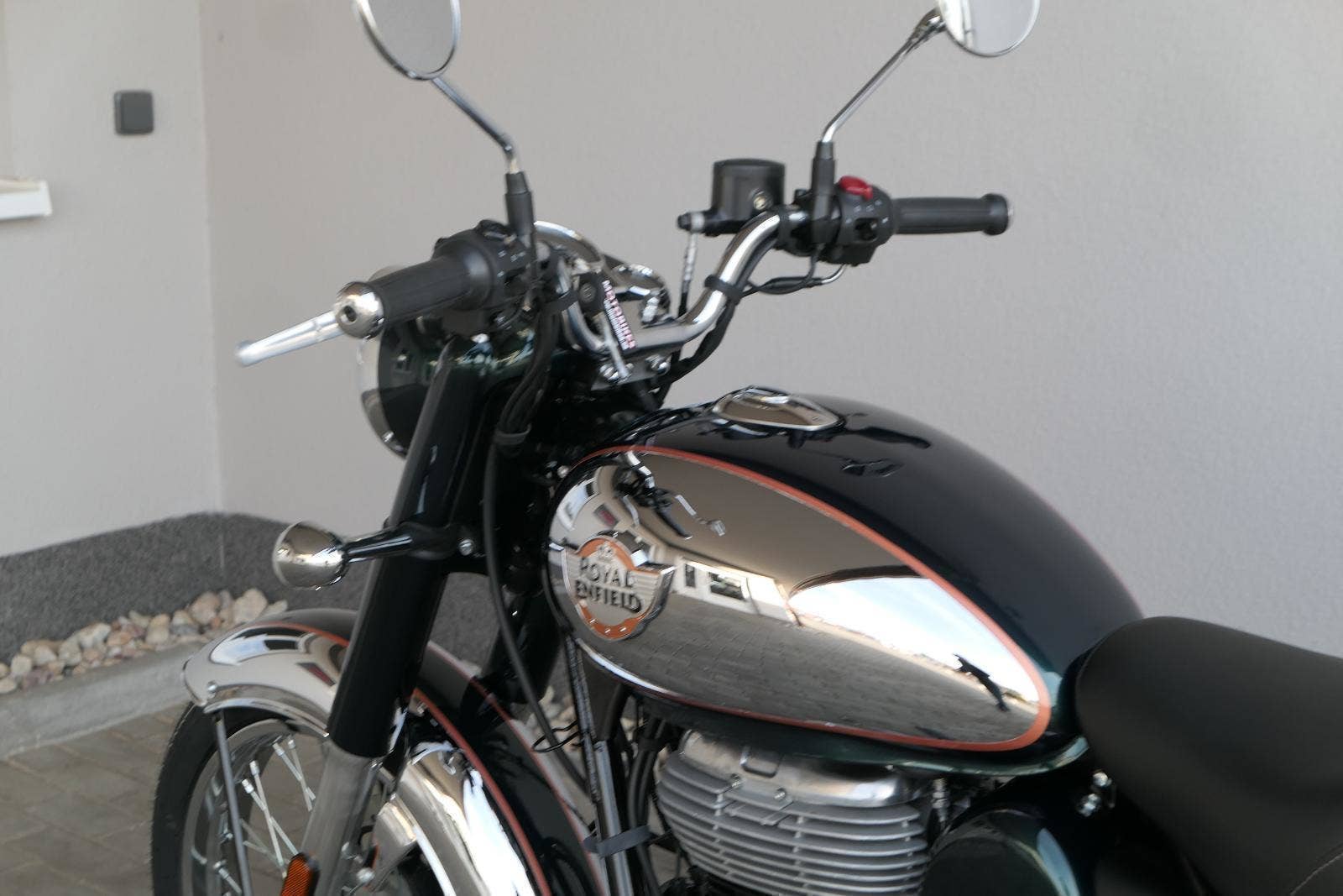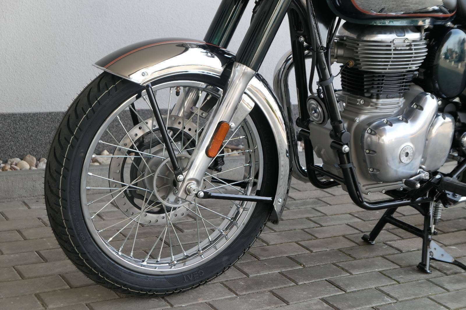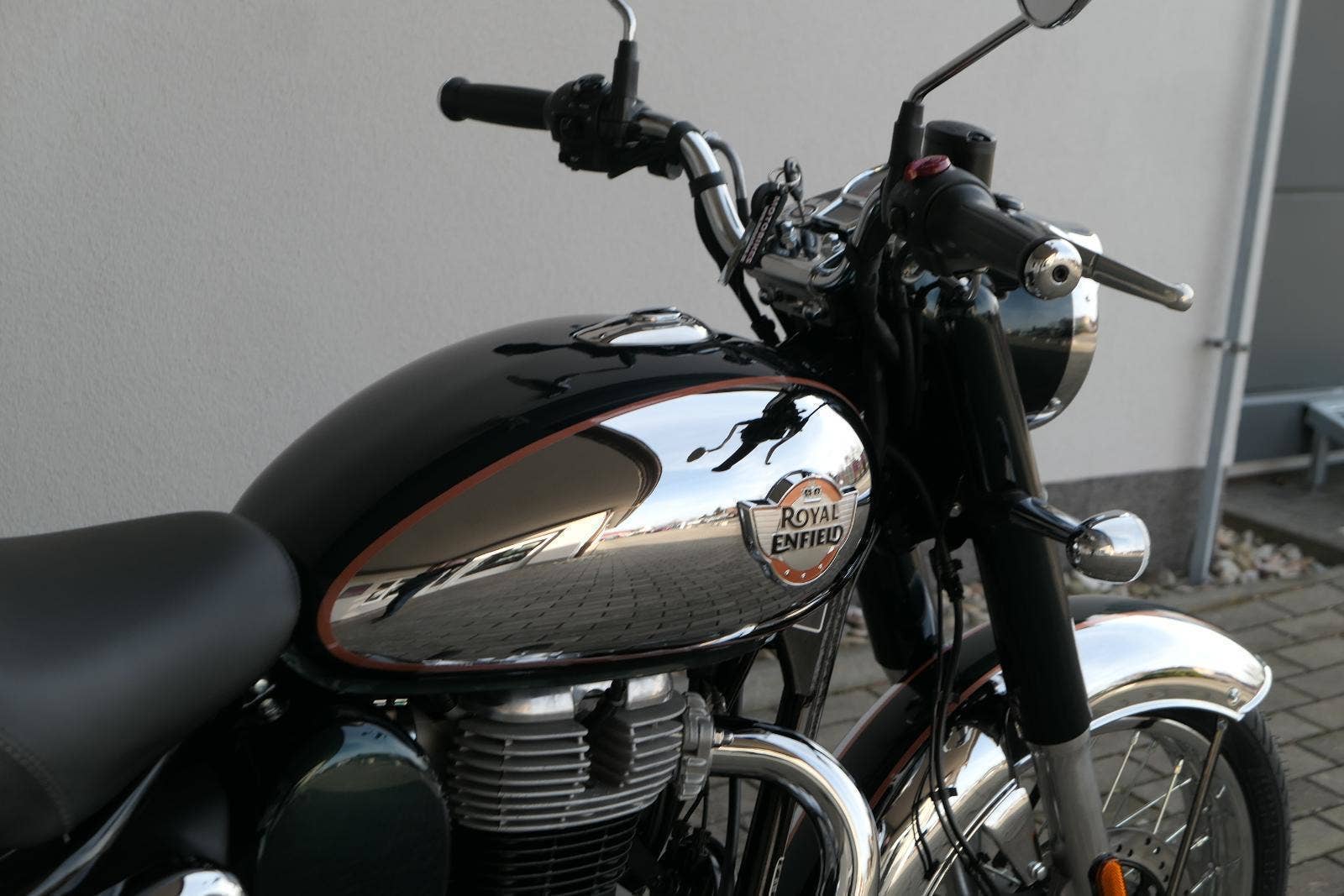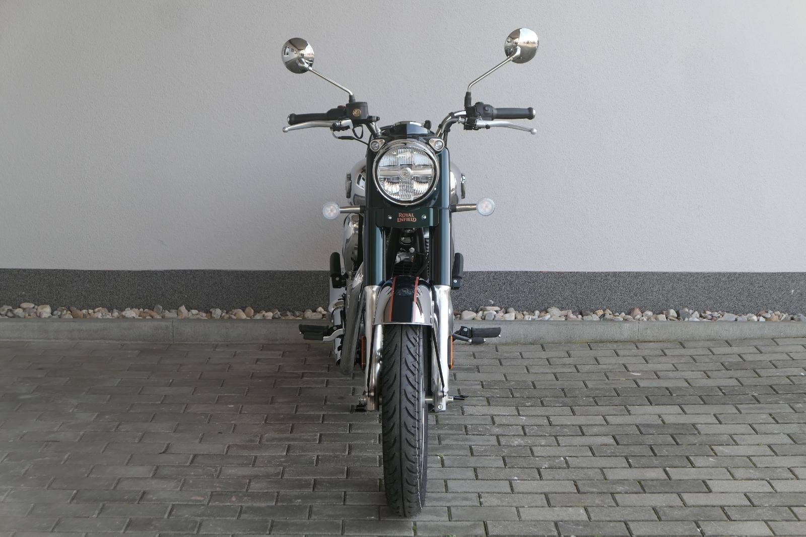 Ústředním prvkem nového Classic 350 je zcela nové srdce, které bije do jedinečného rytmu Royal Enfield. Ve spojení s novým rámem se dvěma spodními trubkami, který jezdí pevně a věrně, solidní a spolehlivou kvalitou konstrukce, je Classic vaším spojencem, ať už je váš cíl kdekoliv. Vzpřímená jízdní poloha dává jezdci Classicu vynikající vzhled na silnici, zatímco brzdy s větším průměrem zvyšují jeho brzdnou sílu. Ale silnější neznamená jen schopný a odolný, Classic je obdařen také pohodlím, s vylepšeným širším sedlem, které zpříjemňuje jízdu.