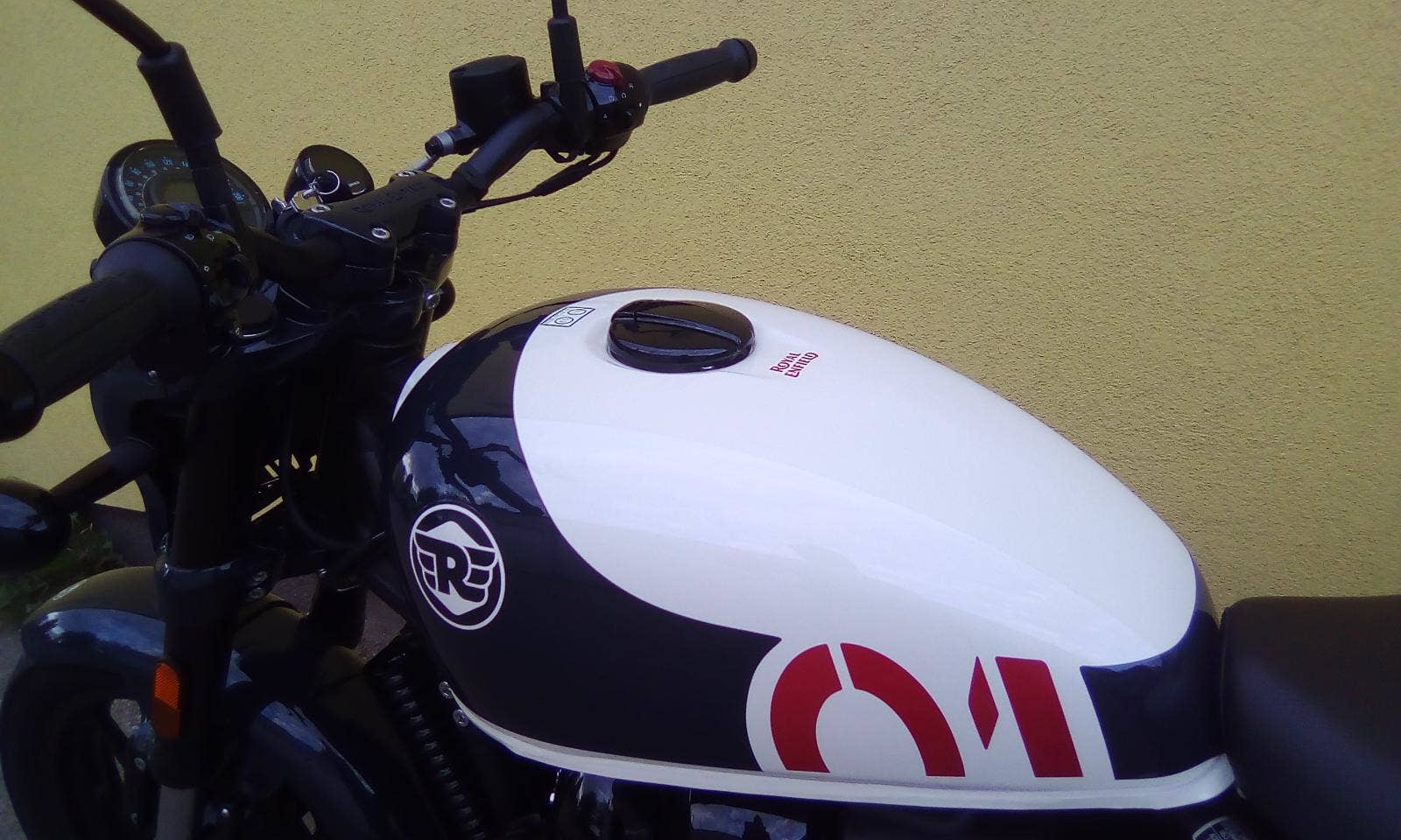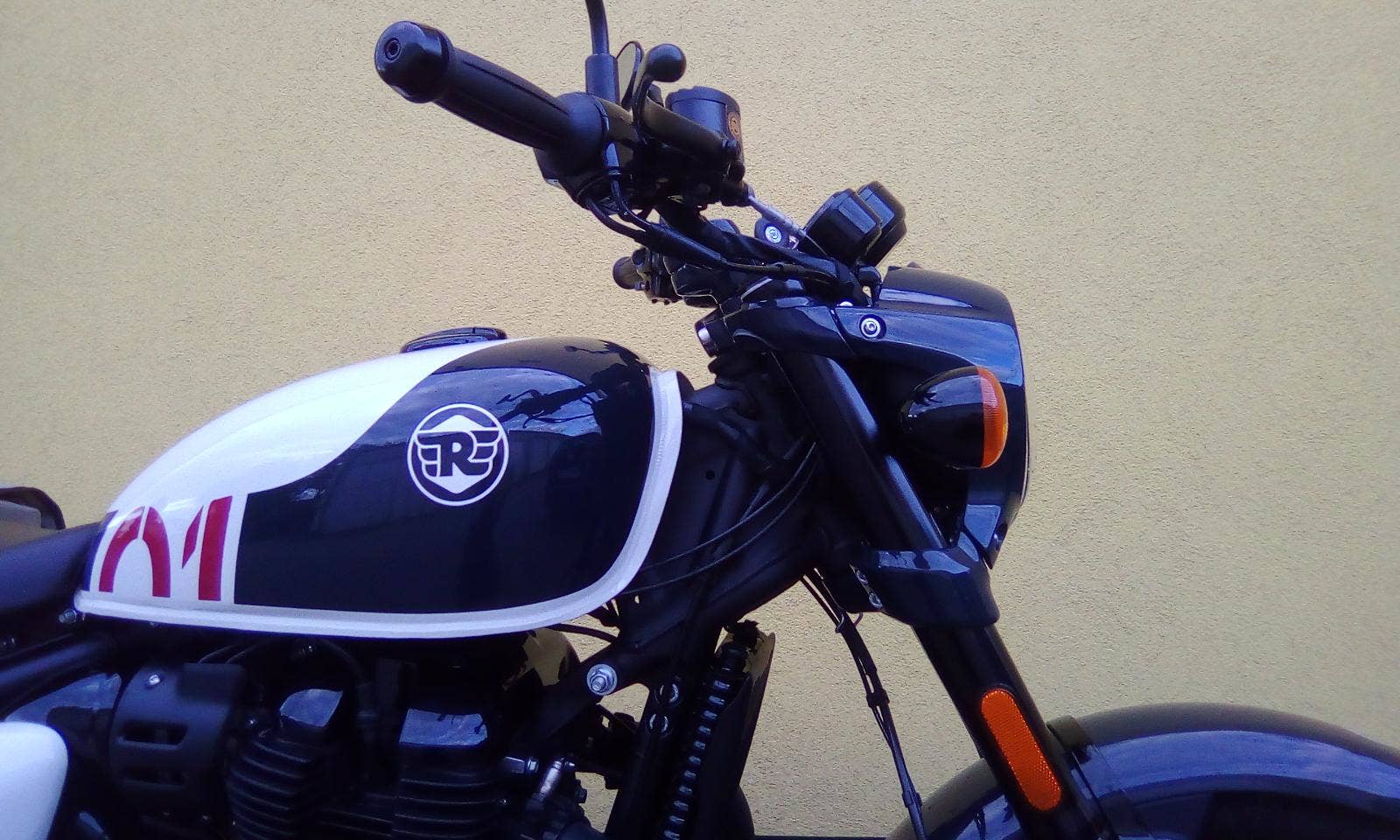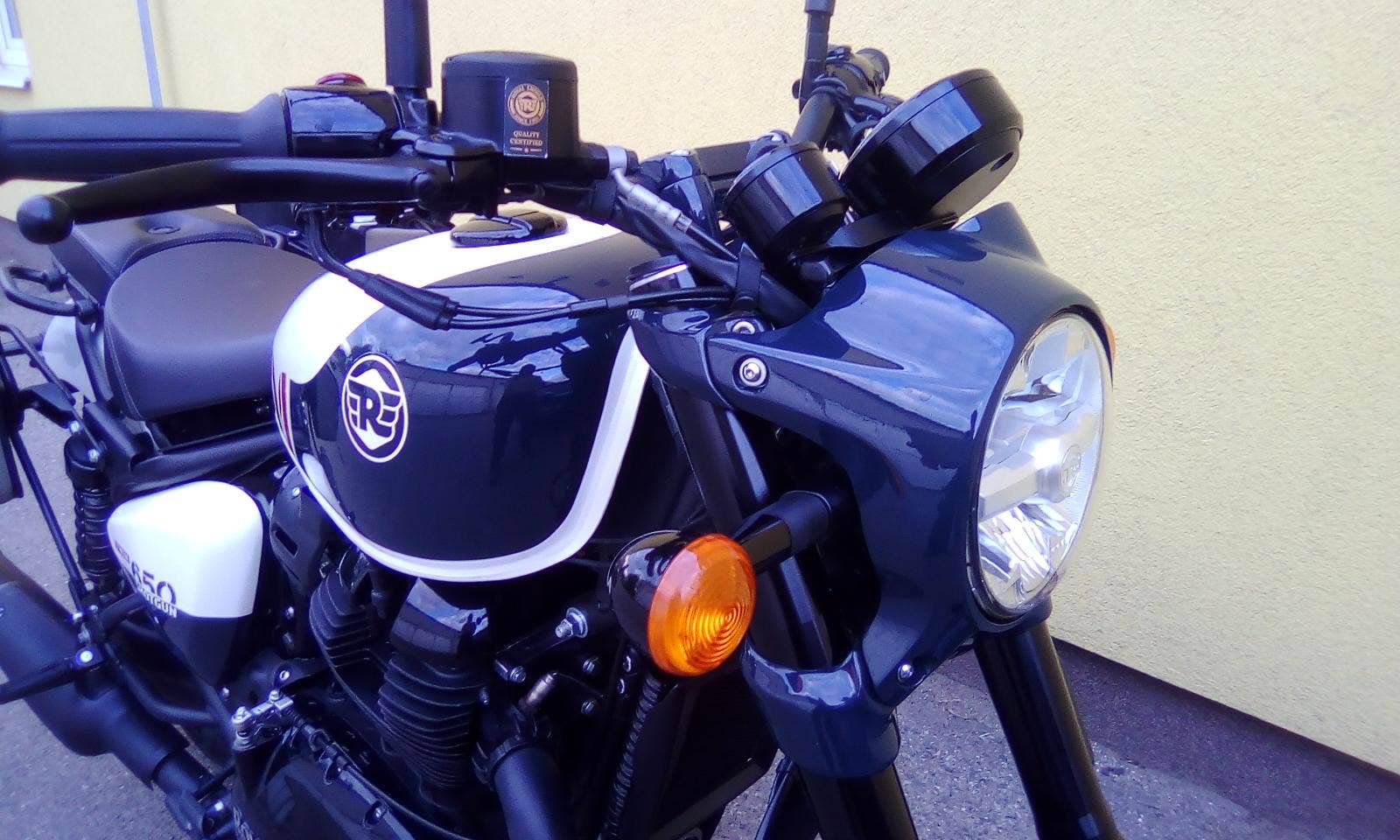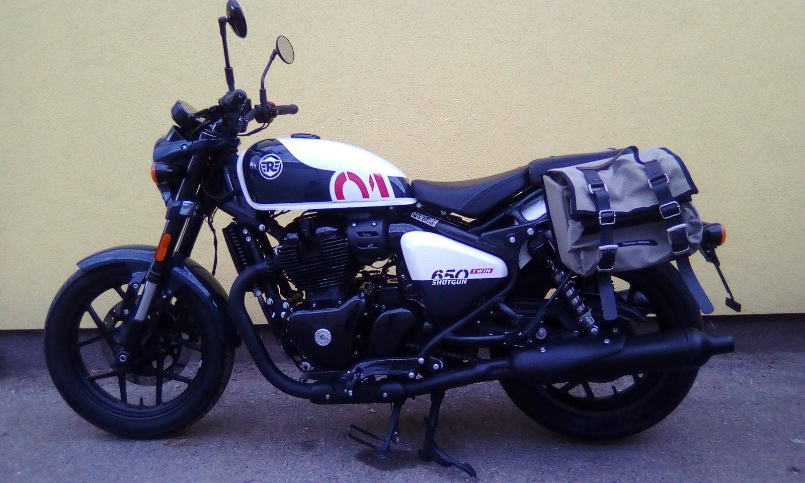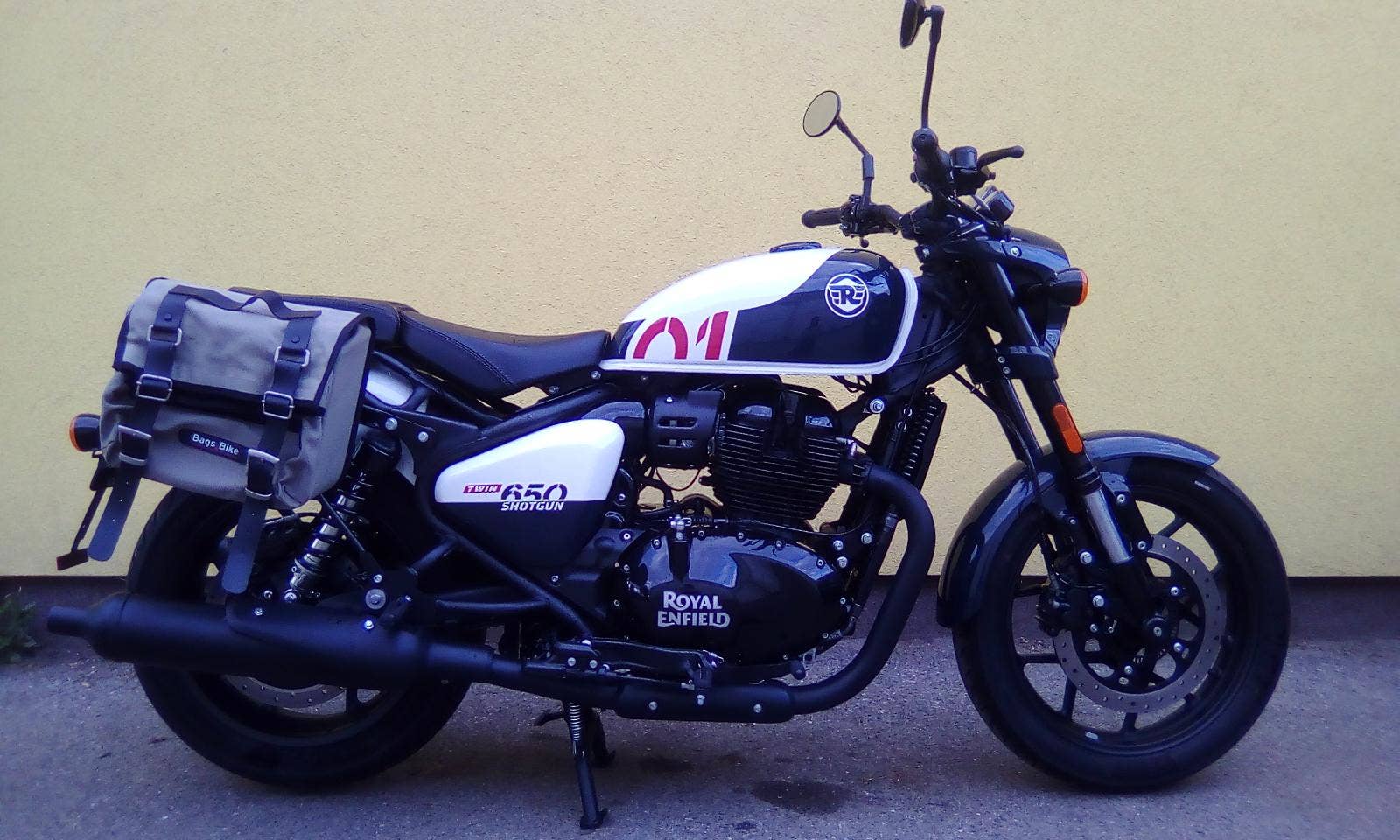 Royal Enfield 650 Shotgun ve stavu nového motocyklu, navíc asi v nejhezčí barevné kombinaci.