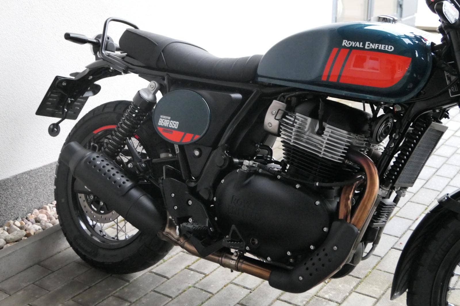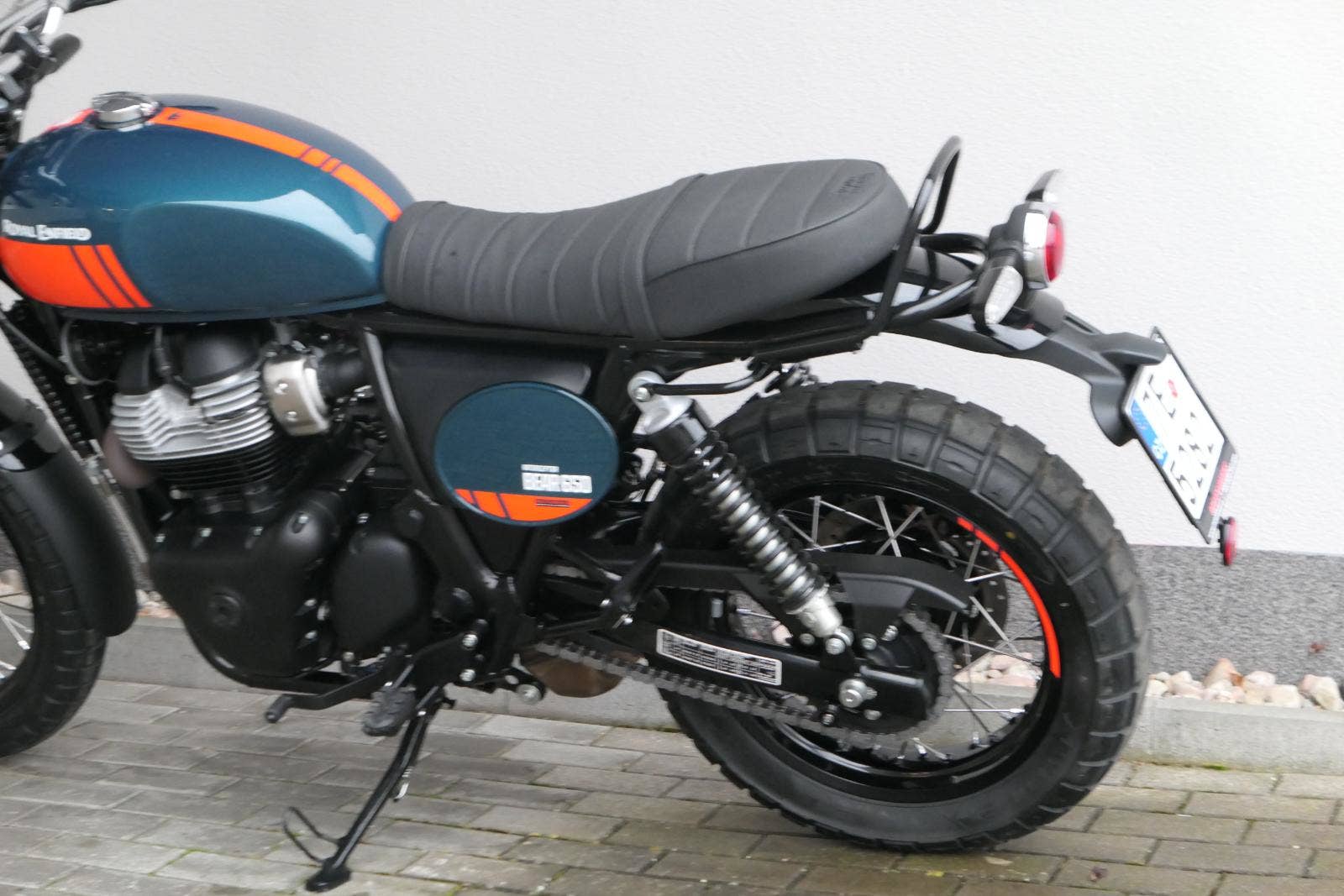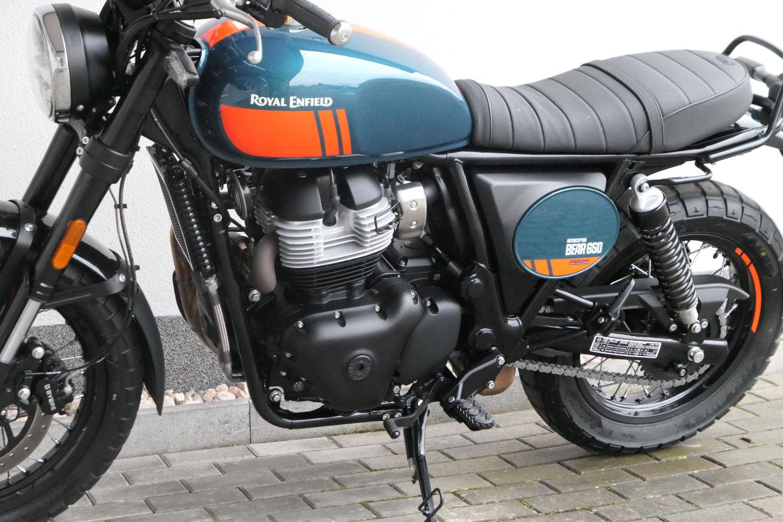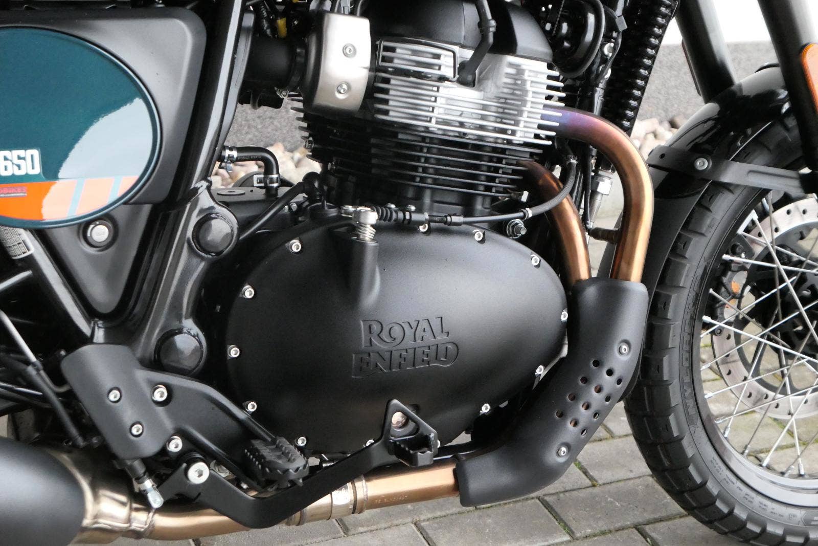 Napájení díky emocím a pohon zajišťuje ověřený paralelní dvouválec Royal Enfield o objemu 650 ccm. Je chráněn pláštěm ve vysoce odolné, prémiové černé úpravě, čímž získává robustní a účelné vzezření a je očividně dokonalým scramblerem.