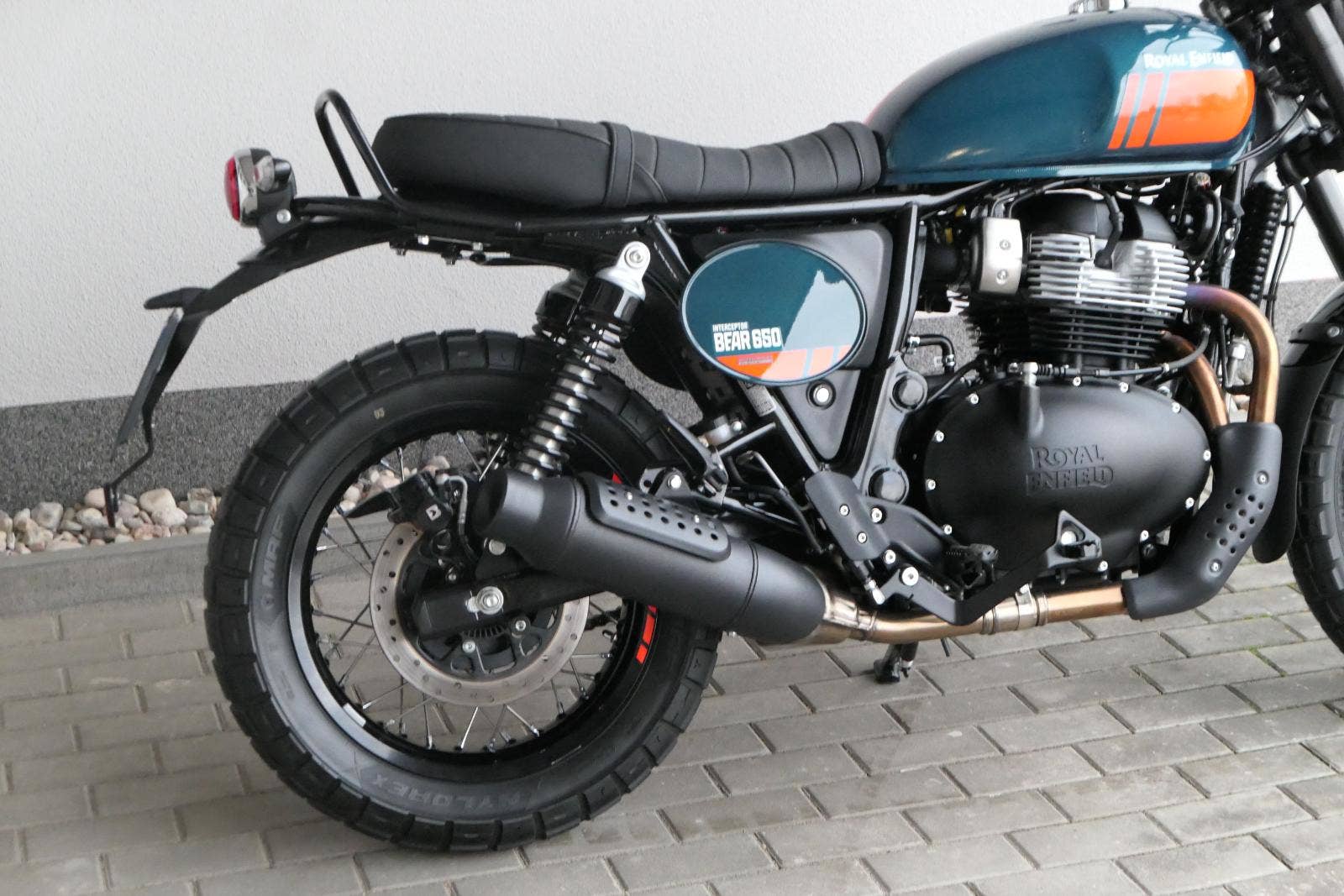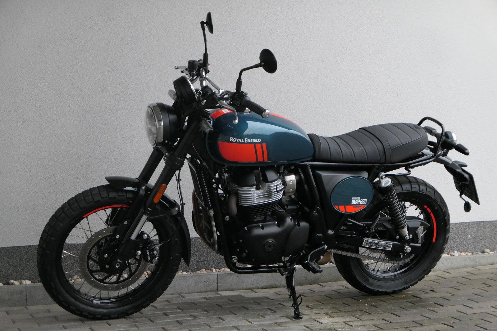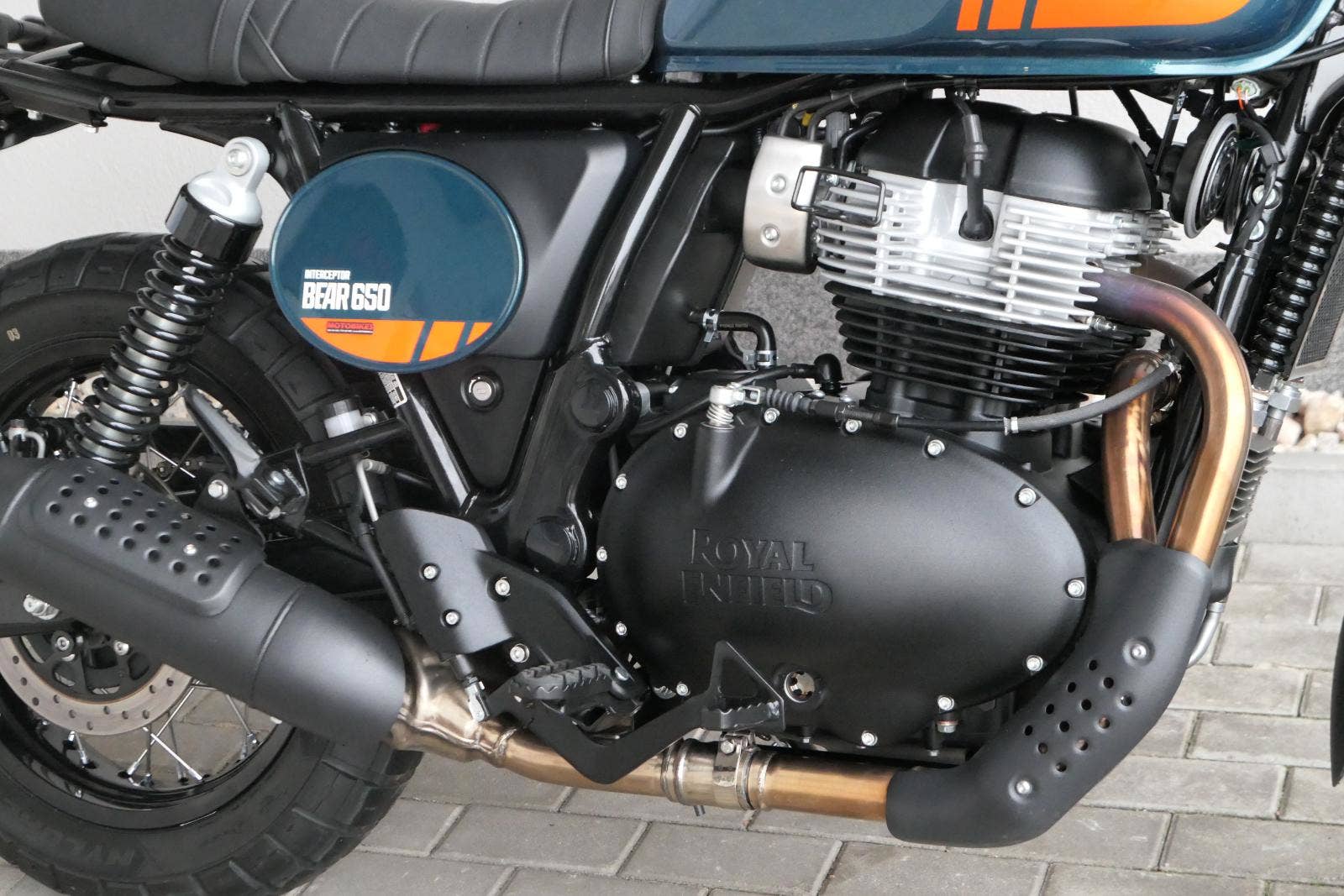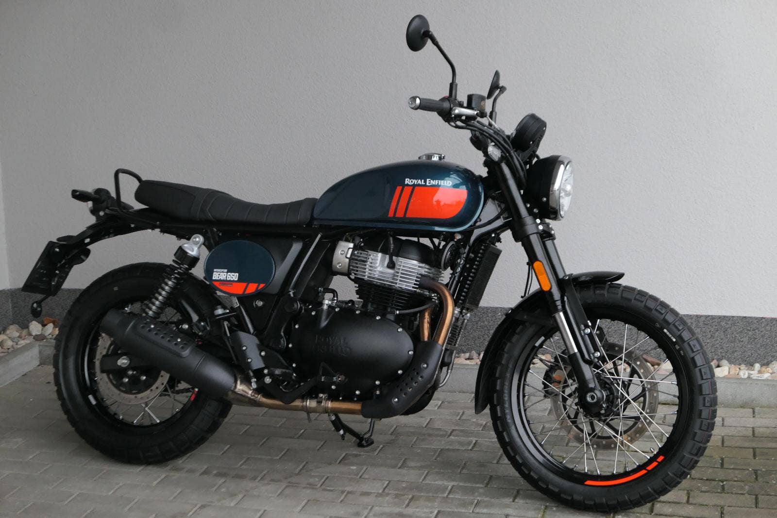 Napájení díky emocím a pohon zajišťuje ověřený paralelní dvouválec Royal Enfield o objemu 650 ccm. Je chráněn pláštěm ve vysoce odolné, prémiové černé úpravě, čímž získává robustní a účelné vzezření a je očividně dokonalým scramblerem.