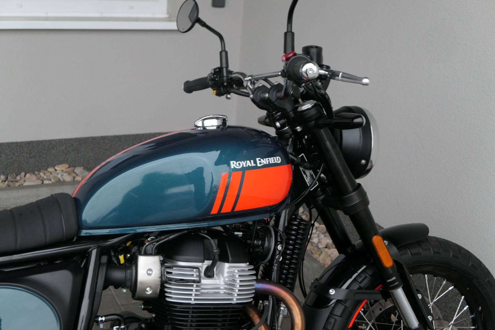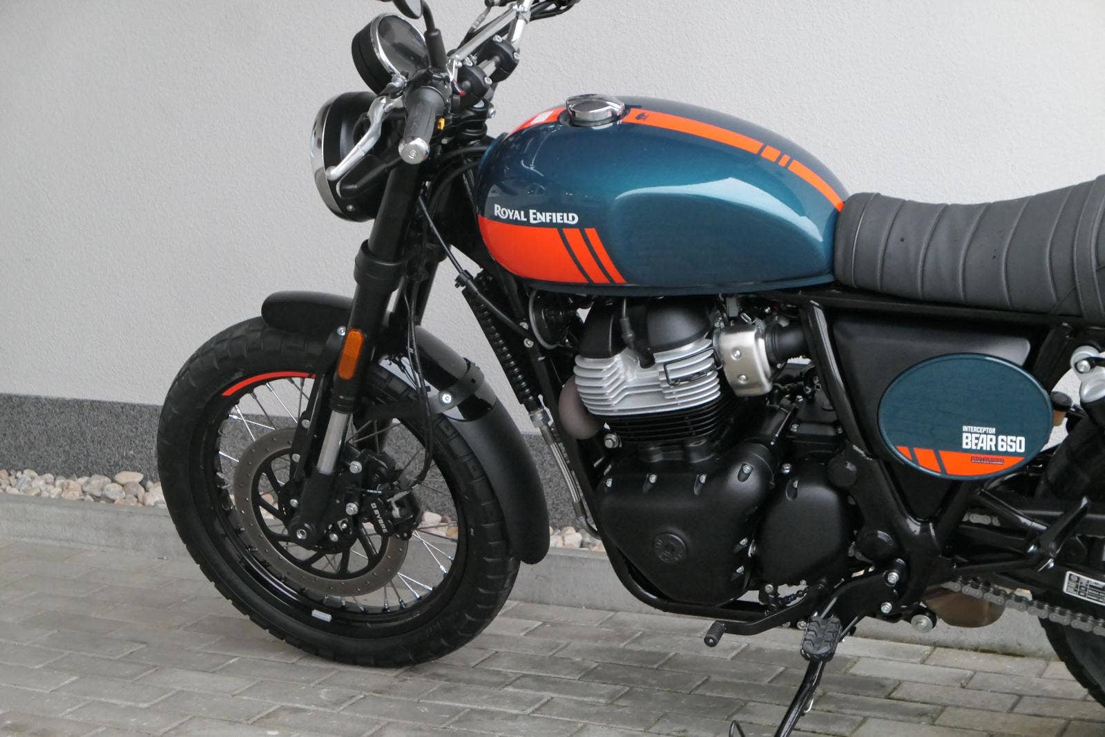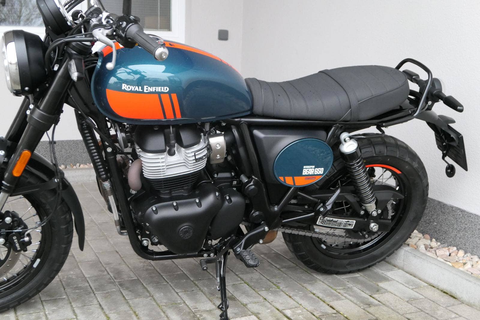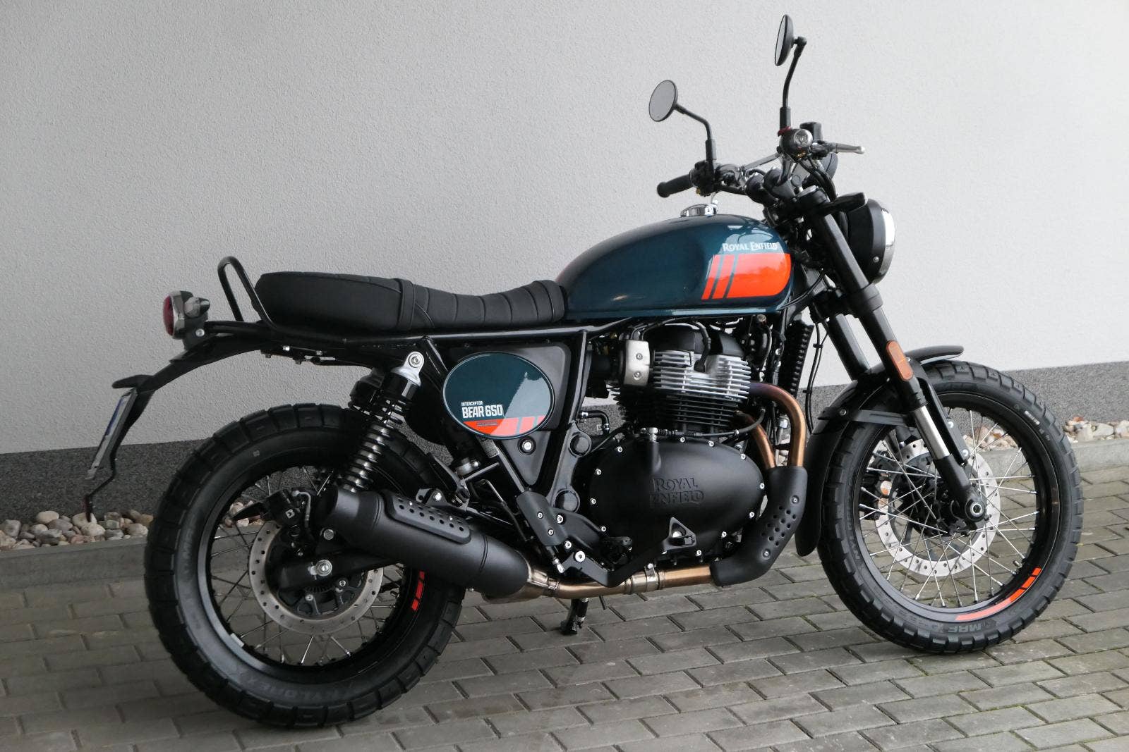 Napájení díky emocím a pohon zajišťuje ověřený paralelní dvouválec Royal Enfield o objemu 650 ccm. Je chráněn pláštěm ve vysoce odolné, prémiové černé úpravě, čímž získává robustní a účelné vzezření a je očividně dokonalým scramblerem.