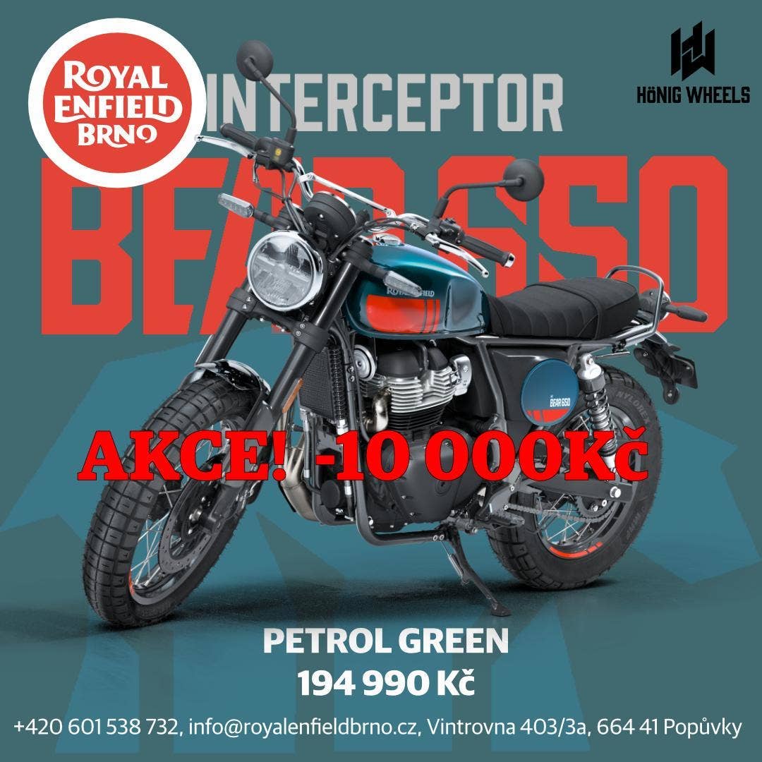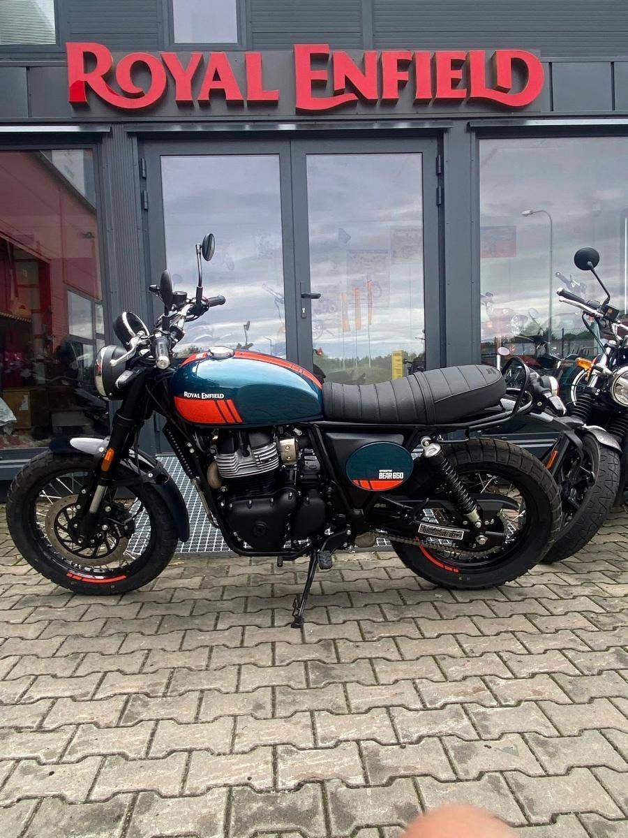 Bear 650 – stylový, strohý scrambler založený na Interceptoru a inspirovaný historickým vítězstvím Eddieho Muldera na Big Bear Run v roce 1960. Poháněný osvědčeným a opěvovaným paralelním dvouválcem Royal Enfield. Bear 650 kombinuje autentický styl scrambleru s drsným a nekompromisním duchem. Kombinace předního a zadního kola 19”/17” s pneumatikami pro nezpevněné povrchy, nové scrambler sedadlo, přepracovaný a rám a vydlice zvedly světlou výšku na 184 mm. To z něj dělají dokonalého společníka pro jezdce, kteří hledají oldschool styl, nejen na okresky.