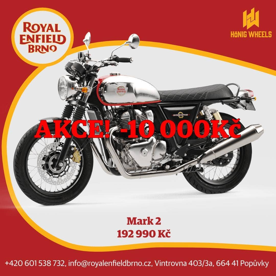 Doprodej skladových motocyklů Royal Enfield Interceptor 650 E5+ Mark 2.