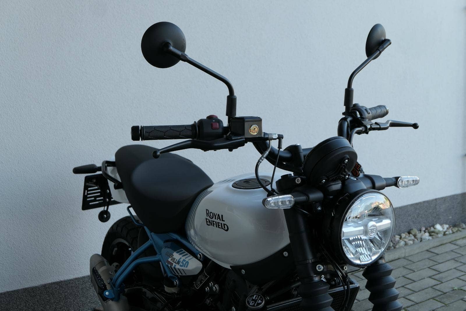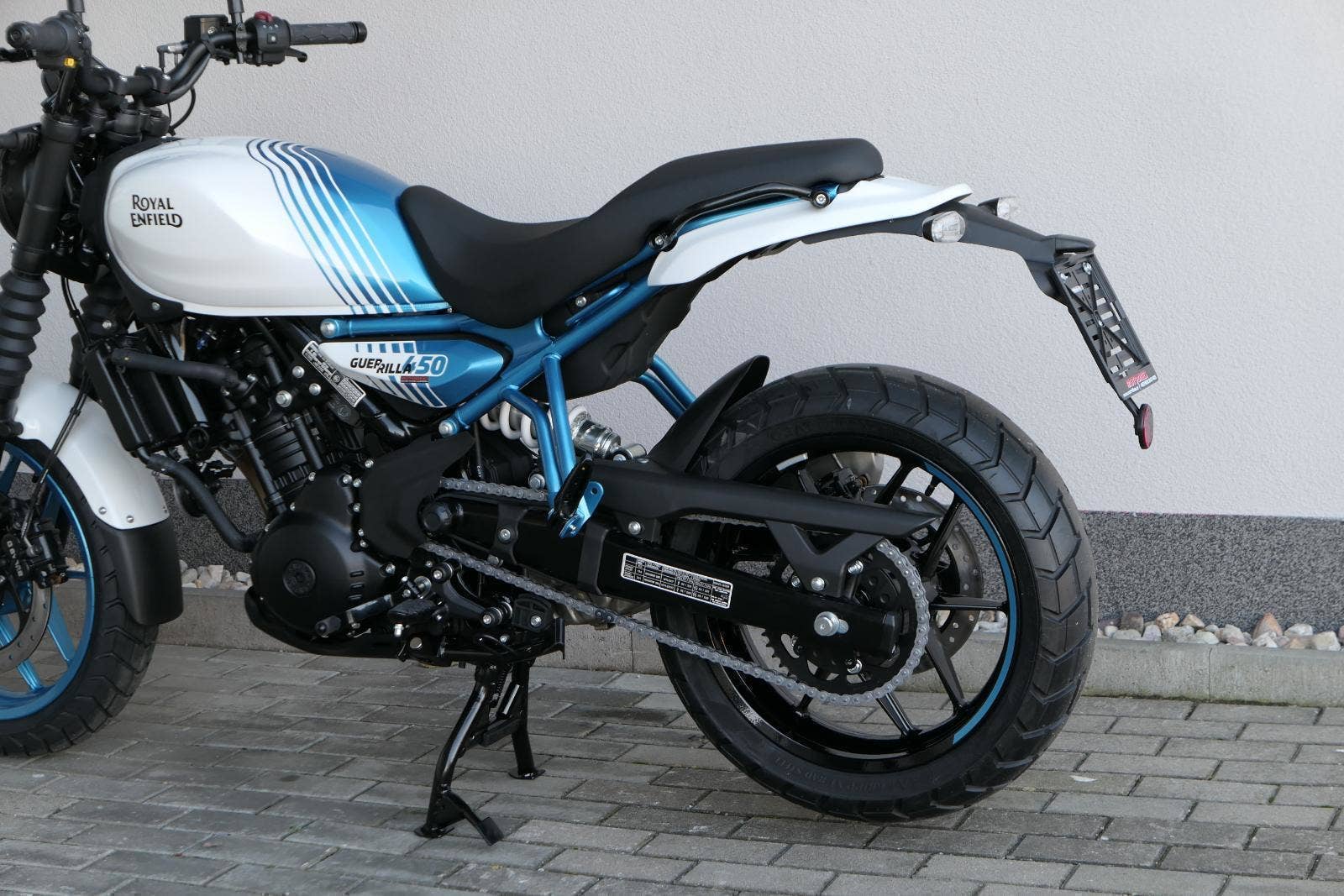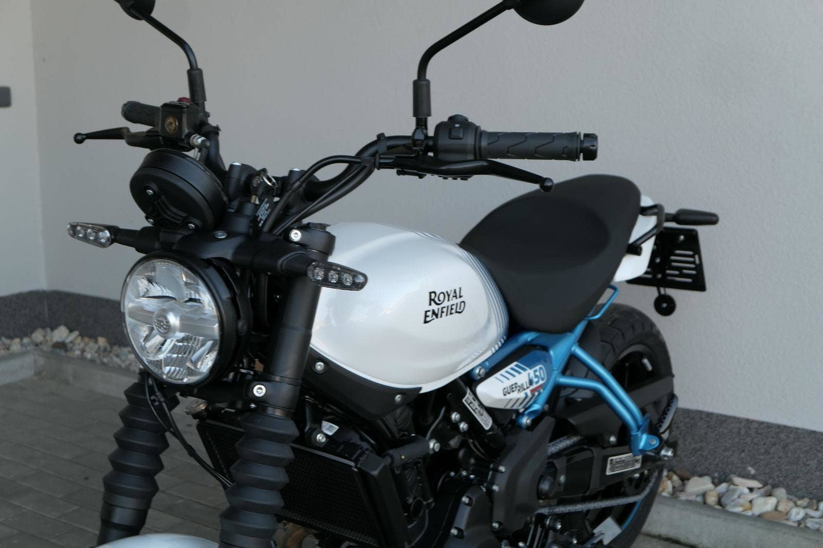 Royal Enfield Guerrilla 450 sdílí motor a technický základ s cestovním endurem Himalayan 450, stojí ale na malých silničních kolech a místo cestování míří na každodenní dojíždění, i na radovánky okolo komína.