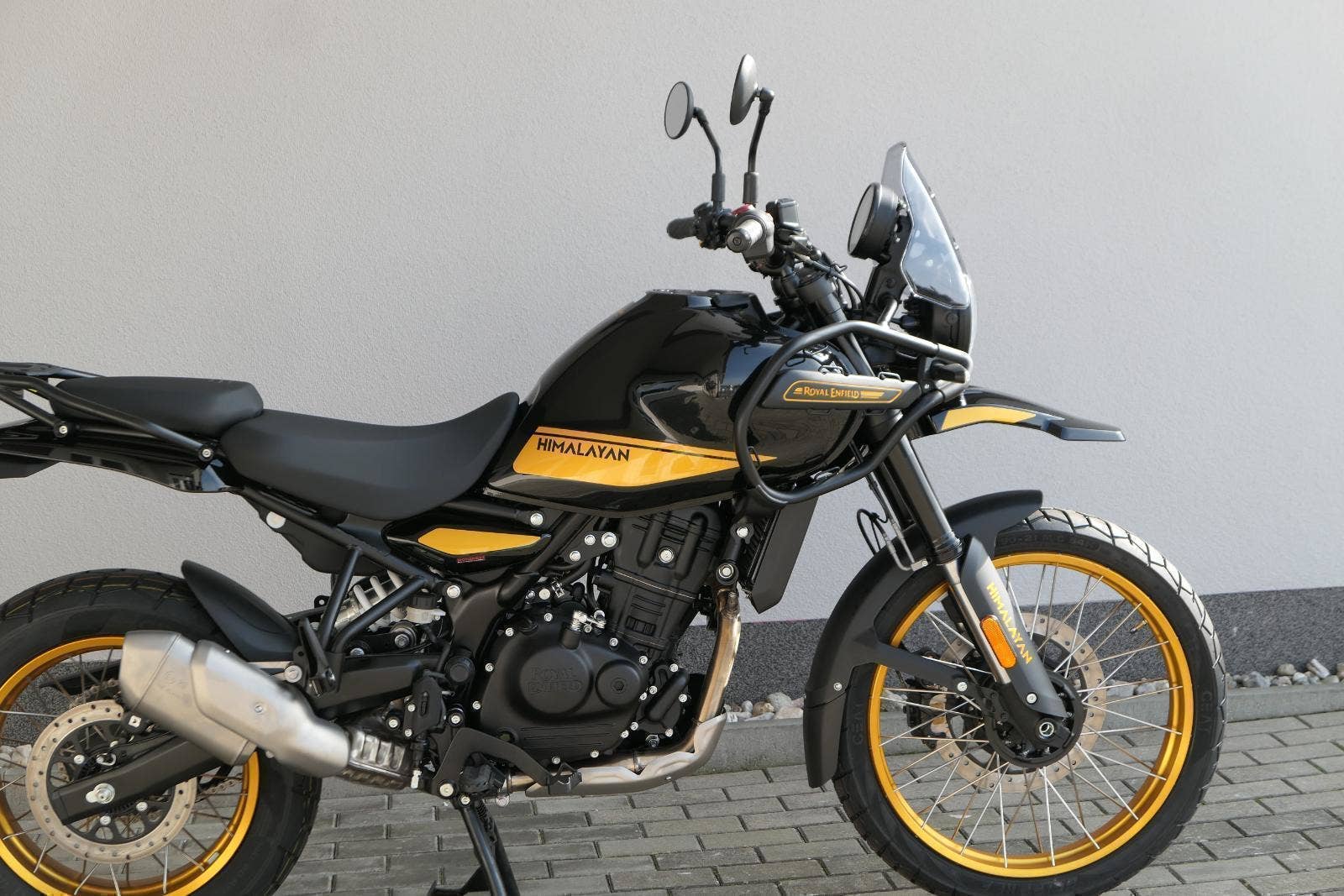 Nový Himalayan, který je evolučním skokem vpřed oproti svému původnímu modelu, jenž bořil mýty, je poháněn motorem Sherpa 450, prvním kapalinou chlazeným motorem společnosti Royal Enfield. Je připraven na dobrodružství s upside-down přední vidlicí a novými funkcemi, jako je Ride-by-Wire a navigační TFT displej TripperDash s plnou mapou.