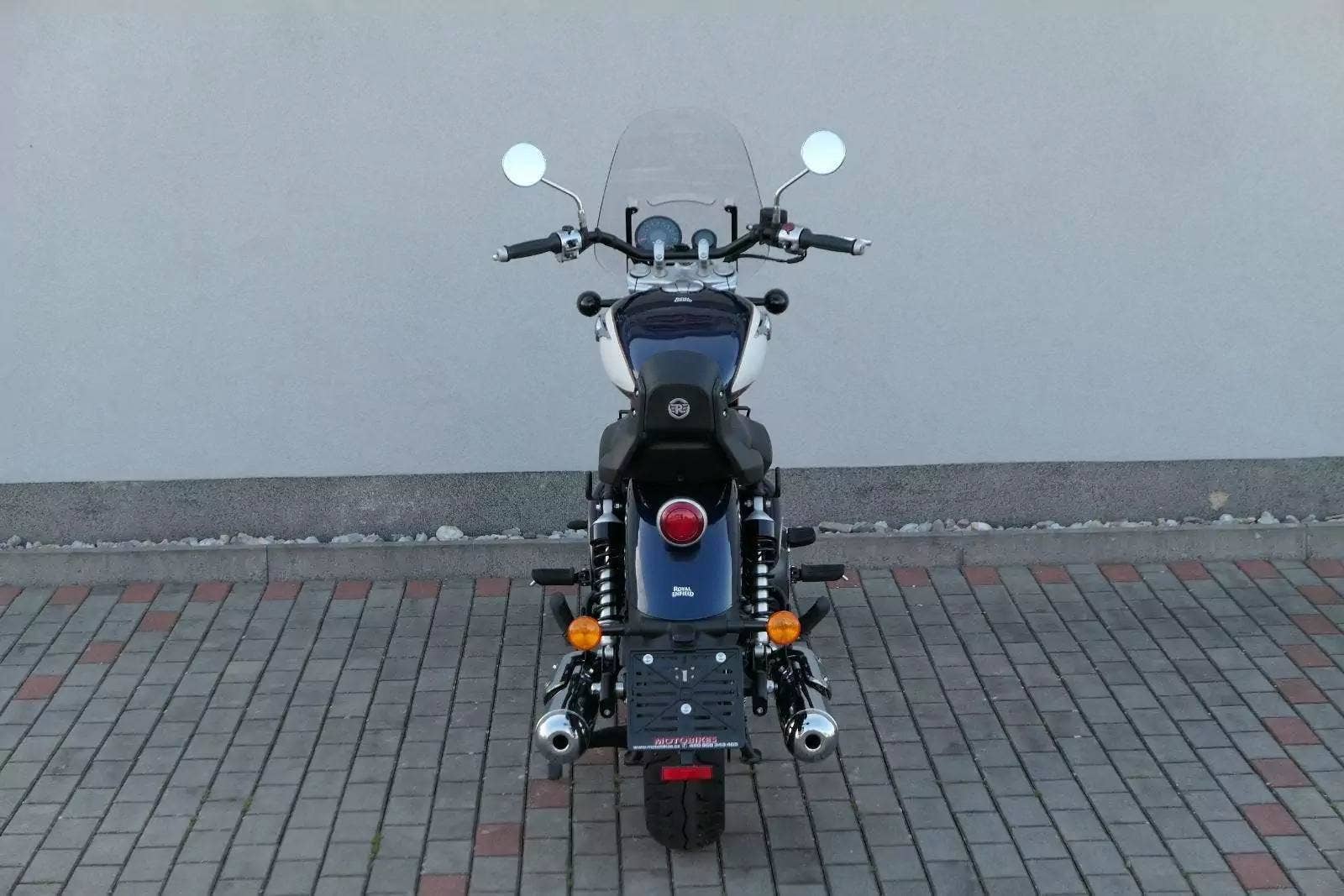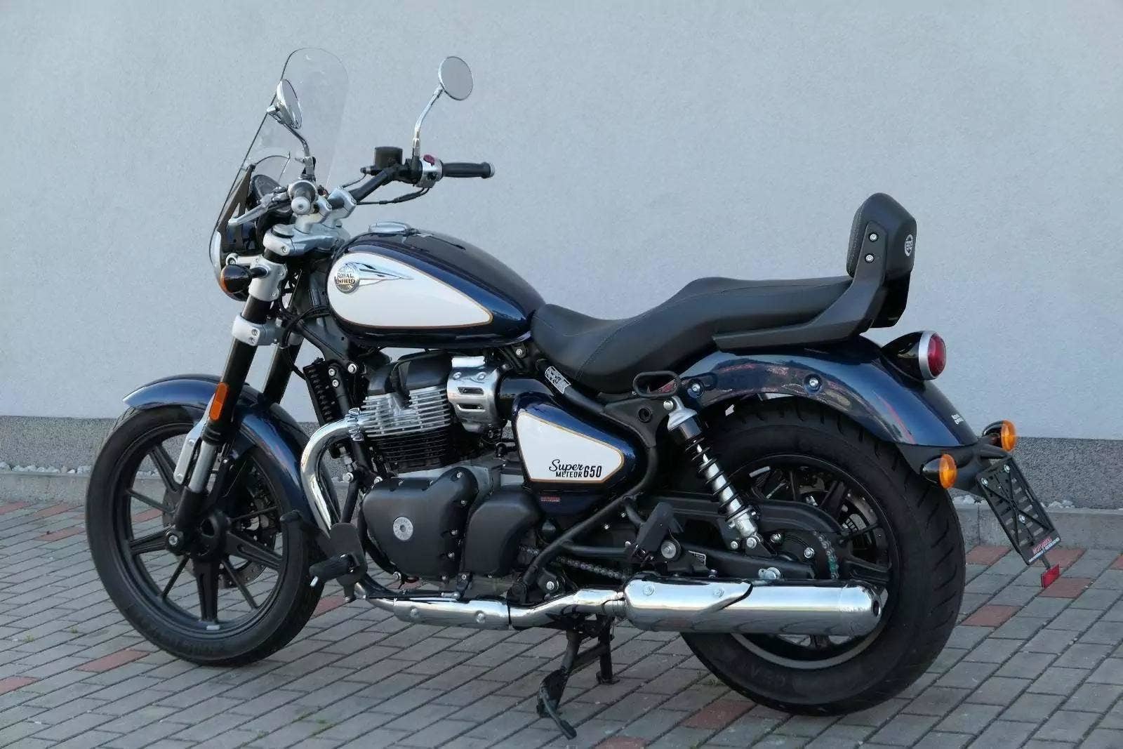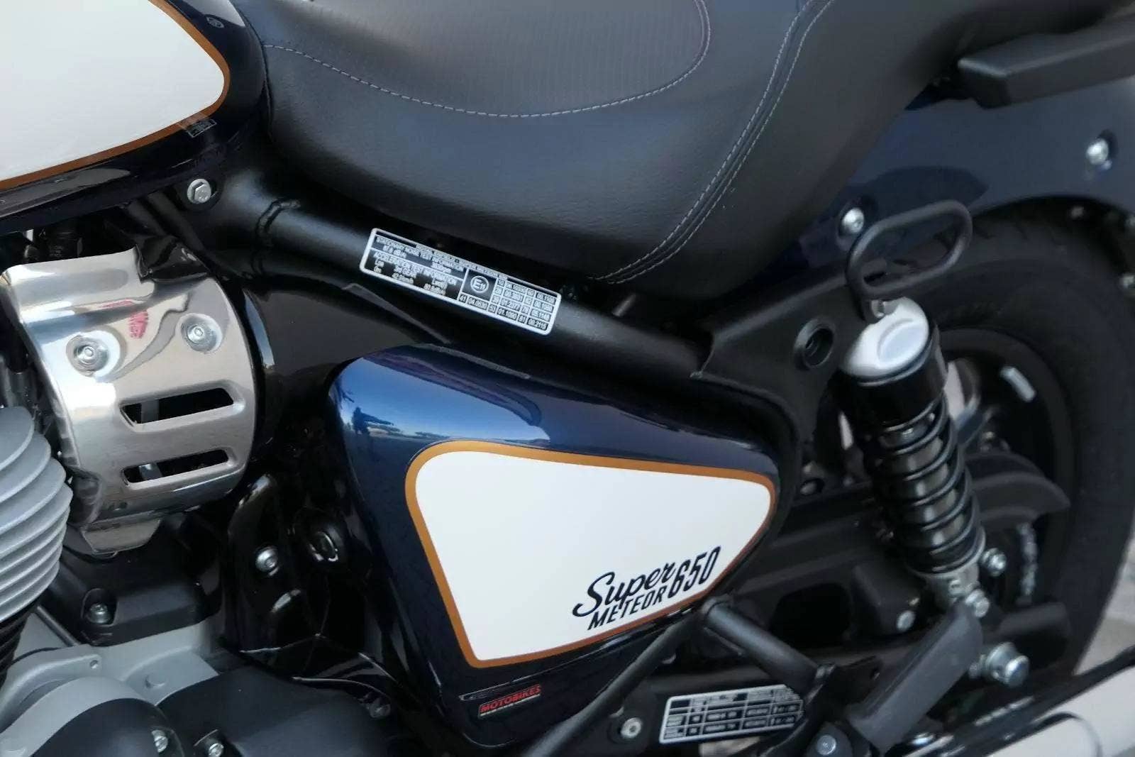 Super Meteor 650 byl vytvořen na základě našeho trvalého přesvědčení, že lidé se při cestování nesmějí nechat omezovat hodinami nebo kilometry. Hnací silou motocyklu Super Meteor 650 je náš ikonický řadový dvouválcový motor, který vyniká plynulým řazením převodových stupňů, silným zrychlením v nízkých otáčkách a hladkou a plynulou odezvou na plyn. Nízko posazené, široké sedlo a uvolněná řidičská pozice zajistí pohodlný zážitek z jízdy bez ohledu na to, kolik kilometrů máte za sebou a kolik je před vámi. Prostorná kapkovitá nádrž motocyklu Super Meteor 650 pojme až 15,7 litrů paliva, díky čemuž můžete i ty nejdelší jízdy absolvovat bez přerušení. Obrácené vidlice na předním odpružení přinášejí naprostou jistotu a kontrolu na otevřených dálnicích, přeplněných ulicích a všech dalších cestách. Zcela nový přední světlomet je kombinací retro estetiky a moderního LED světla snižující spotřebu energie a zlepšující viditelnost, ať už máte namířeno kamkoli. Na digitálně analogovém přístrojovém panelu s retro nádechem a plovoucí LCD obrazovkou a vestavěnou navigací Tripper máte k dispozici všechny potřebné informace po celý den. Nápadná litá kola s bezdušovými pneumatikami zajišťují, že nic nenaruší vaše plány, a širší zadní pneumatika umožňuje lepší trakci a stabilitu i při nejvyšších rychlostech.