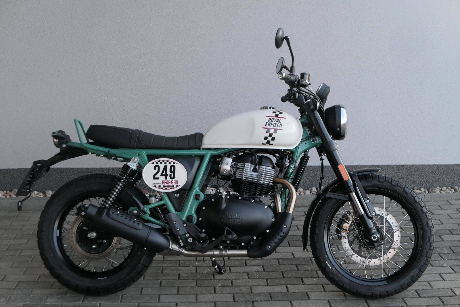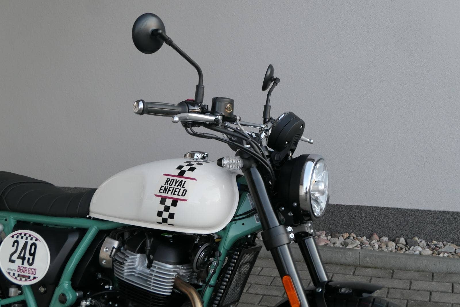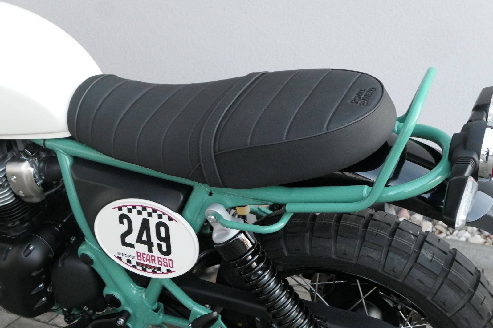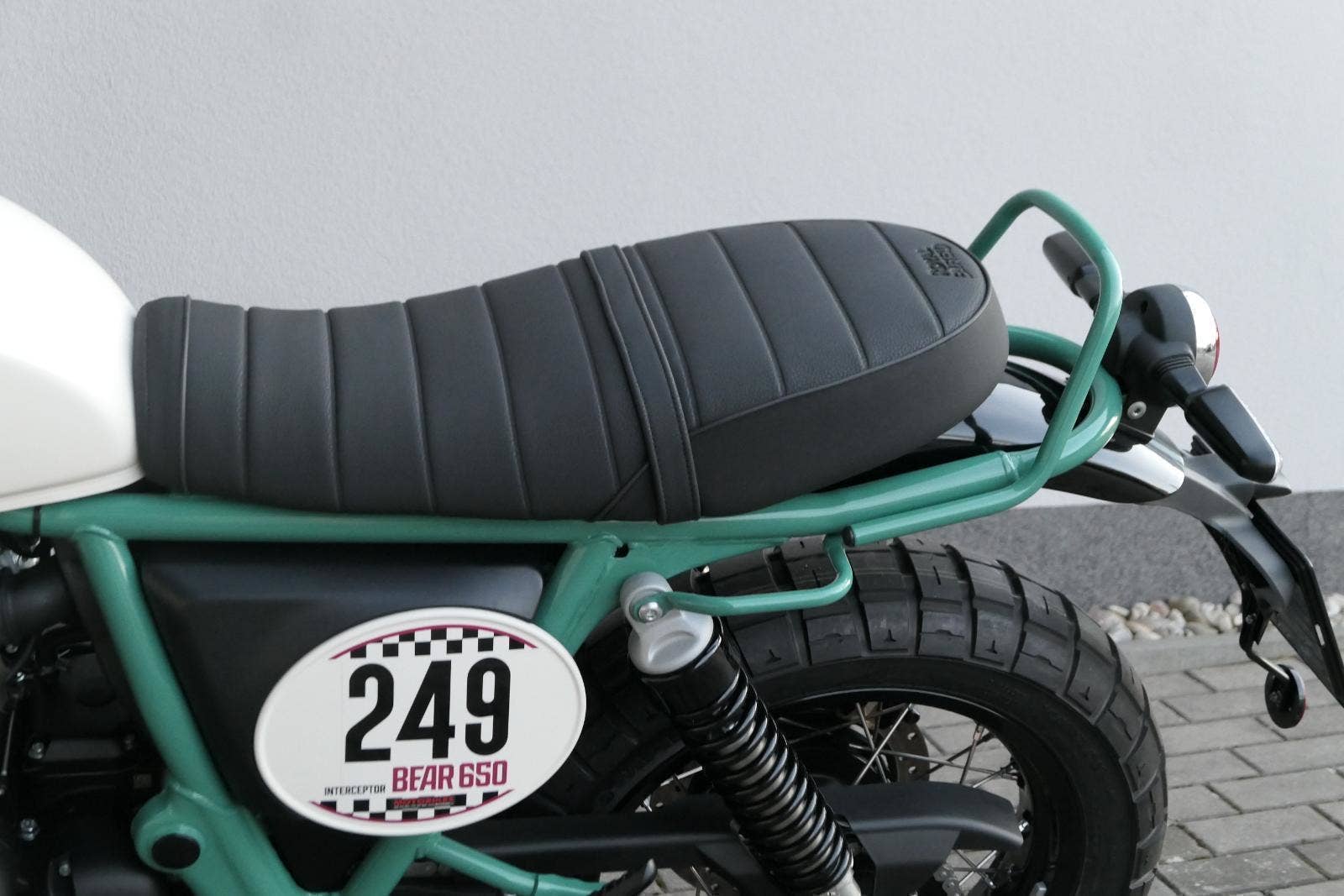 Silniční scramler s duší šedesátých let. Bear 650 ztělesňuje ducha šestnáctiletého nováčka, který se v roce 1960 seřadil vedle stovek spálených nadějí, všichni hladoví po vítězství v nejdivočejším závodě, jaký kdy kalifornská poušť znala - Big Bear Run.