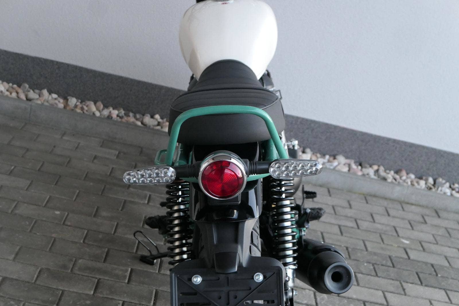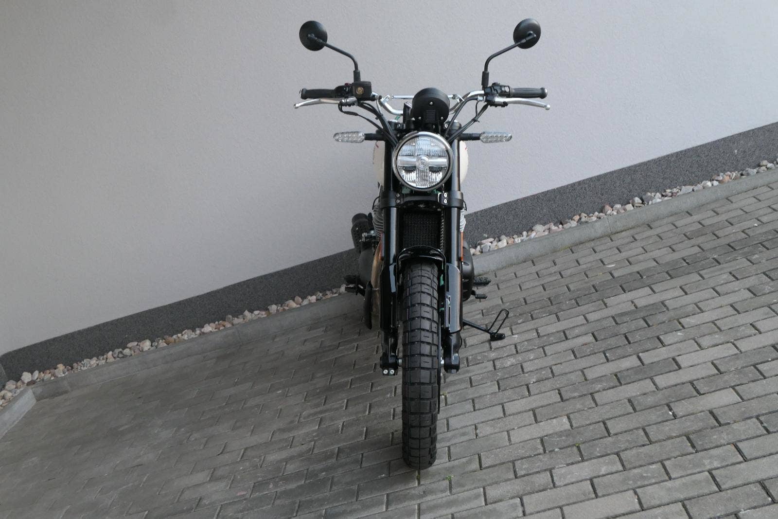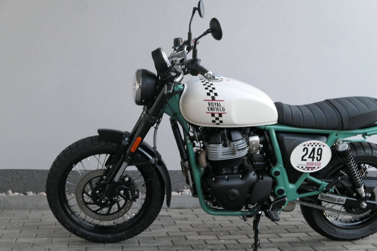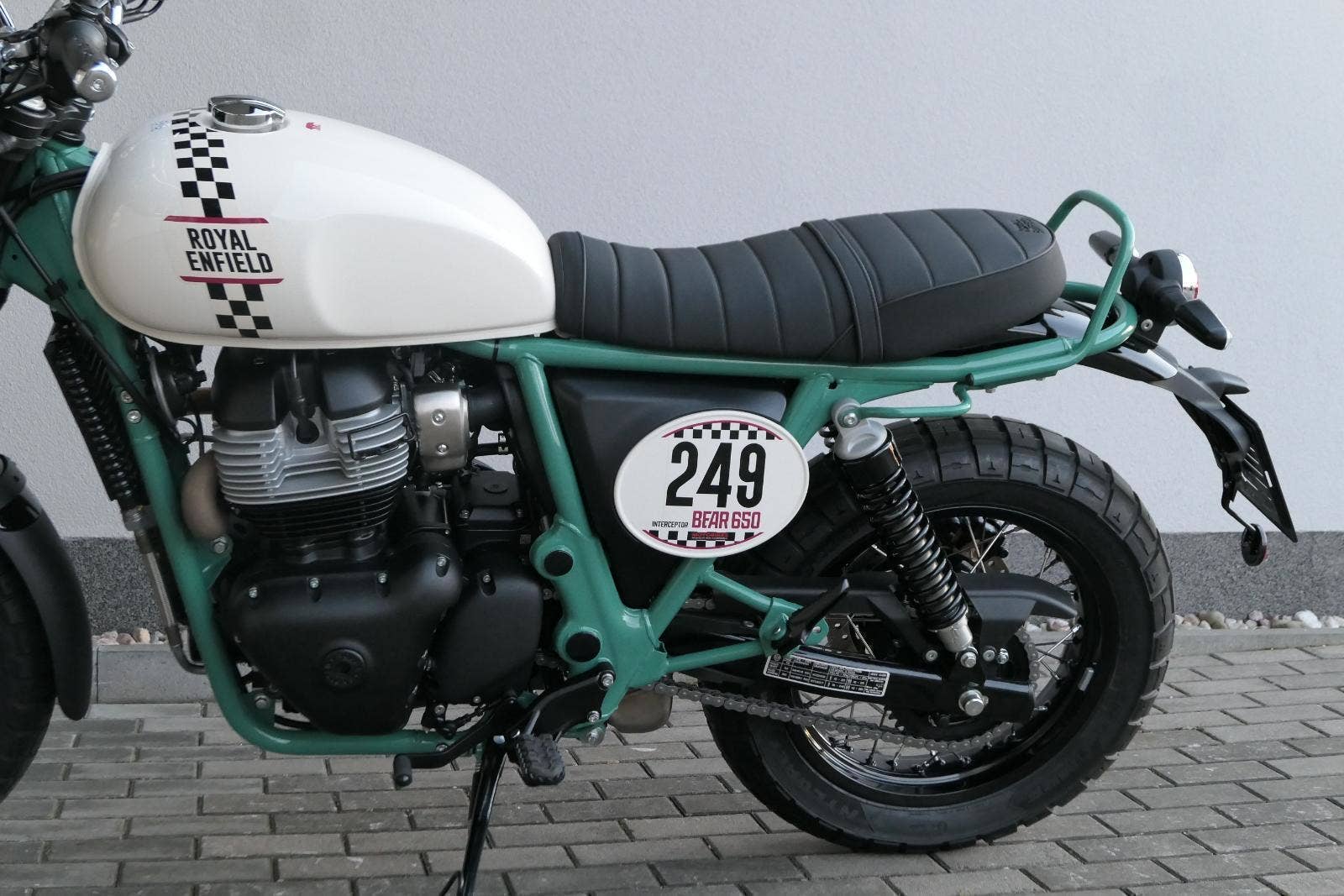 Silniční scramler s duší šedesátých let. Bear 650 ztělesňuje ducha šestnáctiletého nováčka, který se v roce 1960 seřadil vedle stovek spálených nadějí, všichni hladoví po vítězství v nejdivočejším závodě, jaký kdy kalifornská poušť znala - Big Bear Run.