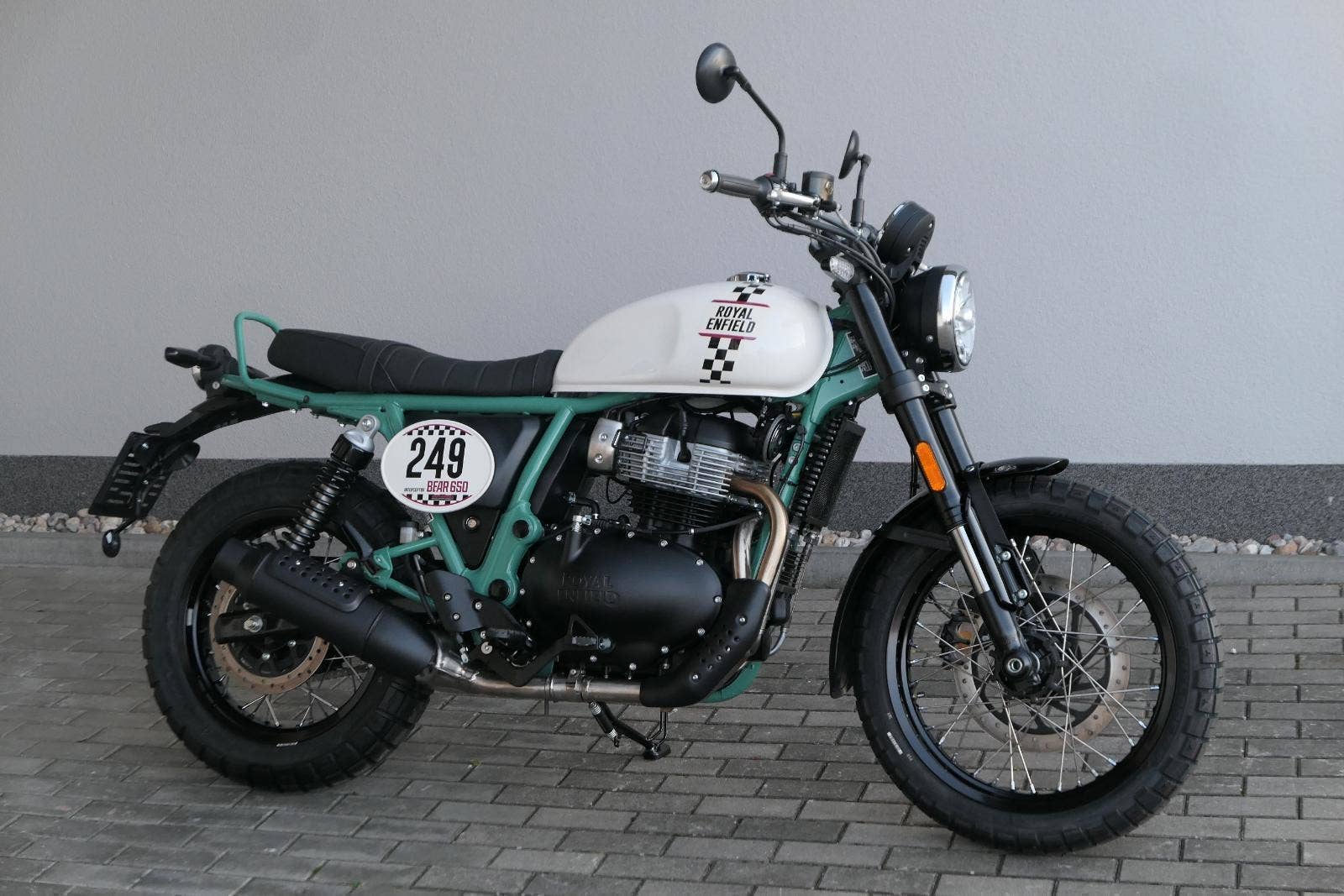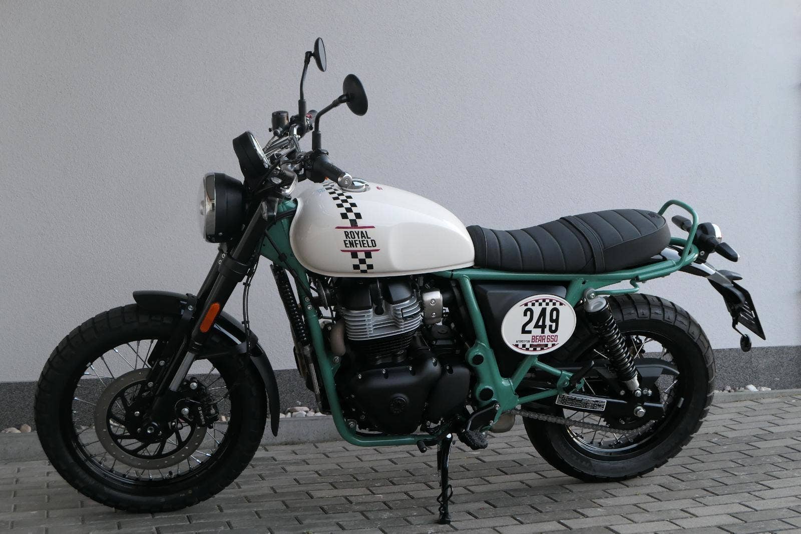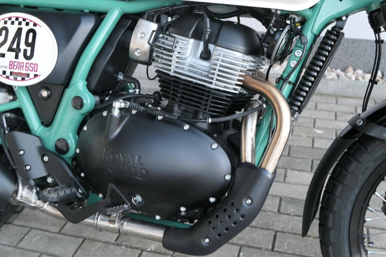 Napájení díky emocím a pohon zajišťuje ověřený paralelní dvouválec Royal Enfield o objemu 650 ccm. Je chráněn pláštěm ve vysoce odolné, prémiové černé úpravě, čímž získává robustní a účelné vzezření a je očividně dokonalým scramblerem.