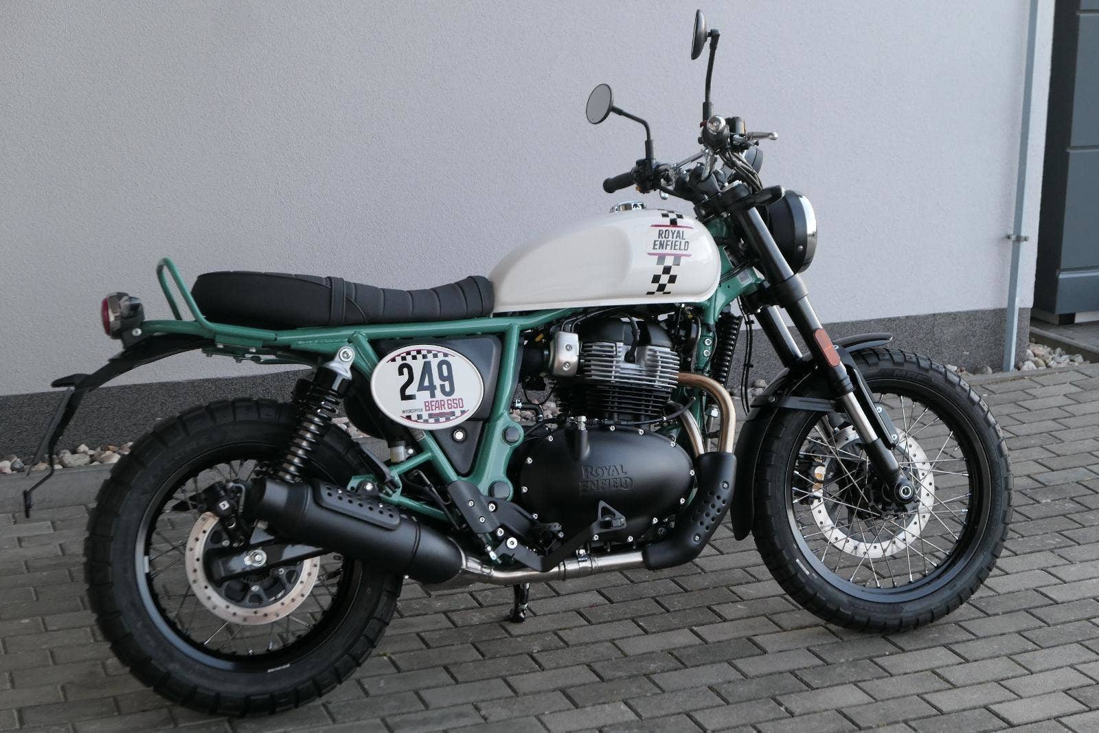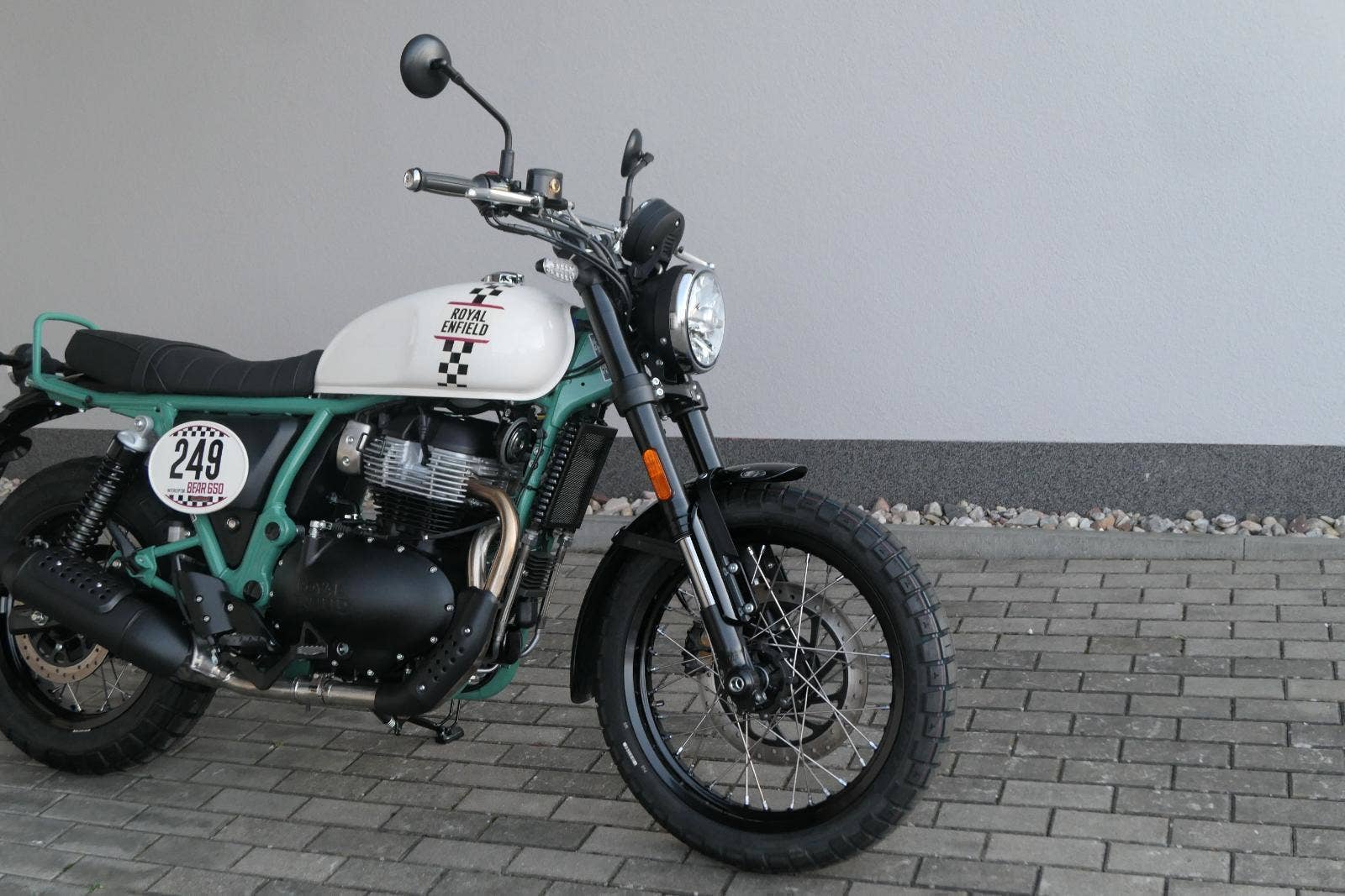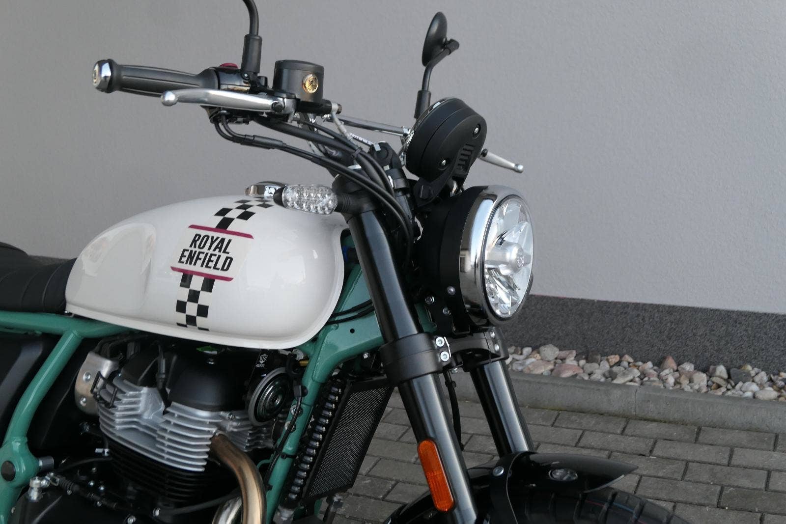 Napájení díky emocím a pohon zajišťuje ověřený paralelní dvouválec Royal Enfield o objemu 650 ccm. Je chráněn pláštěm ve vysoce odolné, prémiové černé úpravě, čímž získává robustní a účelné vzezření a je očividně dokonalým scramblerem.