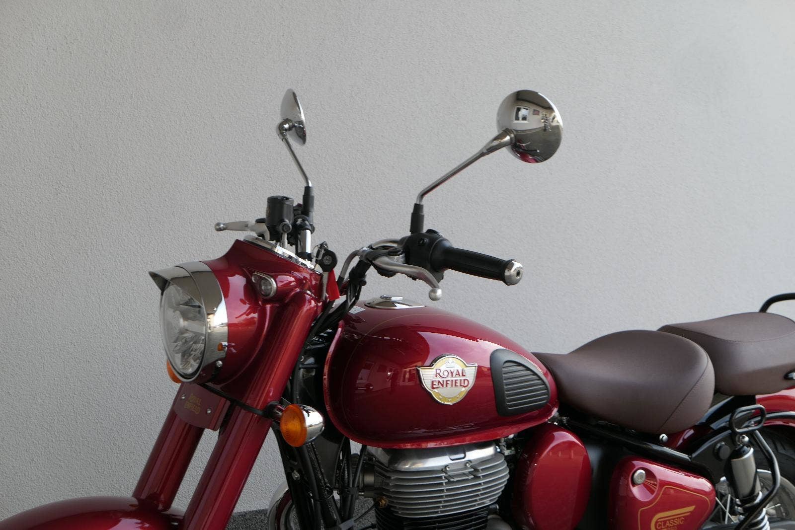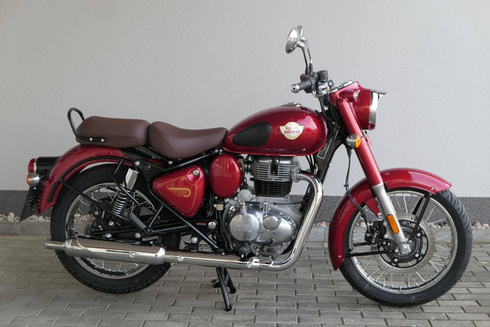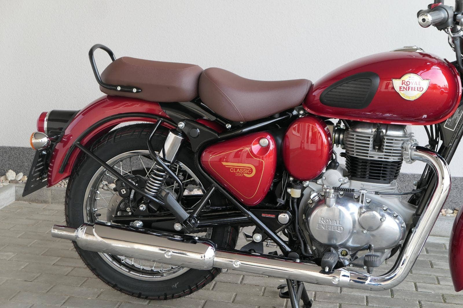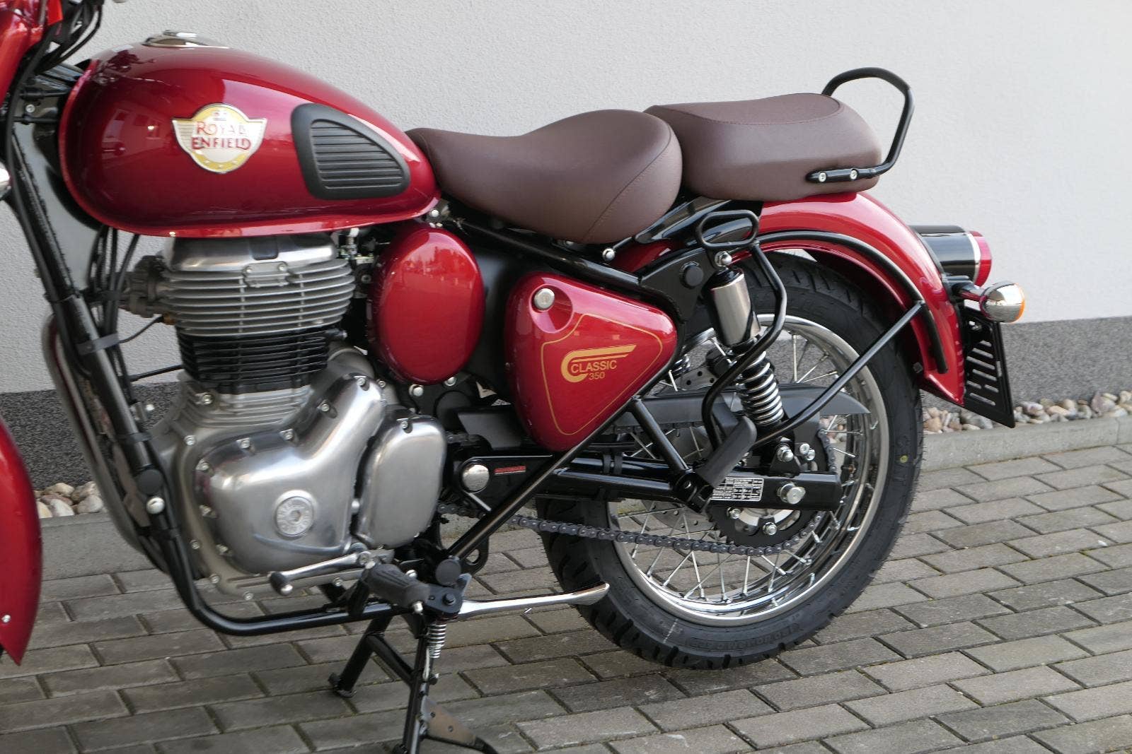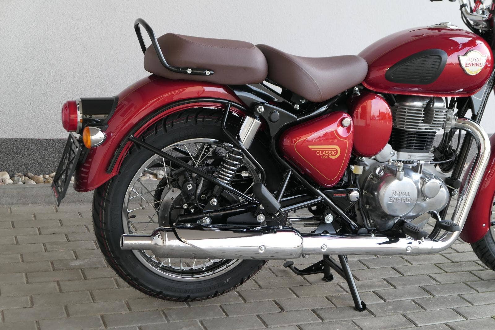 Ústředním prvkem nového Classic 350 je zcela nové srdce, které bije do jedinečného rytmu Royal Enfield. Ve spojení s novým rámem se dvěma spodními trubkami, který jezdí pevně a věrně, solidní a spolehlivou kvalitou konstrukce, je Classic vaším spojencem, ať už je váš cíl kdekoliv. Vzpřímená jízdní poloha dává jezdci Classicu vynikající vzhled na silnici, zatímco brzdy s větším průměrem zvyšují jeho brzdnou sílu. Ale silnější neznamená jen schopný a odolný, Classic je obdařen také pohodlím, s vylepšeným širším sedlem, které zpříjemňuje jízdu.