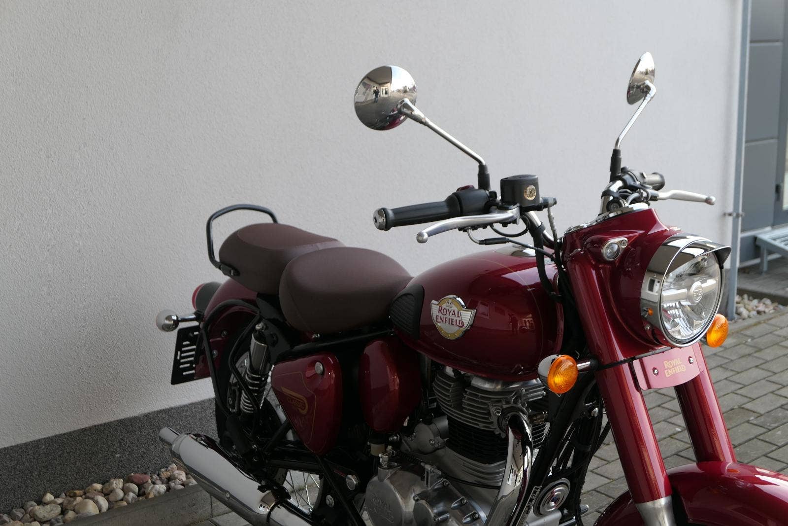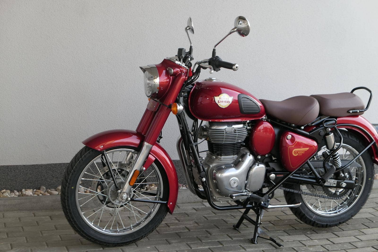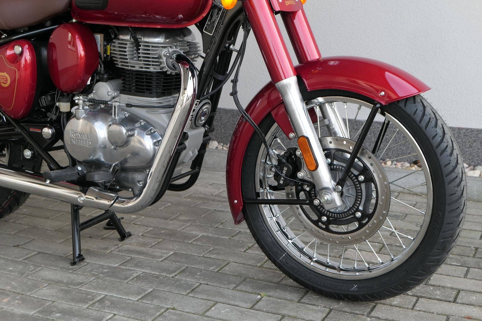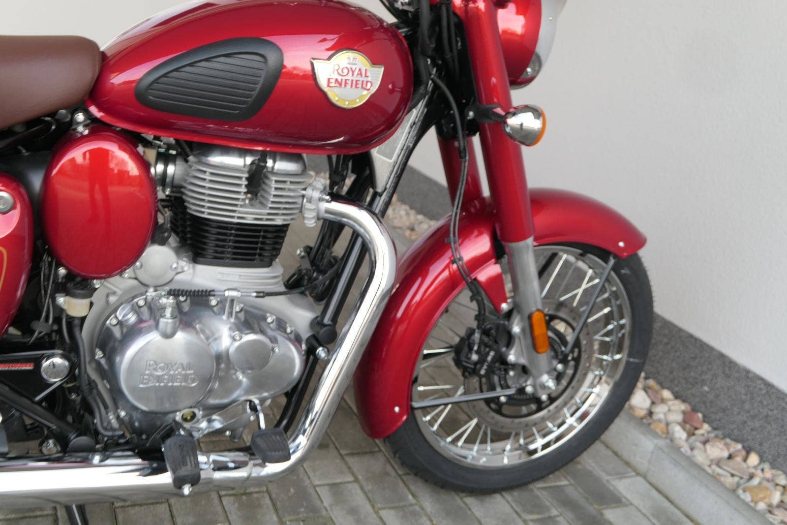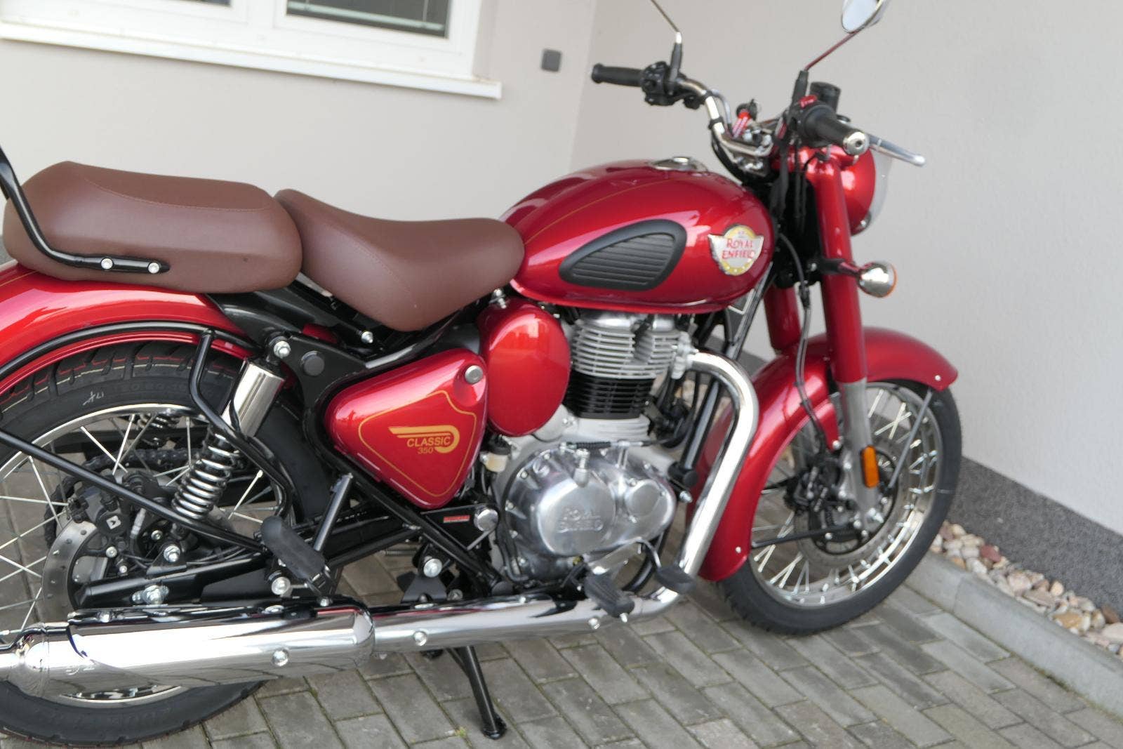 Ústředním prvkem nového Classic 350 je zcela nové srdce, které bije do jedinečného rytmu Royal Enfield. Ve spojení s novým rámem se dvěma spodními trubkami, který jezdí pevně a věrně, solidní a spolehlivou kvalitou konstrukce, je Classic vaším spojencem, ať už je váš cíl kdekoliv. Vzpřímená jízdní poloha dává jezdci Classicu vynikající vzhled na silnici, zatímco brzdy s větším průměrem zvyšují jeho brzdnou sílu. Ale silnější neznamená jen schopný a odolný, Classic je obdařen také pohodlím, s vylepšeným širším sedlem, které zpříjemňuje jízdu.