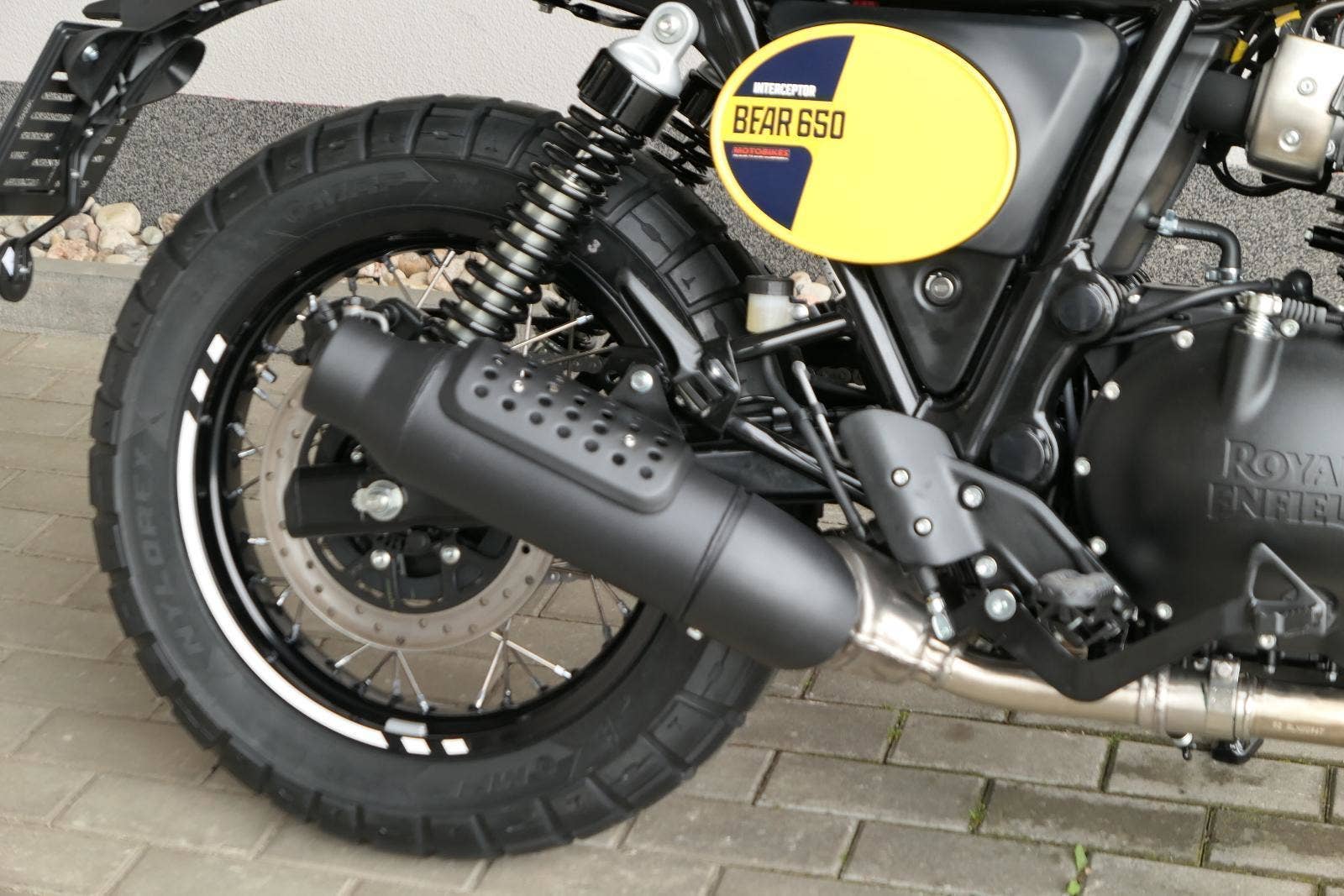 Napájení díky emocím a pohon zajišťuje ověřený paralelní dvouválec Royal Enfield o objemu 650 ccm. Je chráněn pláštěm ve vysoce odolné, prémiové černé úpravě, čímž získává robustní a účelné vzezření a je očividně dokonalým scramblerem.