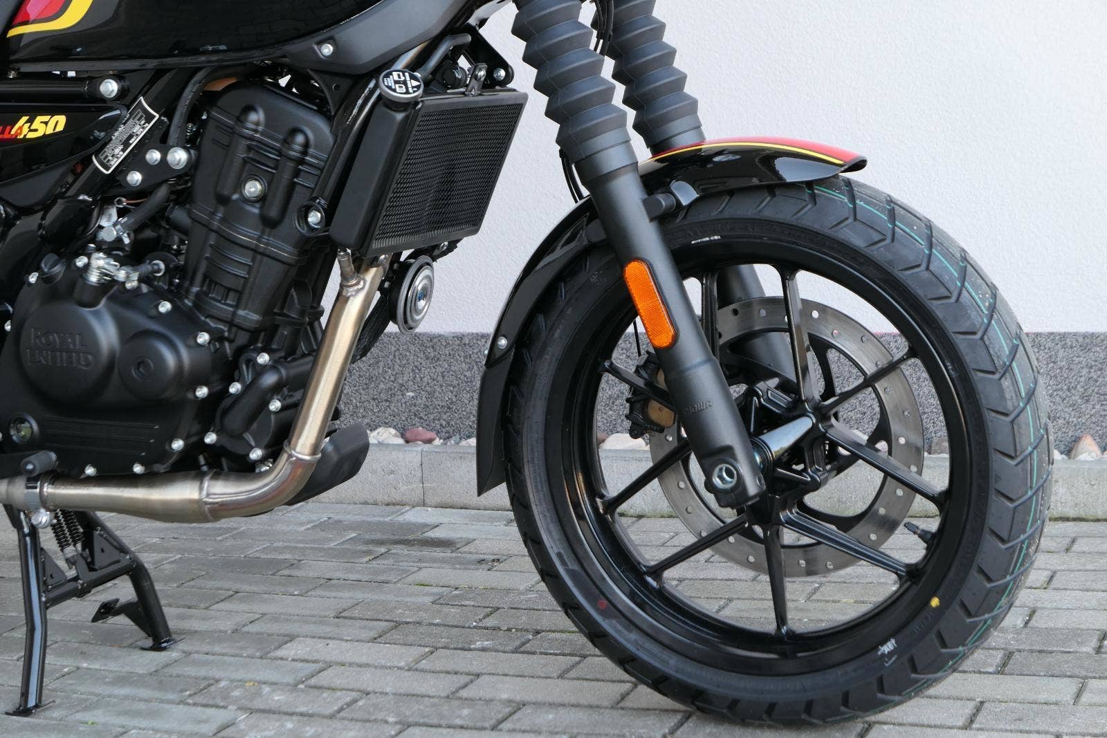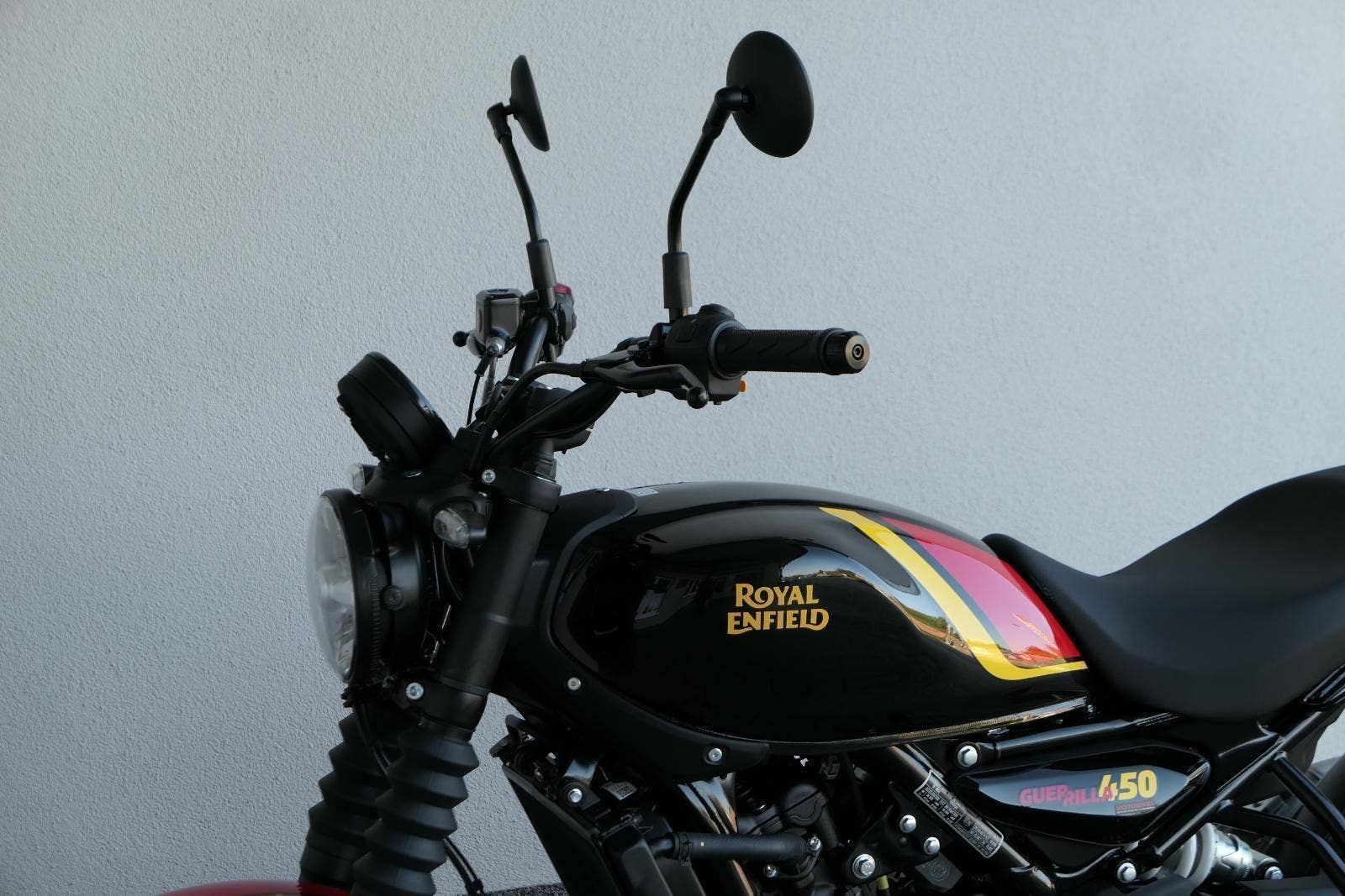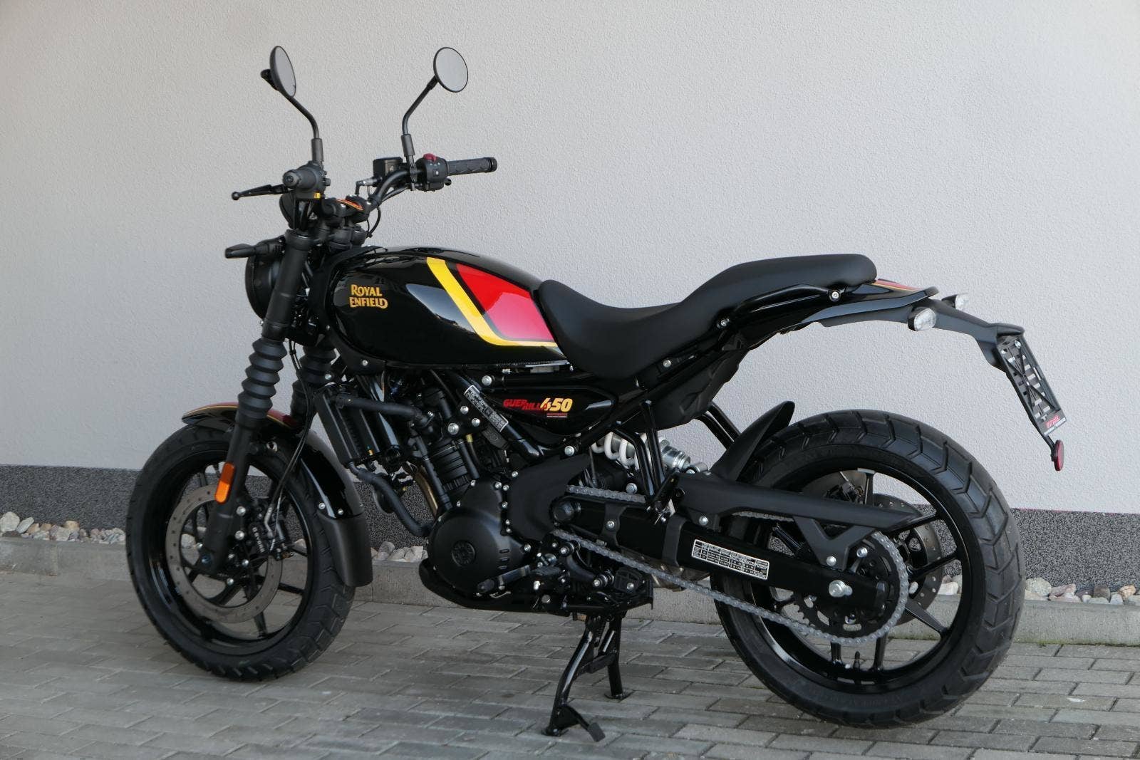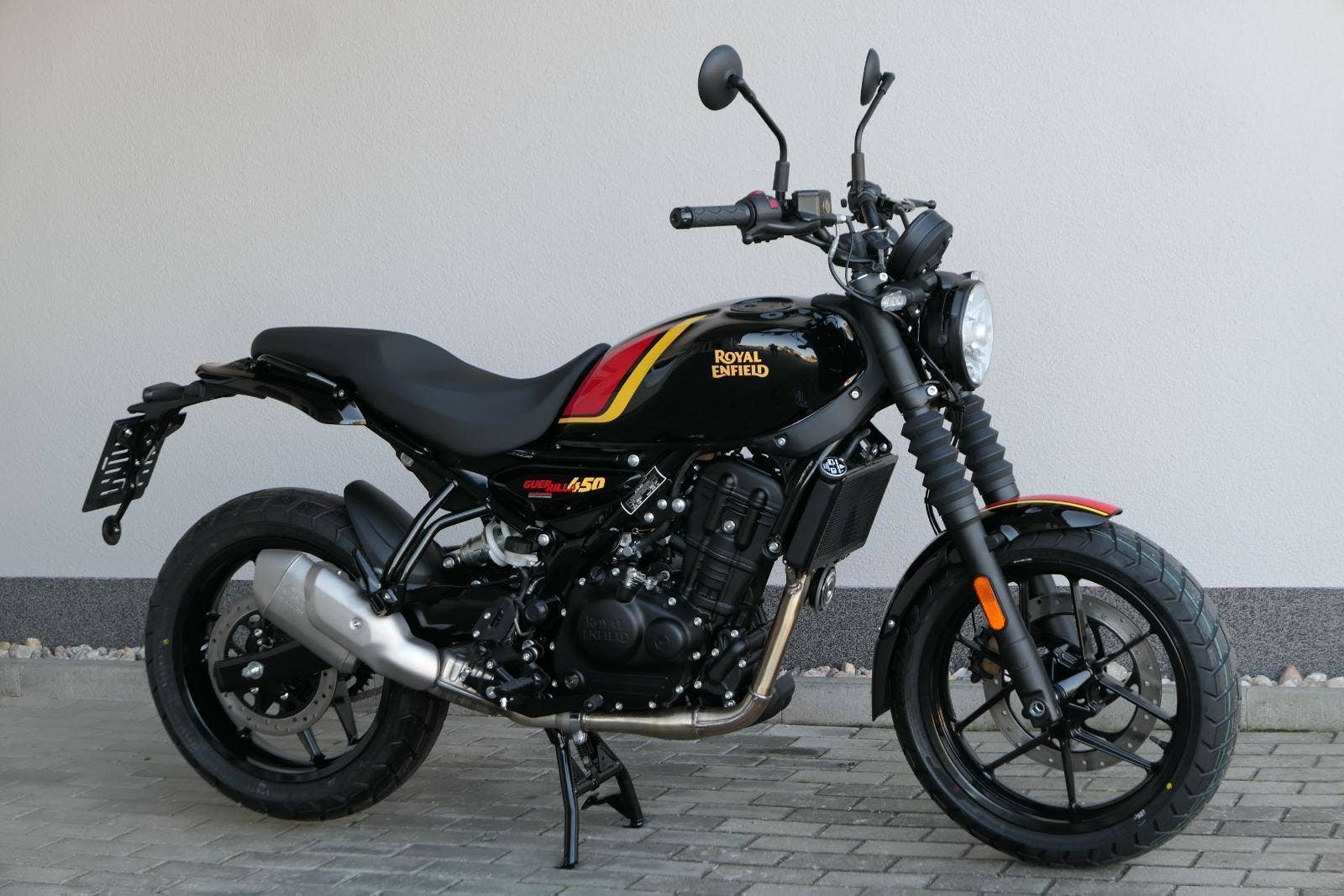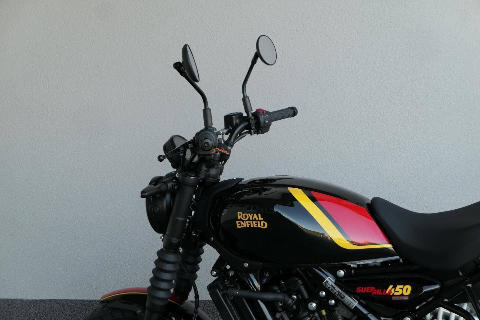 Royal Enfield Guerrilla 450 sdílí motor a technický základ s cestovním endurem Himalayan 450, stojí ale na malých silničních kolech a místo cestování míří na každodenní dojíždění, i na radovánky okolo komína.
