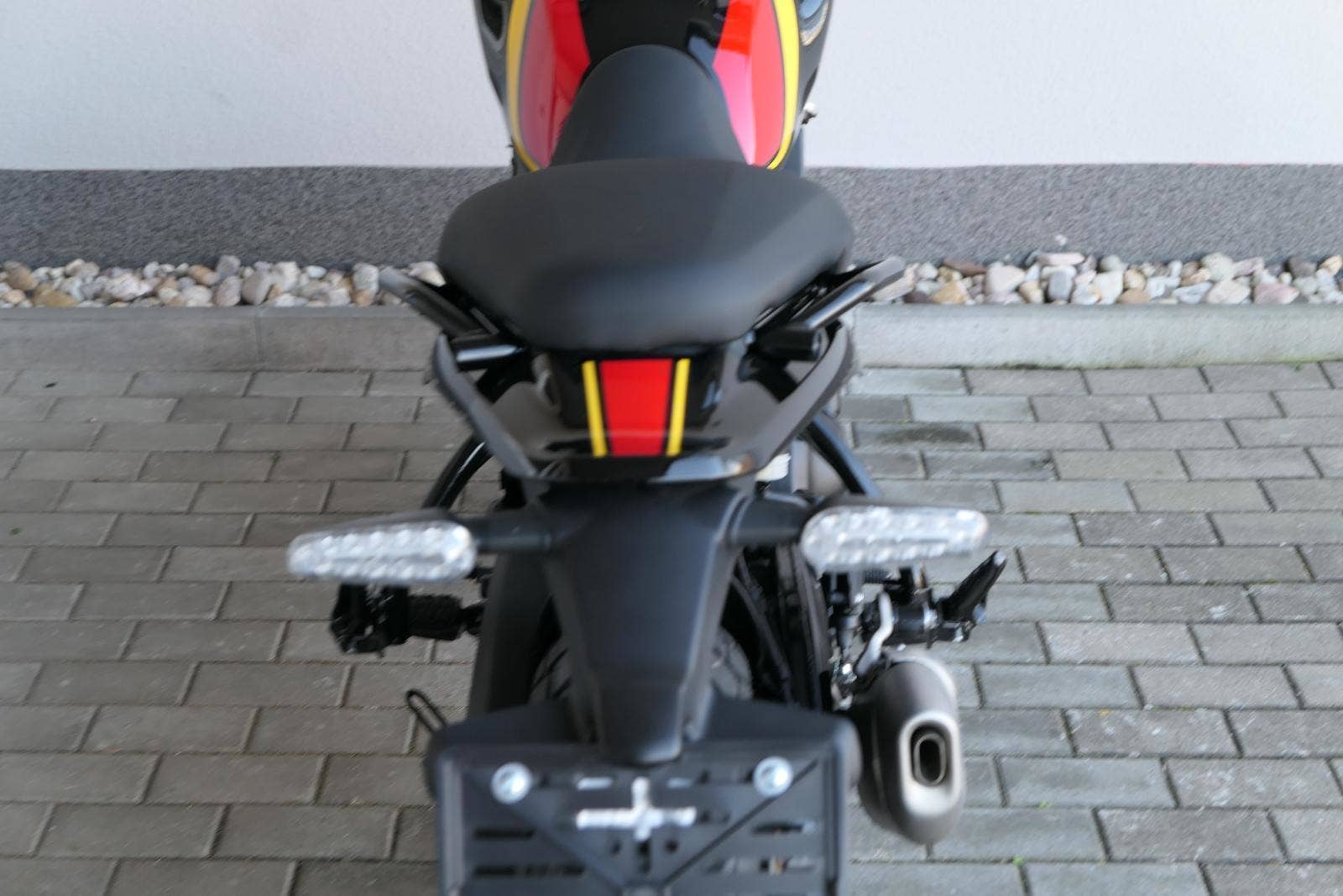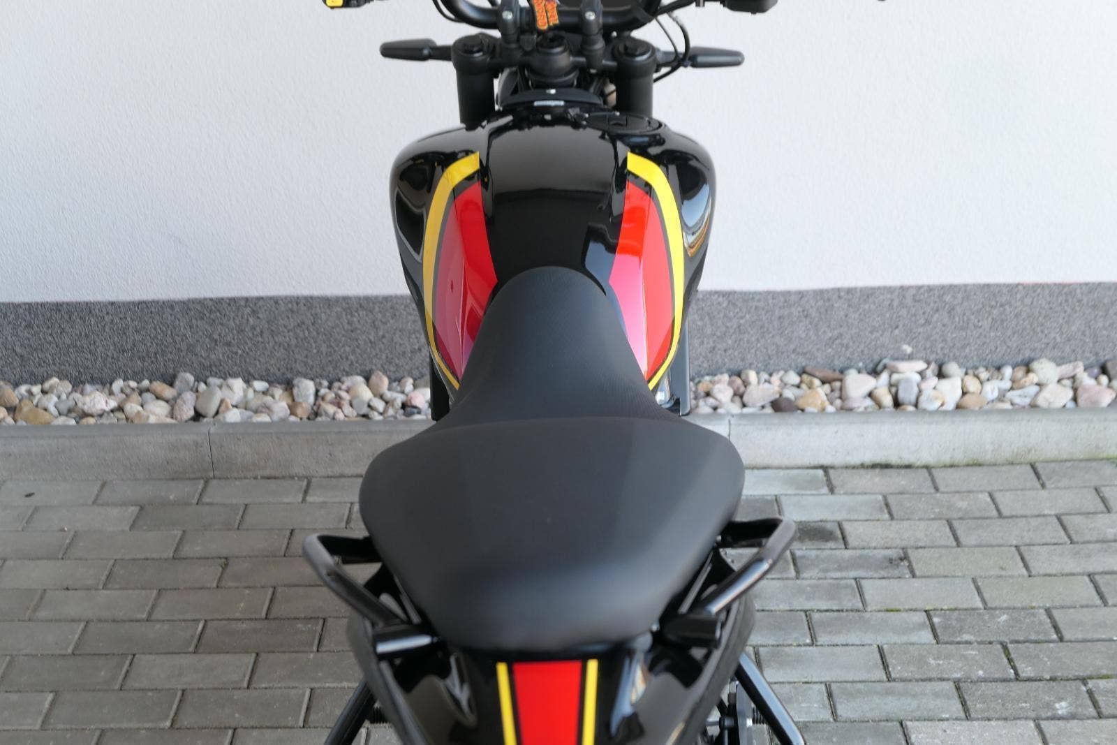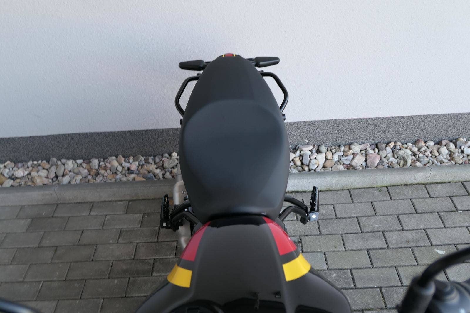 Kola jsou sedmnáctipalcová a Guerilla se chlubí přístupnou výškou sedla 780 milimetrů, stejně jako příjemnou pohotovostní hmotností 184 kilogramů. S ohledem na výkon a hmotnost jsou celkem dostačující i brzdy – vpředu jeden kotouč 310 milimetrů s dvoupístkovým brzdičem, vzadu 270 milimetrů s jednopístem. Do nádrže se vejde jenom skromných 11 litrů, na druhou stranu výrobce uvádí i skromnou tabulkovou spotřebu 3,39 litru na 100 kilometrů.