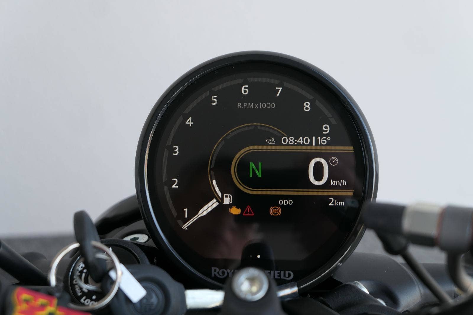 V závislosti na zvolené barevné variantě dostanete také dvě různé přístrojovky. V základu je analogový rychloměr, kombinovaný se dvěma malými displeji – jeden přímo uprostřed rychloměru, jeden připlácnutý ze strany. V dražších variantách najdete celodigitální kulatý TFT displej, který nabídne konektivitu s mobilní a aplikací a lze na něm zobrazit velkou navigaci s mapou
