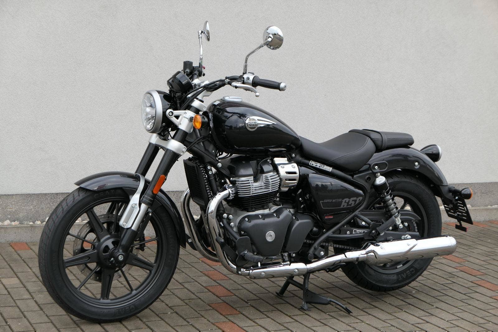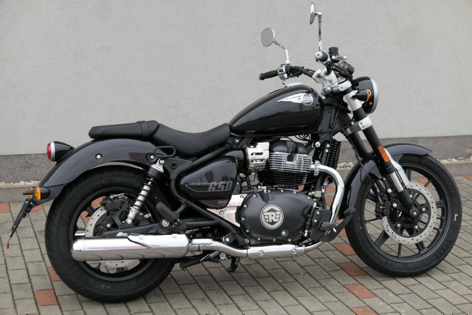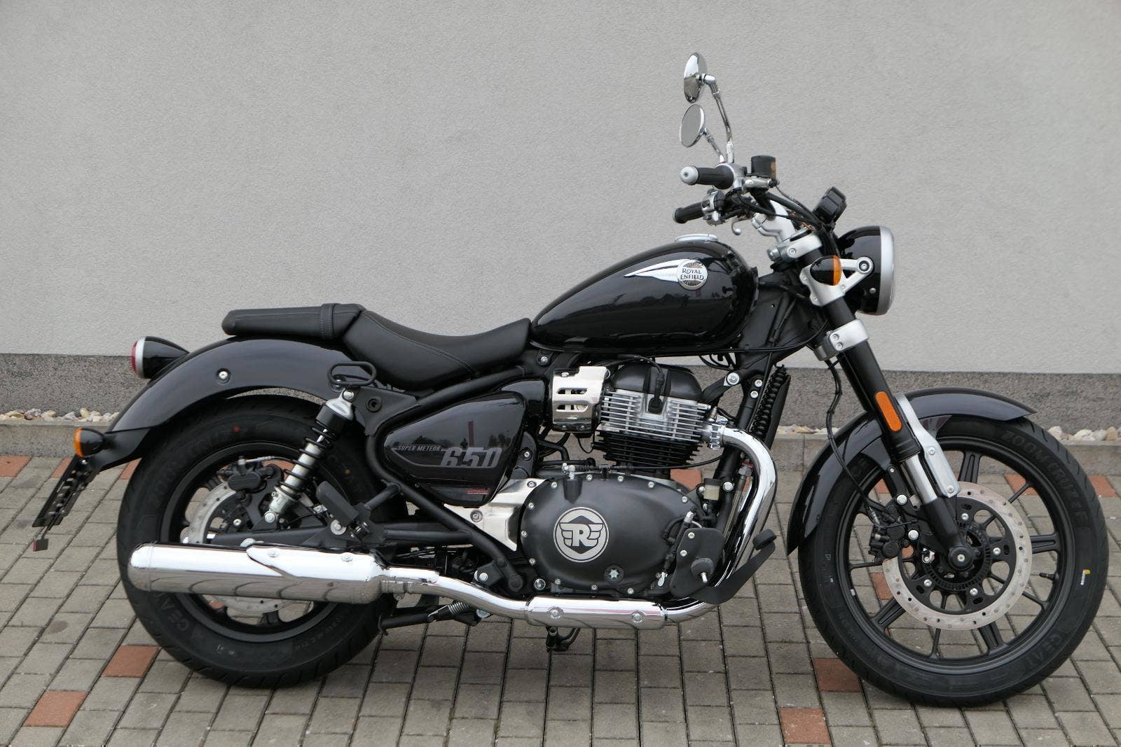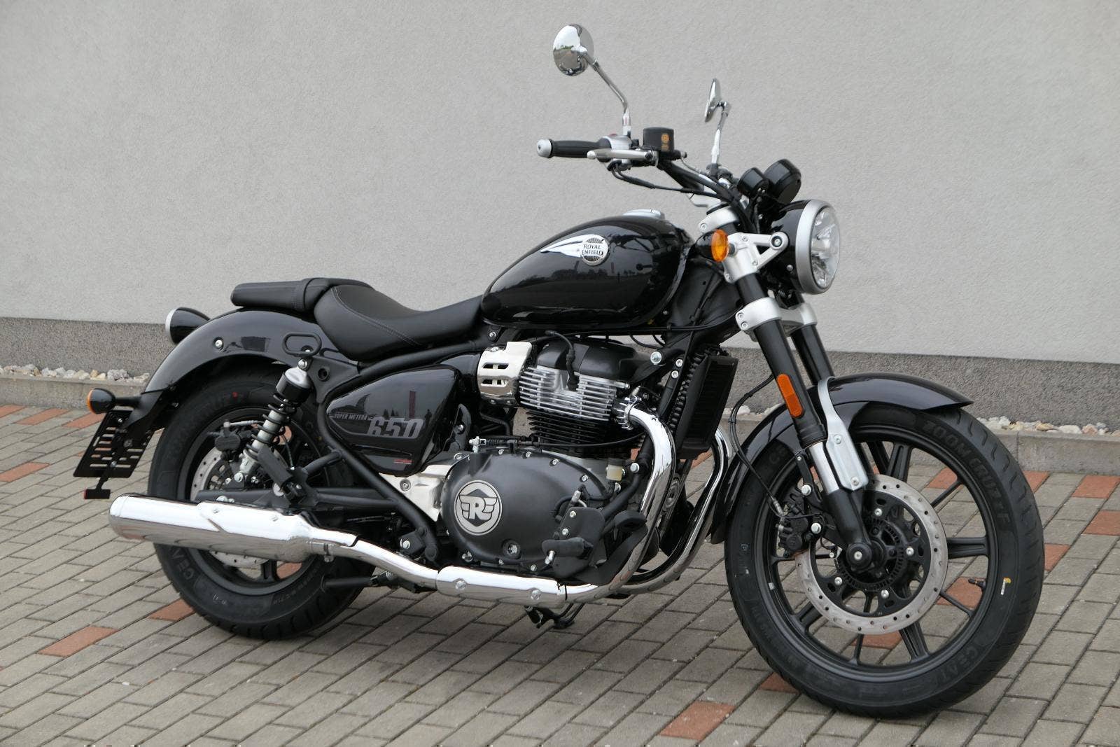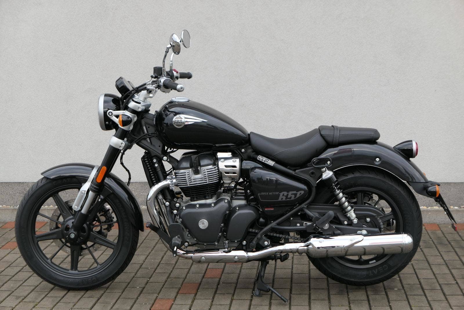 Super Meteor 650 byl vytvořen na základě našeho trvalého přesvědčení, že lidé se při cestování nesmějí nechat omezovat hodinami nebo kilometry. Hnací silou motocyklu Super Meteor 650 je náš ikonický řadový dvouválcový motor, který vyniká plynulým řazením převodových stupňů, silným zrychlením v nízkých otáčkách a hladkou a plynulou odezvou na plyn. Nízko posazené, široké sedlo a uvolněná řidičská pozice zajistí pohodlný zážitek z jízdy bez ohledu na to, kolik kilometrů máte za sebou a kolik je před vámi. Prostorná kapkovitá nádrž motocyklu Super Meteor 650 pojme až 15,7 litrů paliva, díky čemuž můžete i ty nejdelší jízdy absolvovat bez přerušení. Obrácené vidlice na předním odpružení přinášejí naprostou jistotu a kontrolu na otevřených dálnicích, přeplněných ulicích a všech dalších cestách. Zcela nový přední světlomet je kombinací retro estetiky a moderního LED světla snižující spotřebu energie a zlepšující viditelnost, ať už máte namířeno kamkoli. Na digitálně analogovém přístrojovém panelu s retro nádechem a plovoucí LCD obrazovkou a vestavěnou navigací Tripper máte k dispozici všechny potřebné informace po celý den. Nápadná litá kola s bezdušovými pneumatikami zajišťují, že nic nenaruší vaše plány, a širší zadní pneumatika umožňuje lepší trakci a stabilitu i při nejvyšších rychlostech.