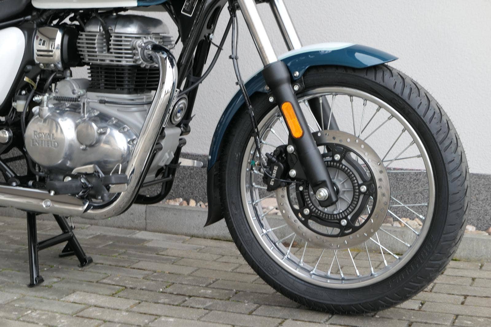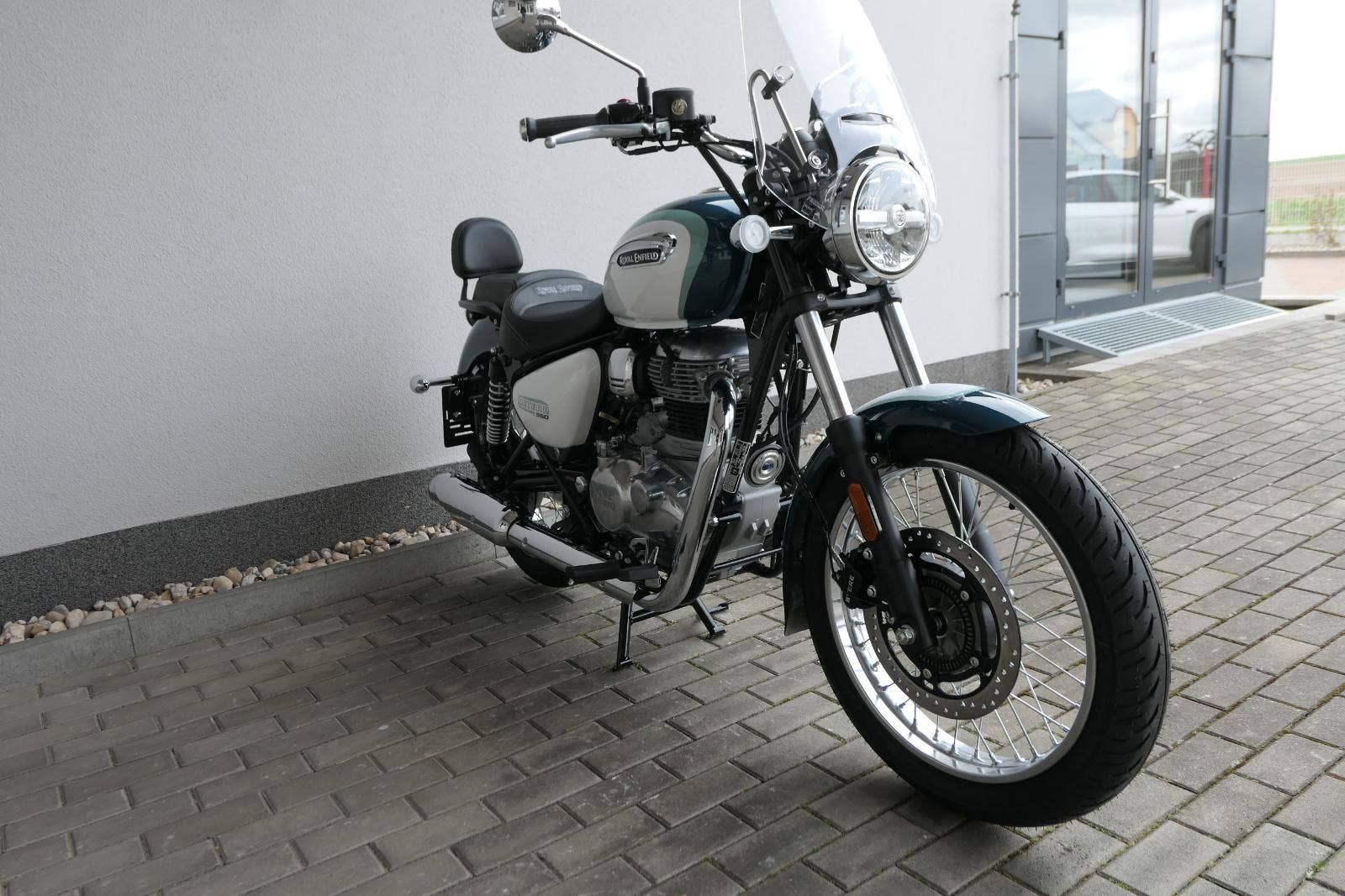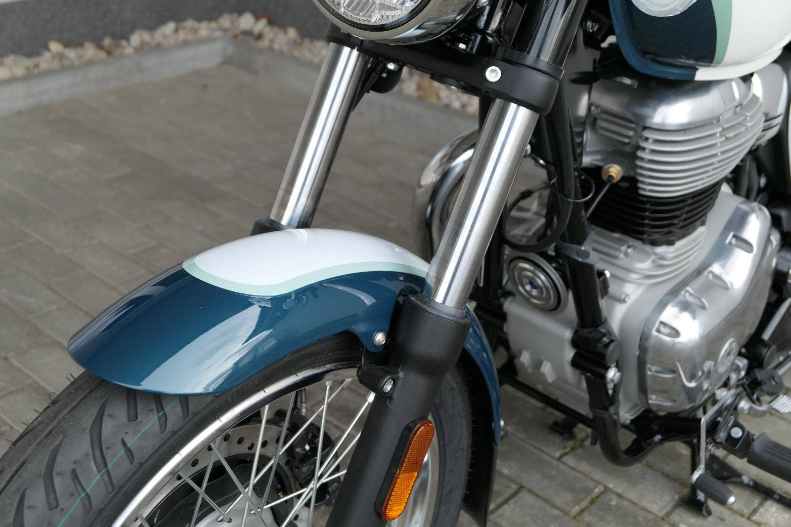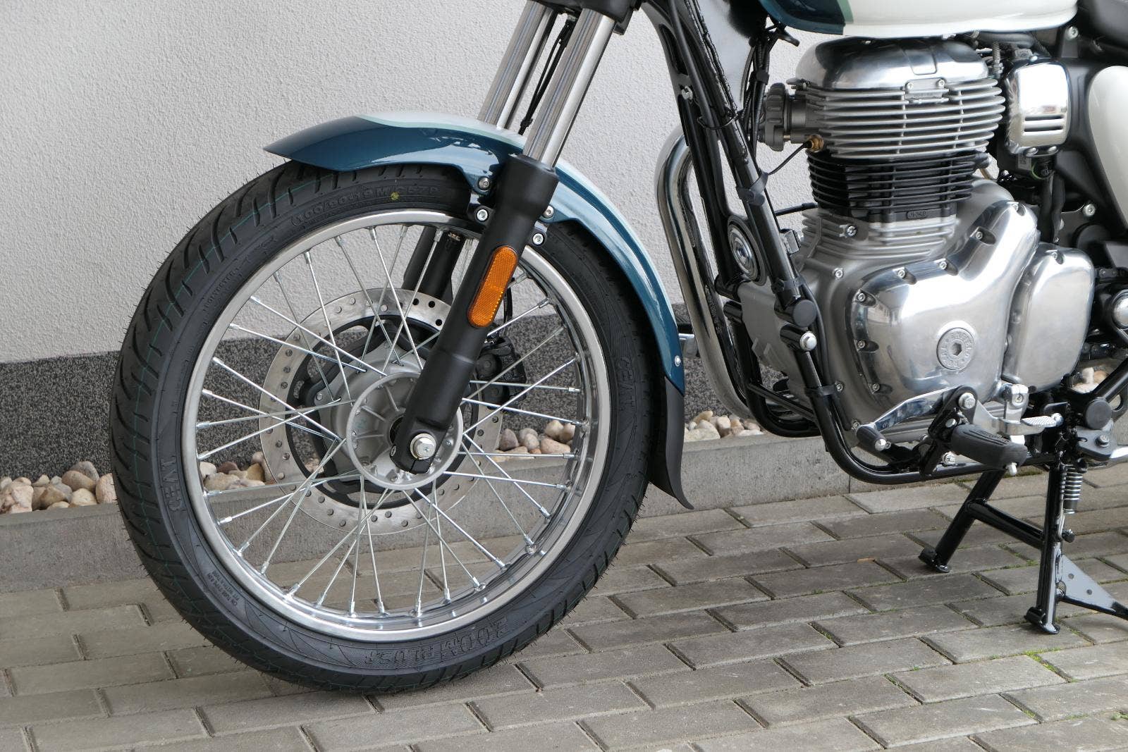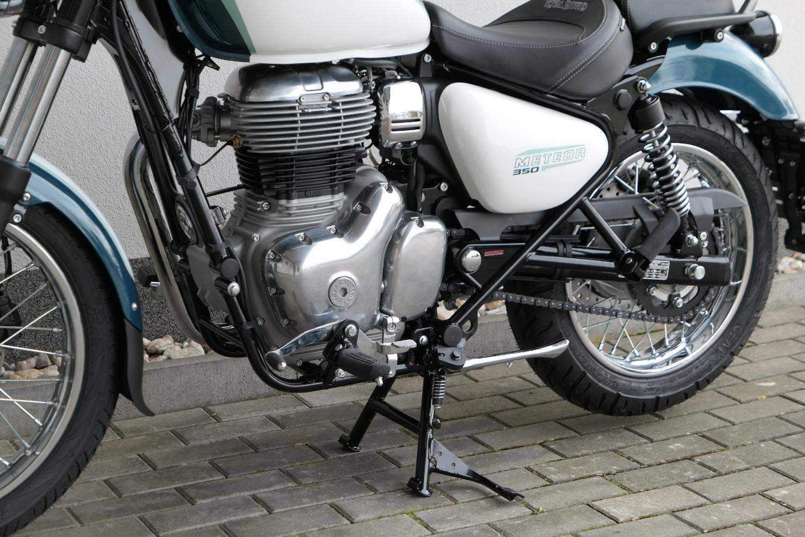 Meteor 350 Aurora Retro Green není o rychlosti.