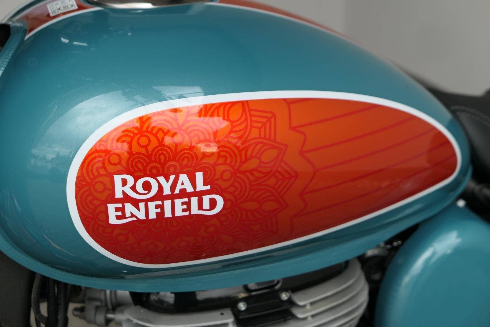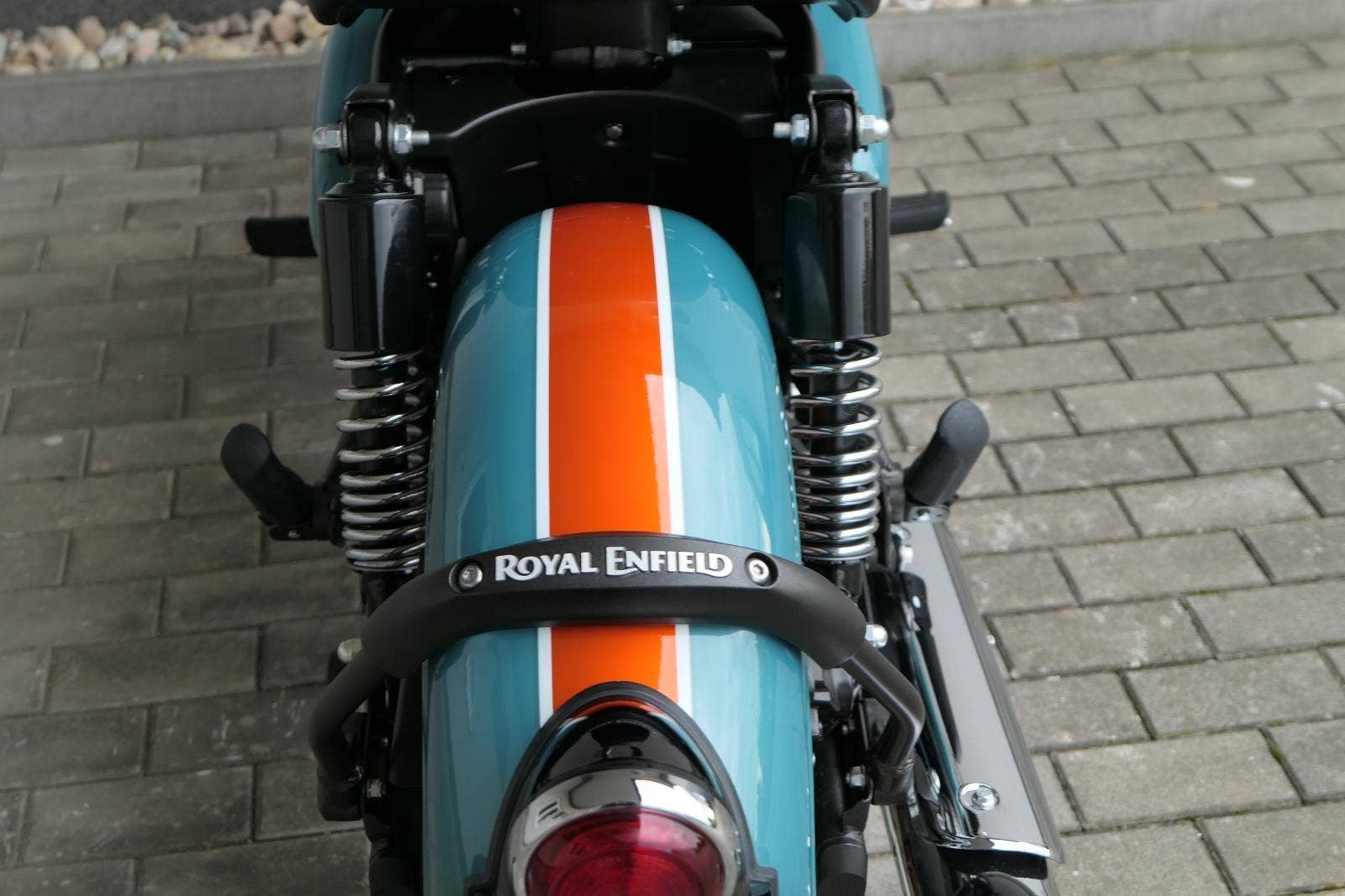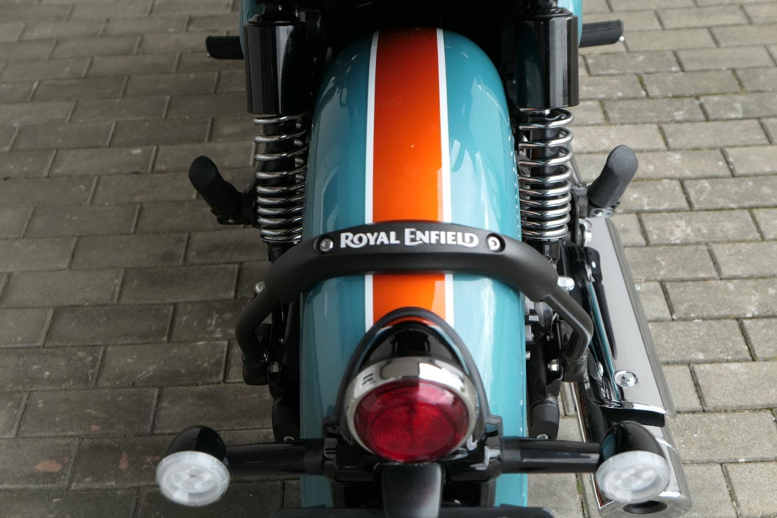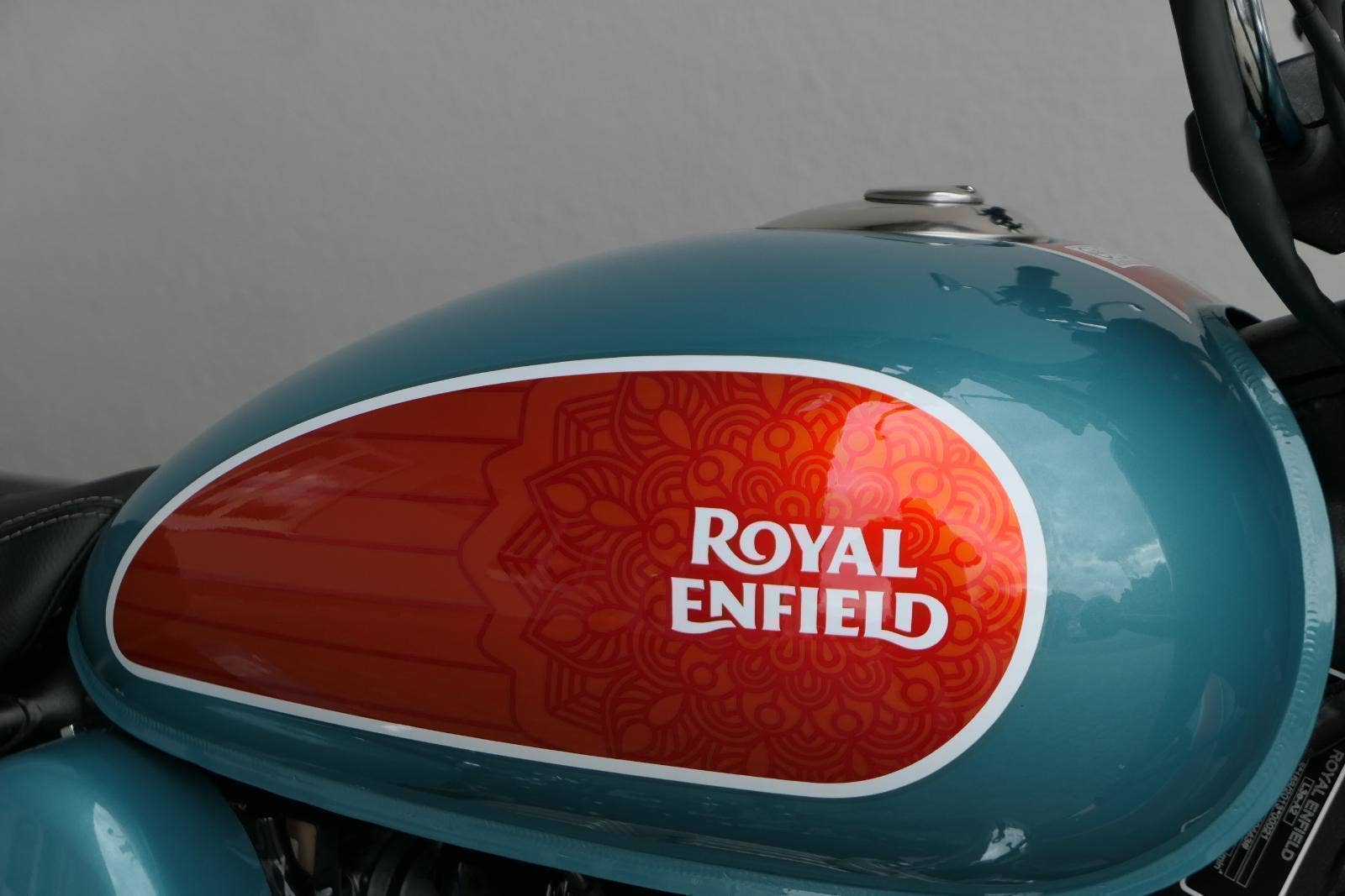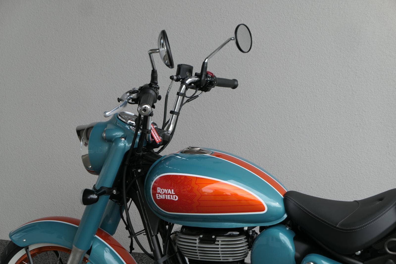 „Trip Teal Green“ s oranžovými akcenty evokujícími ducha Goan moto-kultury.