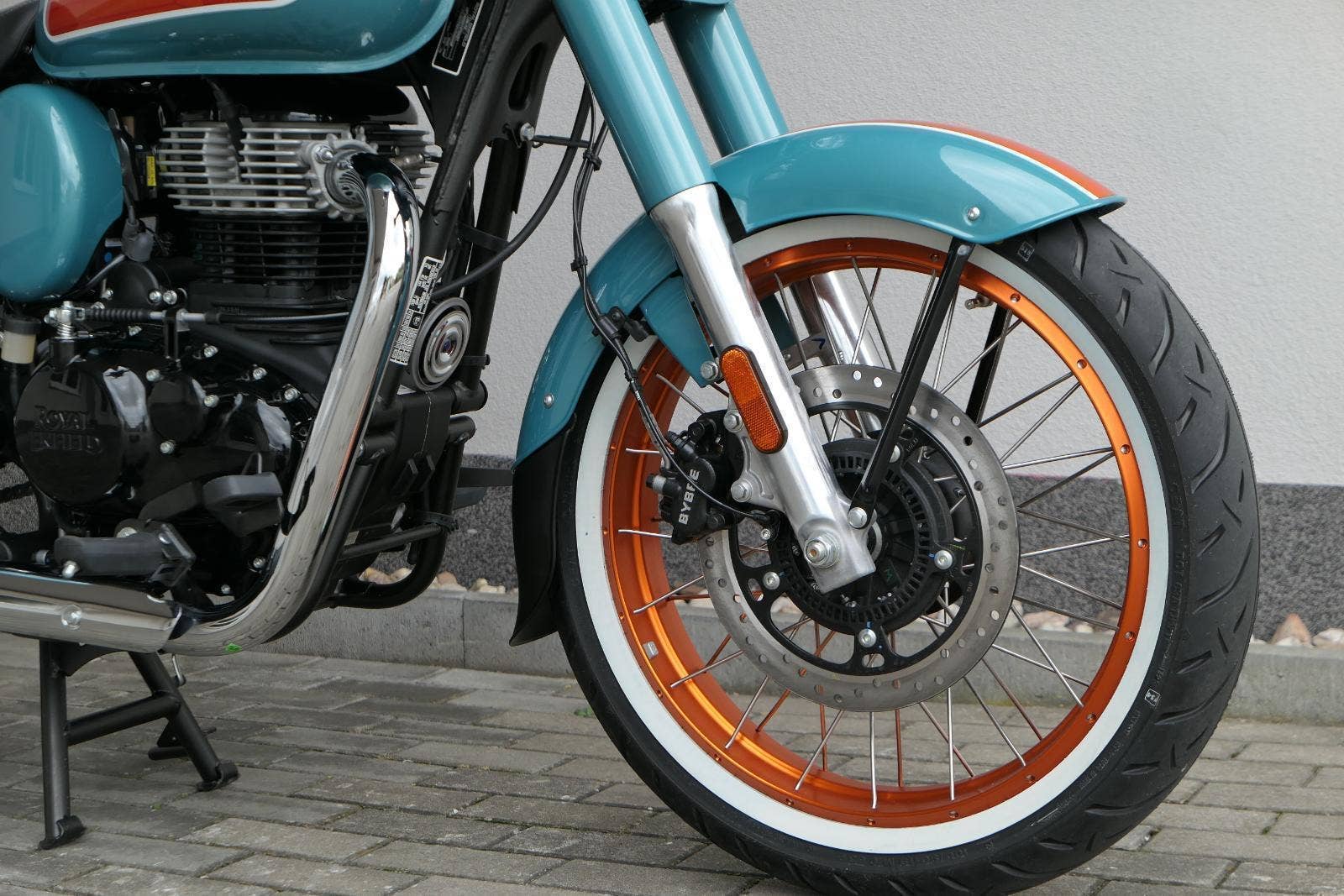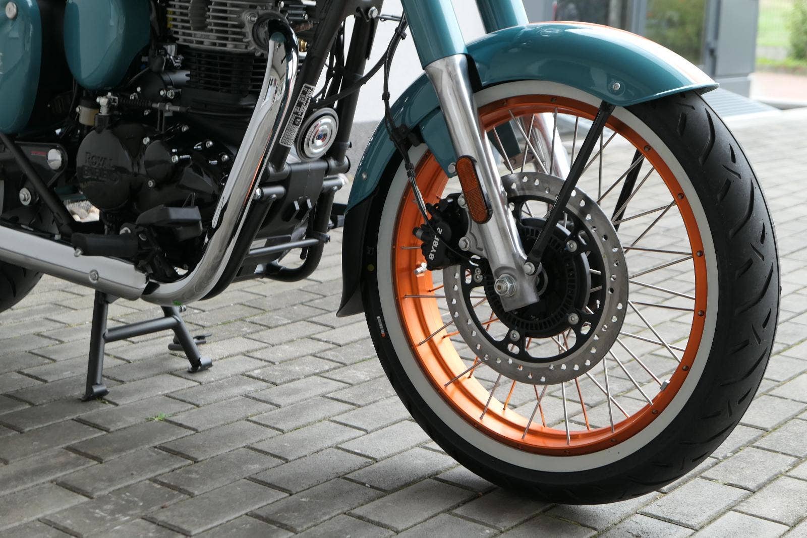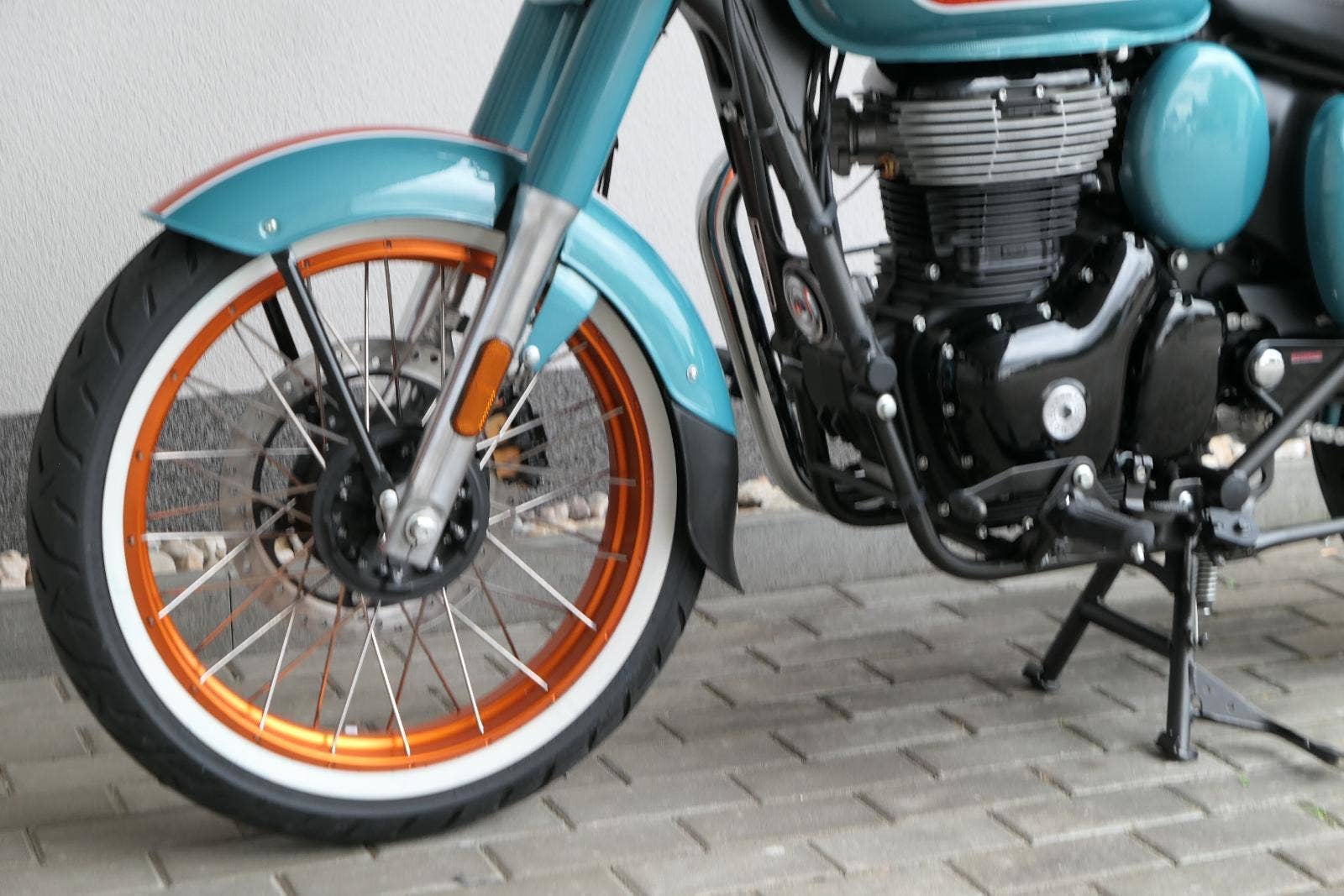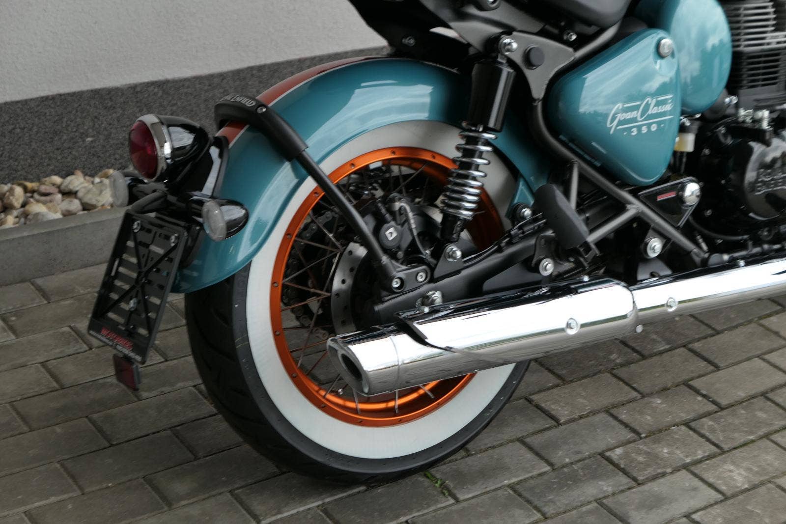 Kola: hliníkové ráfky s výplety a bezdušovými pneumatikami s bílým bokem, přední 19", zadní 16".