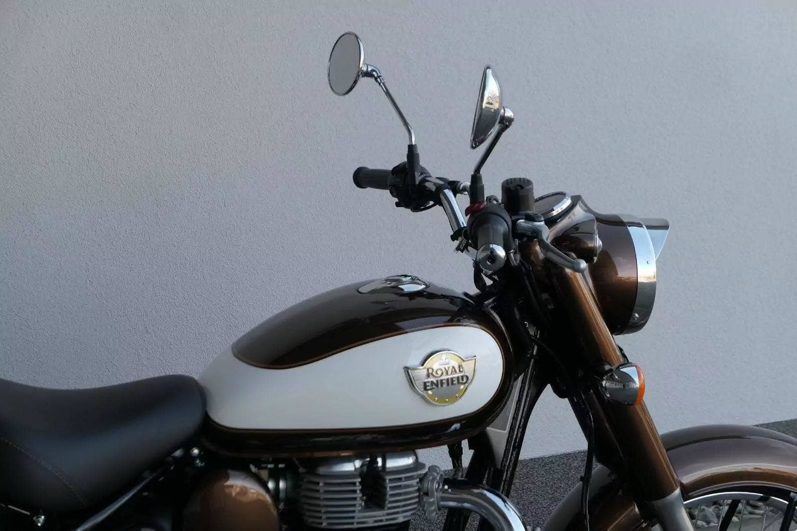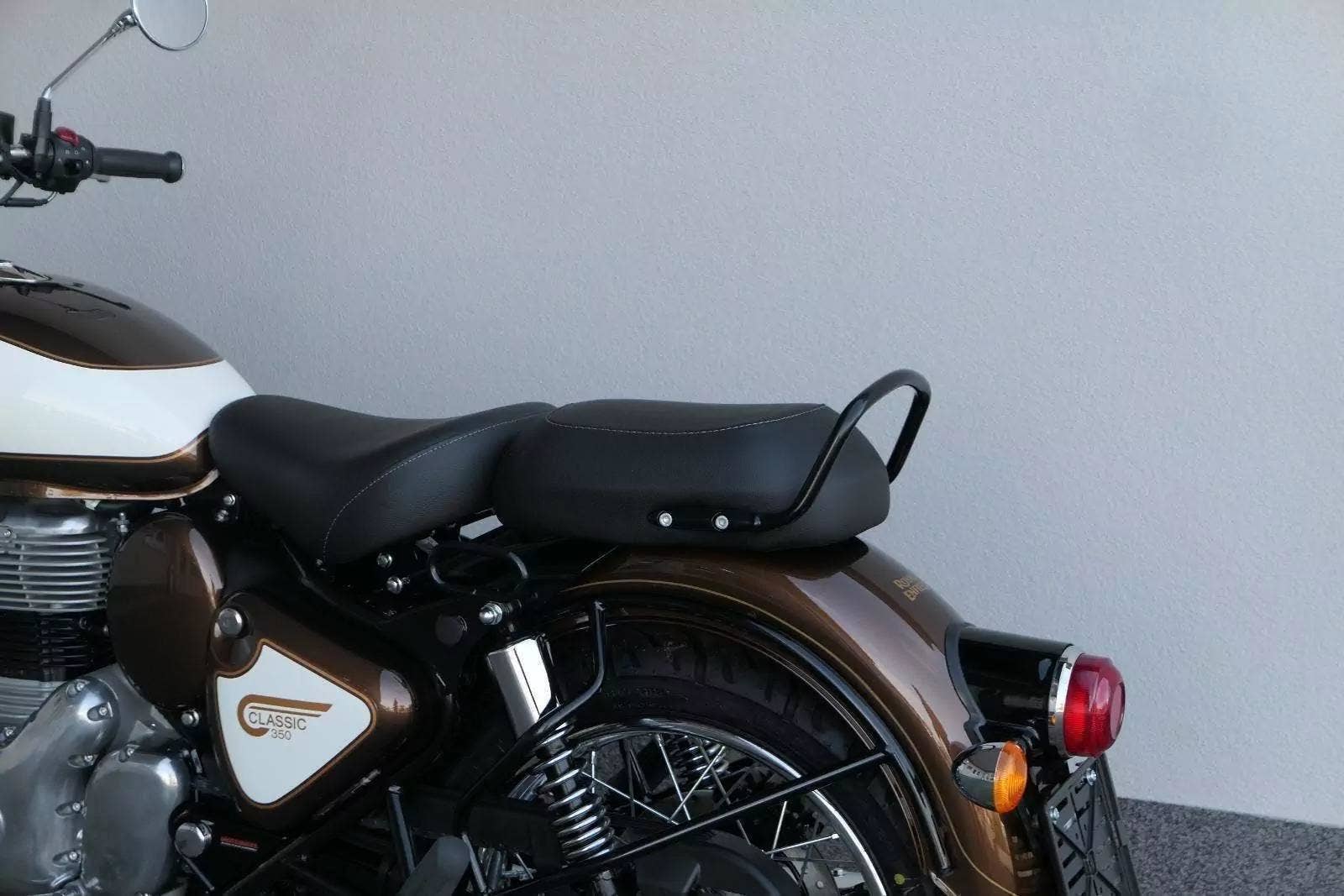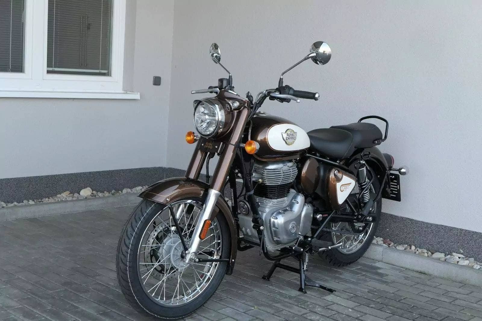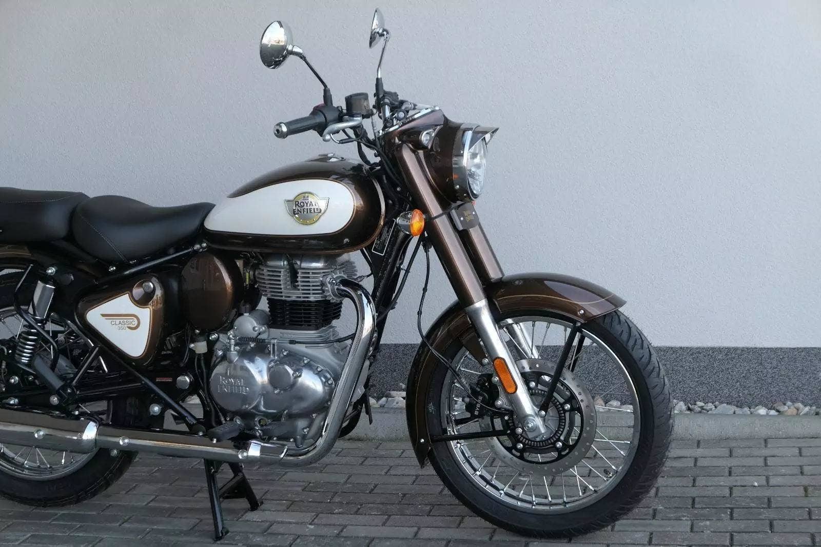 Ústředním prvkem nového Classic 350 je zcela nové srdce, které bije do jedinečného rytmu Royal Enfield. Ve spojení s novým rámem se dvěma spodními trubkami, který jezdí pevně a věrně, solidní a spolehlivou kvalitou konstrukce, je Classic vaším spojencem, ať už je váš cíl kdekoliv. Vzpřímená jízdní poloha dává jezdci Classicu vynikající vzhled na silnici, zatímco brzdy s větším průměrem zvyšují jeho brzdnou sílu. Ale silnější neznamená jen schopný a odolný, Classic je obdařen také pohodlím, s vylepšeným širším sedlem, které zpříjemňuje jízdu.