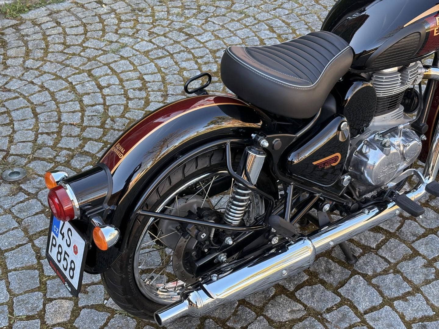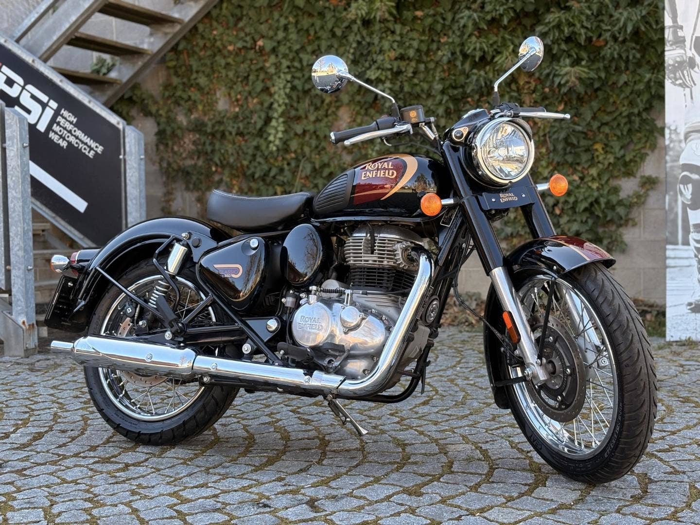 Model oblíbený mezi milovníky klasických motocyklů, kteří hledají spolehlivost a pohodlí. Royal Enfield Classic 350 má jednoválcový motor o objemu 346 ccm, který poskytuje 15 kW a 28 Nm točivého momentu. Motocykl má pětistupňovou převodovku, kotoučové brzdy vpředu i vzadu a elektronické vstřikování paliva. Design motocyklu je inspirován vojenskými motocykly z druhé světové války, které vyráběla firma Royal Enfield.